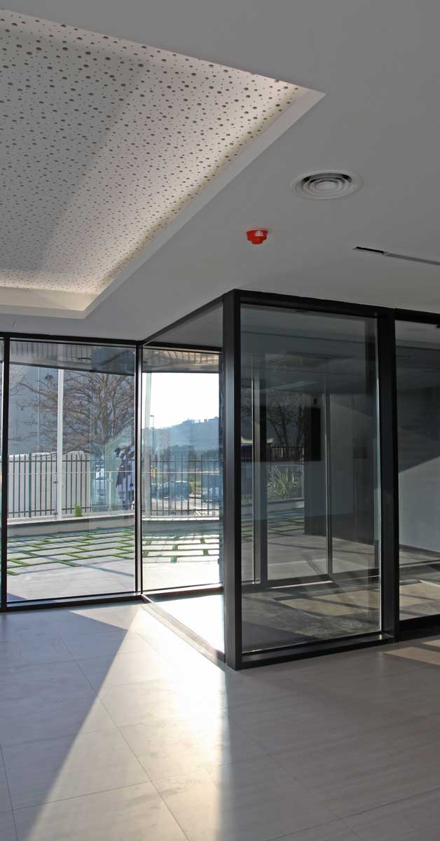 For this new production facility, GARCIA FAURA fabricated and installed more than 200 m2 of stick-type curtain wall, with safety windows and high levels of technical performance. Works have also been completed on the installation of 115 m2 of aluminium enclosures and composite panel cladding and coverings.