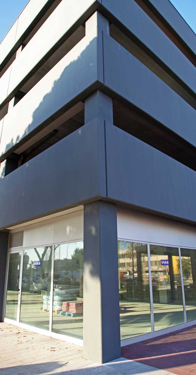 Given the end use of the installation, which is intended for vehicle parking, works have been focused on the fabrication and assembly of a set of aluminium enclosures with those already present in the structure. From access doors and facilities to the windows and glazing that make up the retail spaces.