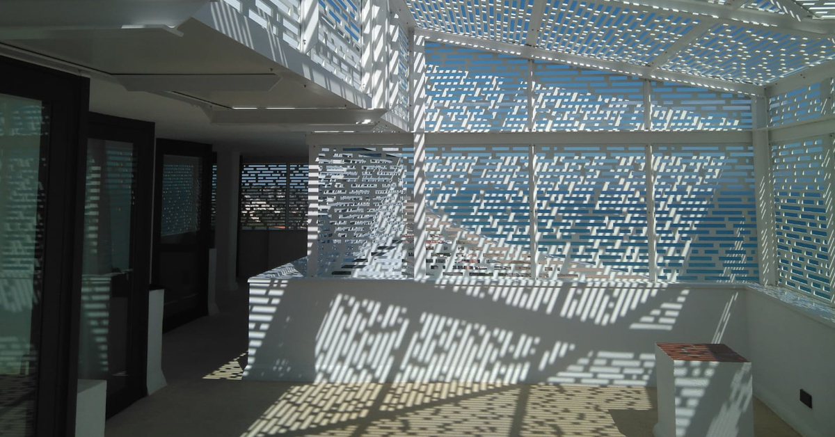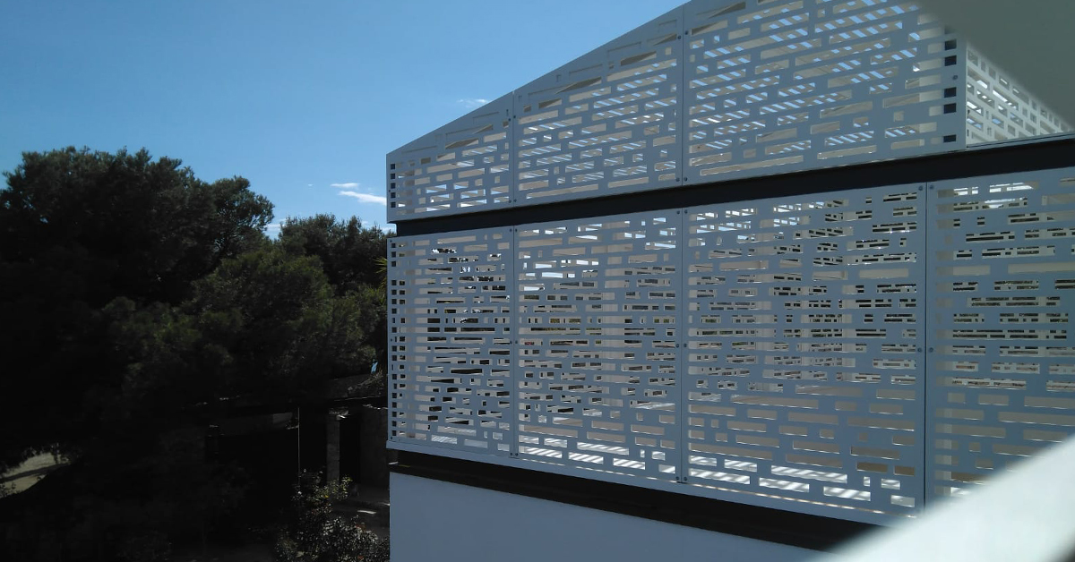 Development, manufacture and installation of a unique personalized metallic pergola on terrace of single-family housing.