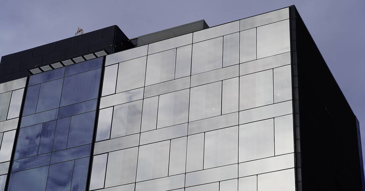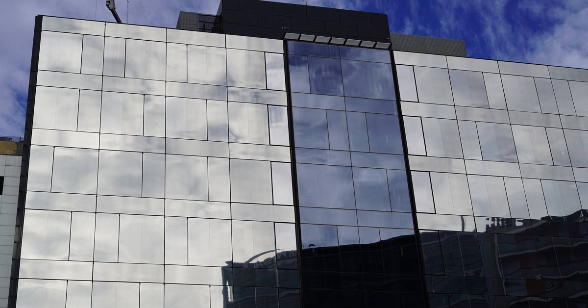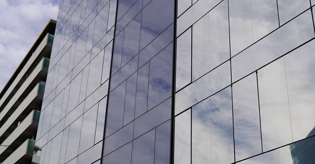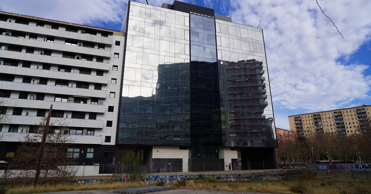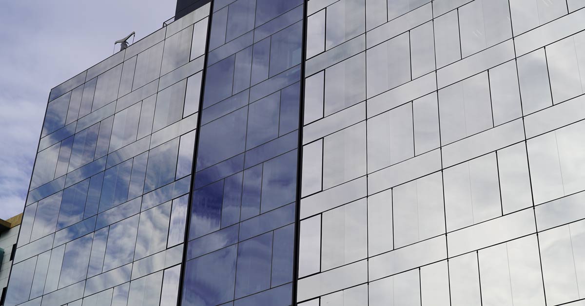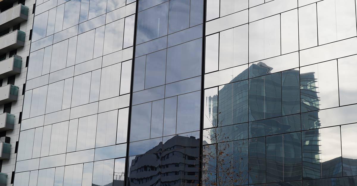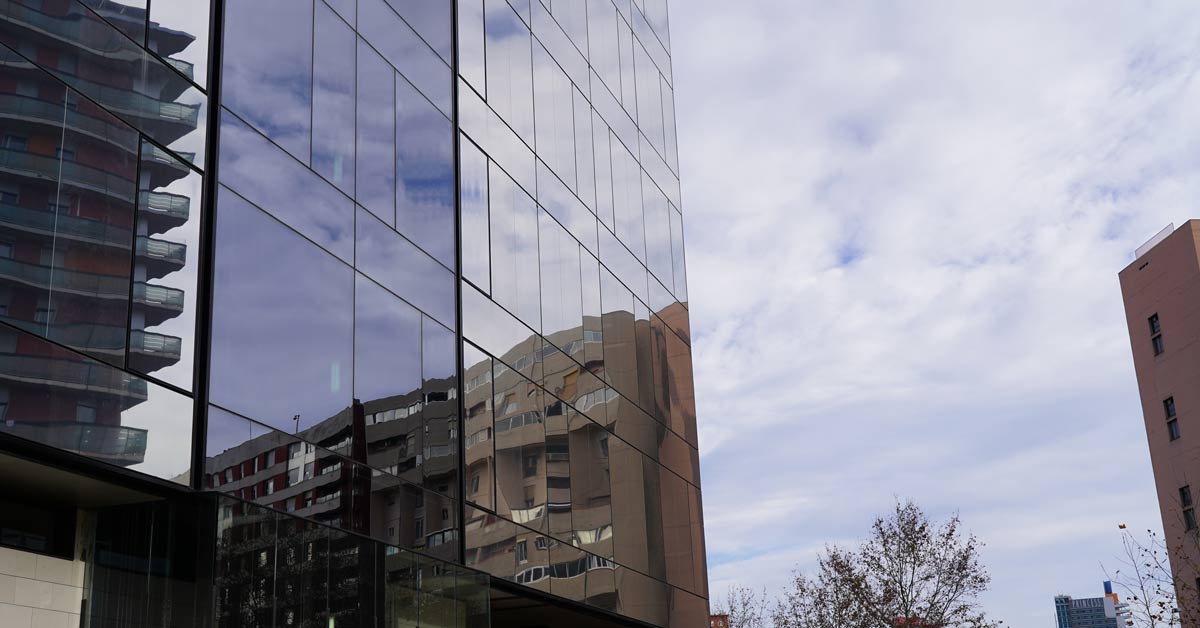 Rehabilitation of the façade in a business building, with the manufacture and installation of a new section of curtain wall, fire-fighting sectorizations and installation of projecting opening motorized enclosures.