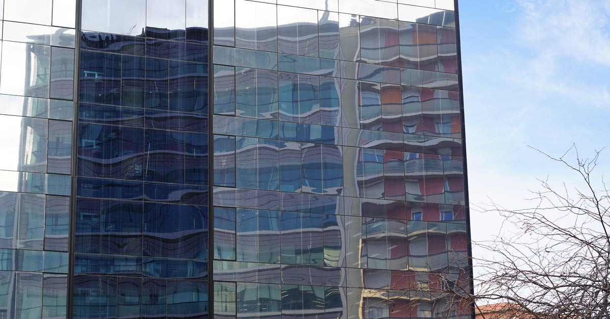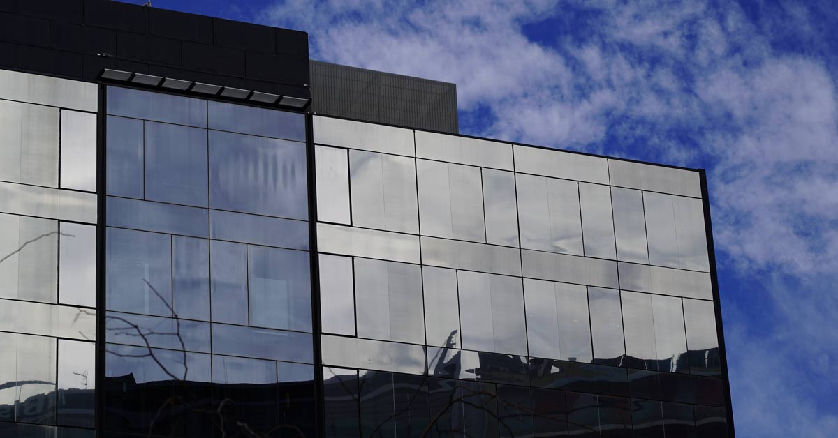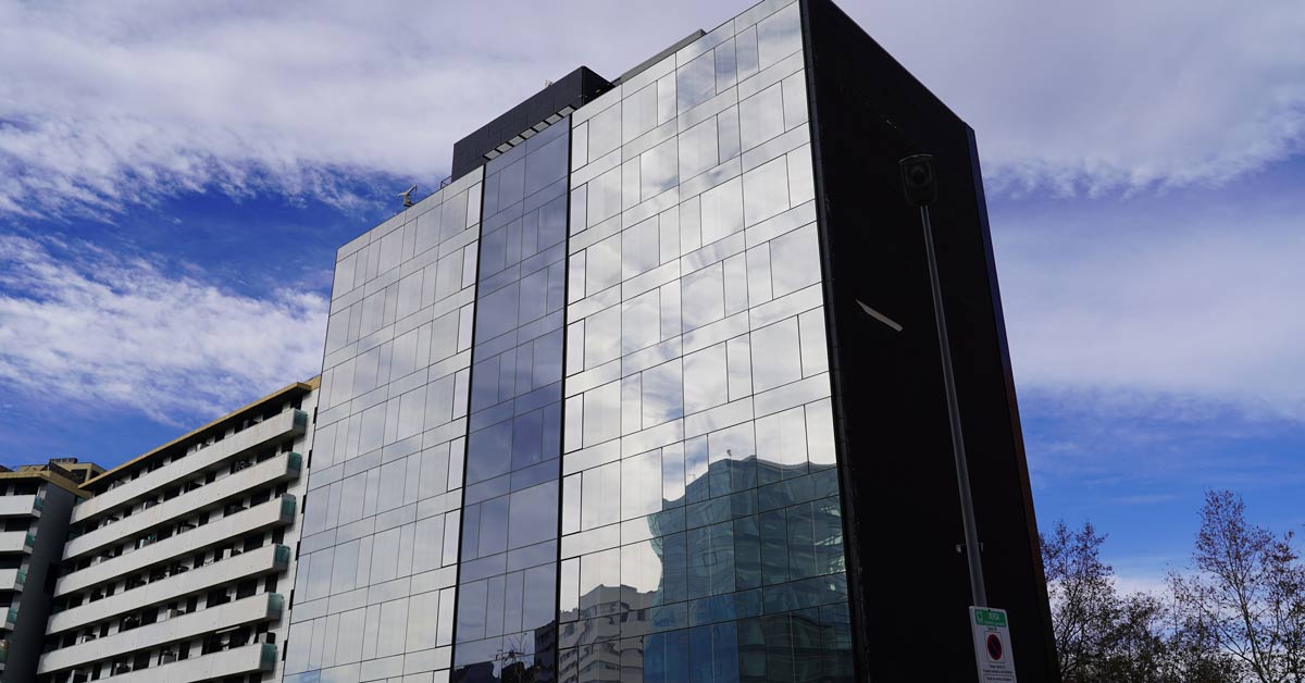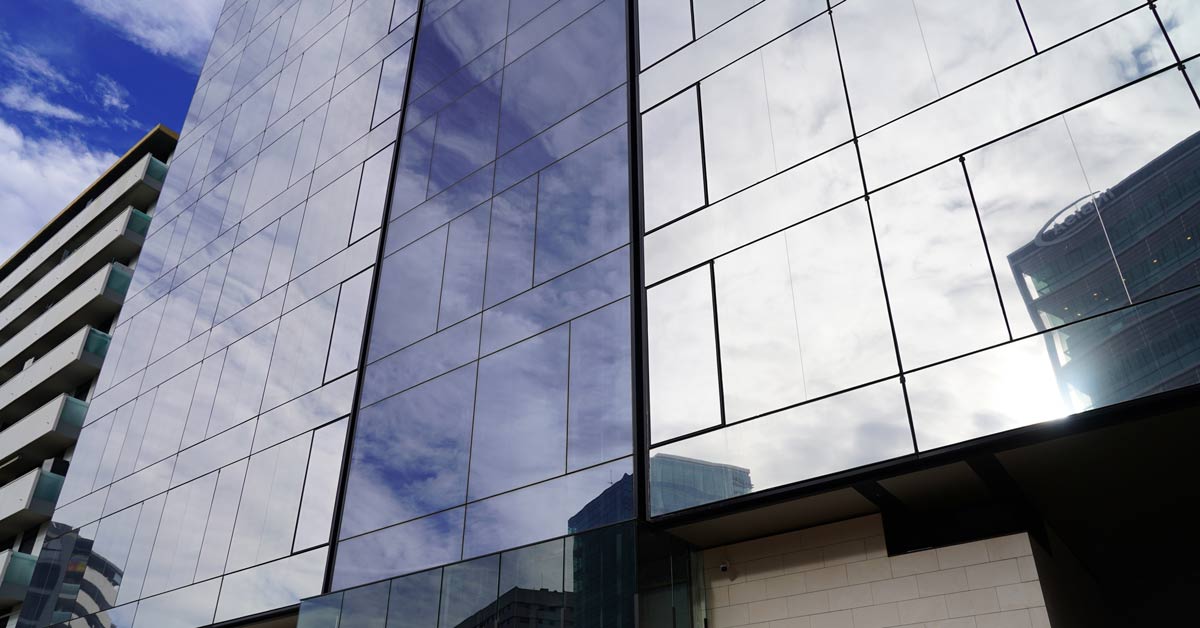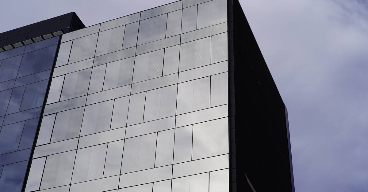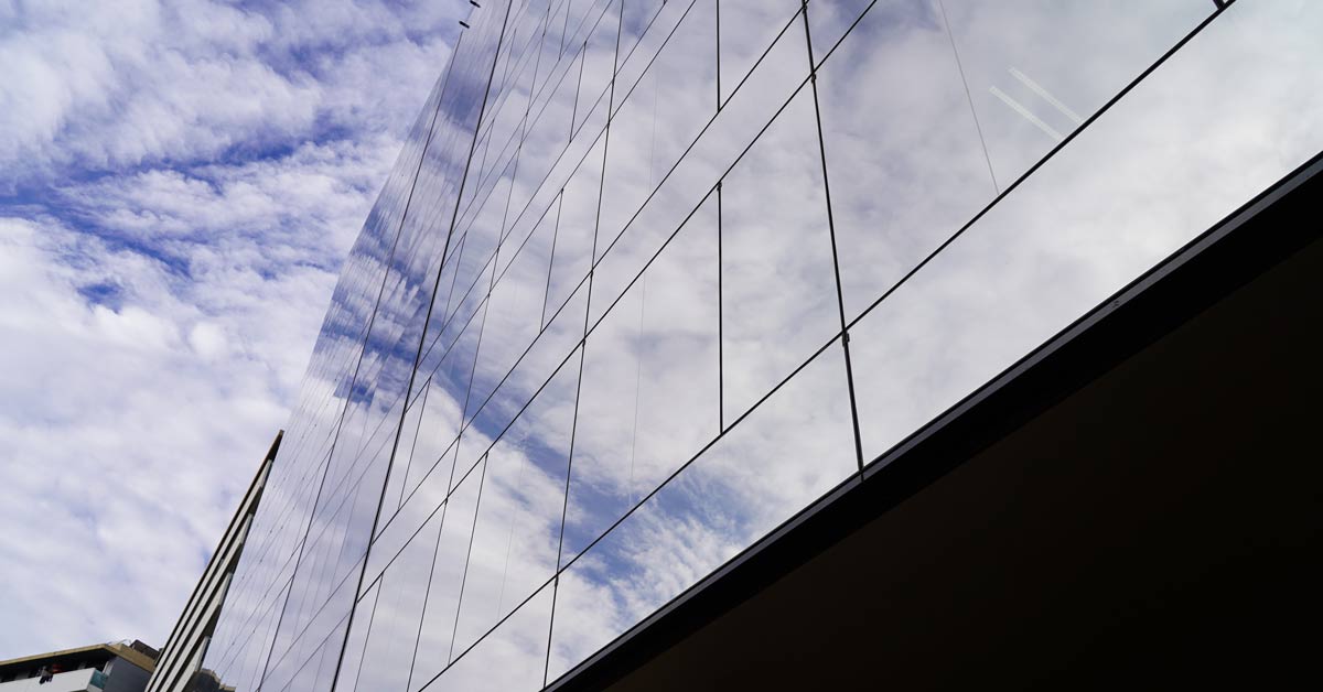 Rehabilitation of the façade in a business building, with the manufacture and installation of a new section of curtain wall, fire-fighting sectorizations and installation of projecting opening motorized enclosures.