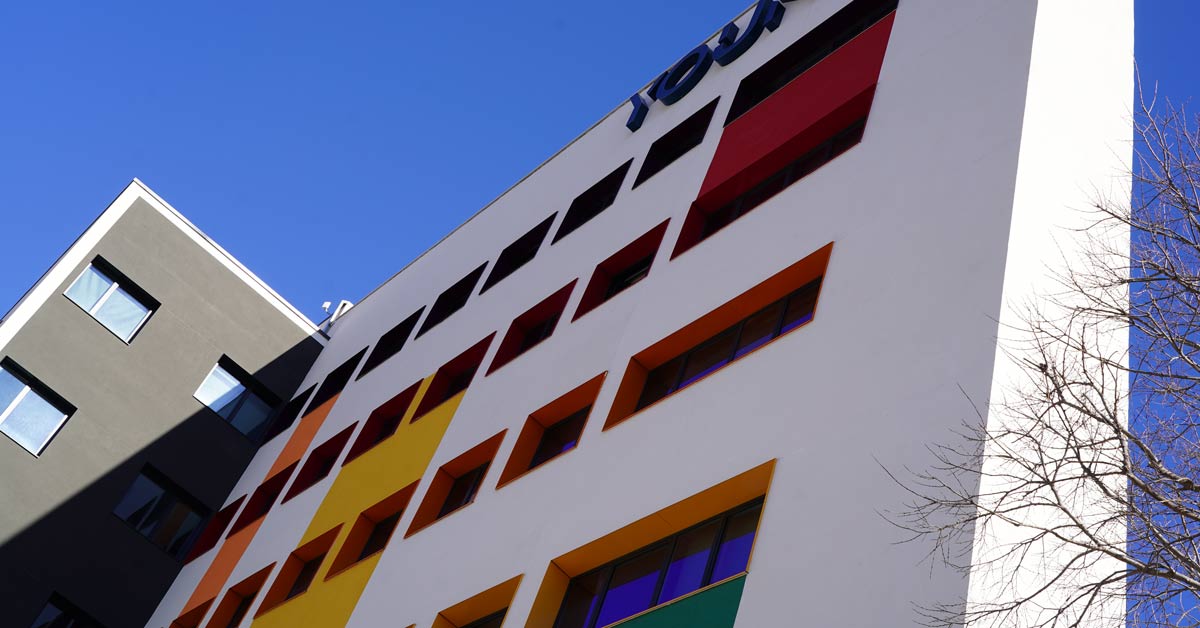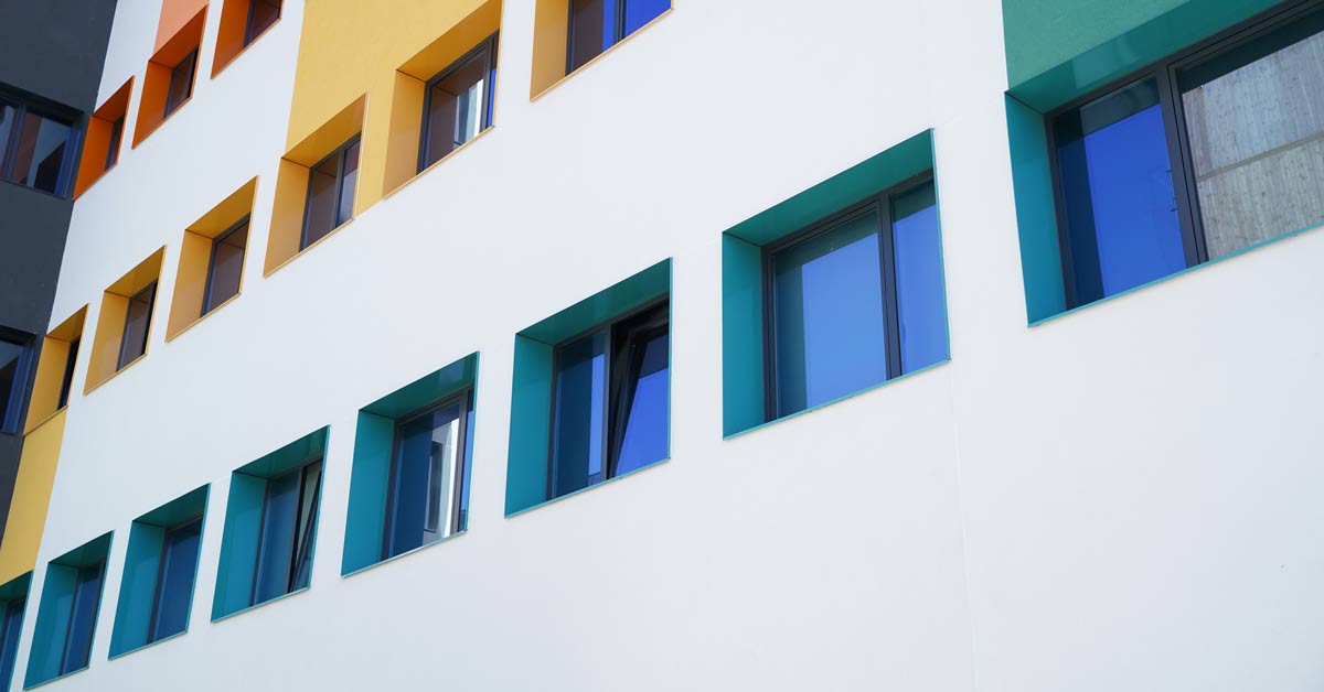Enclosures and façade cladding for a building intended for student residence in the 22@ district of Barcelona.