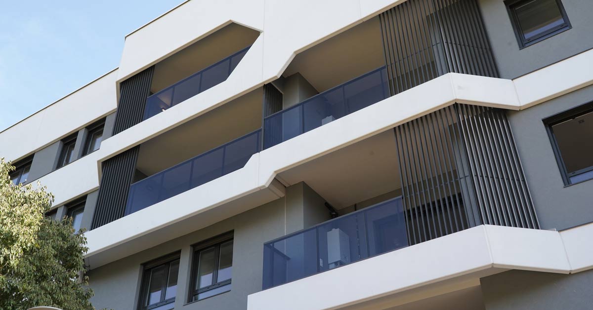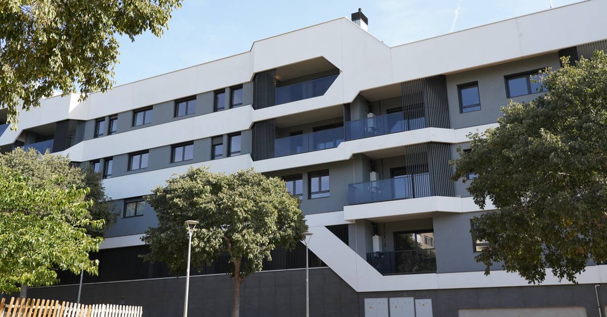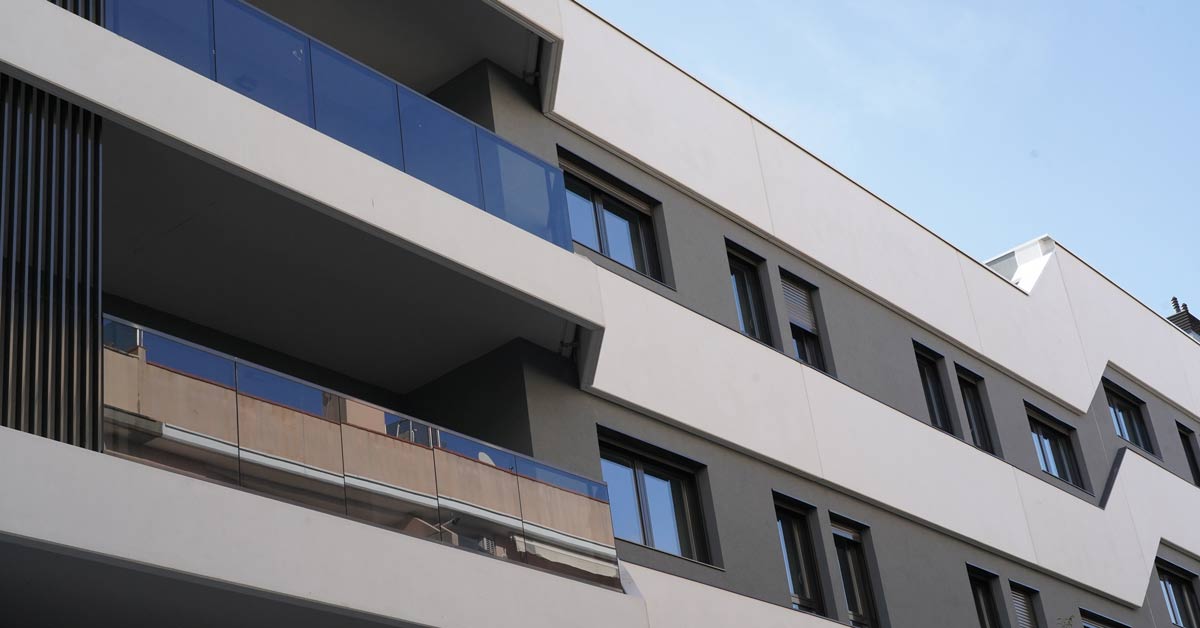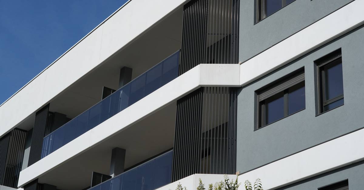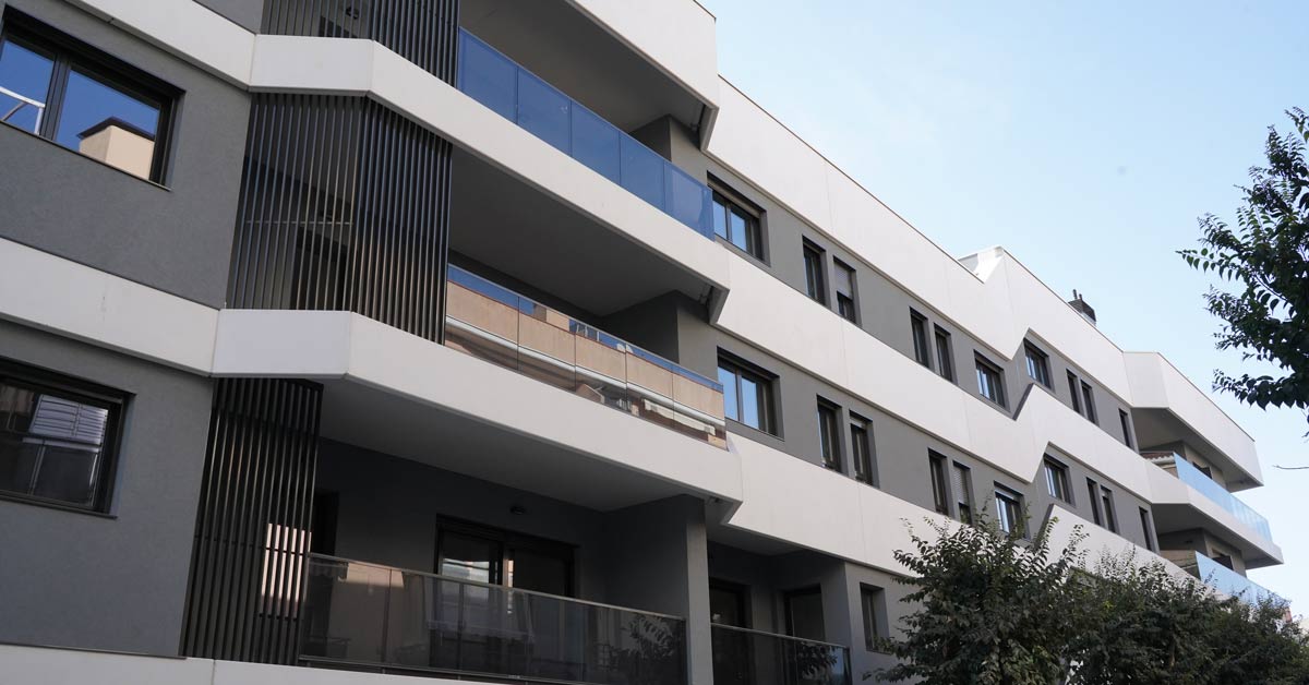 Manufacture and installation of the set of aluminum enclosures and railings in the new residential development in Mataró (Barcelona).