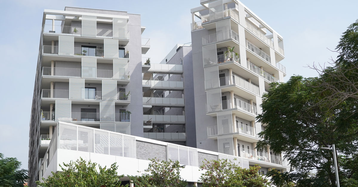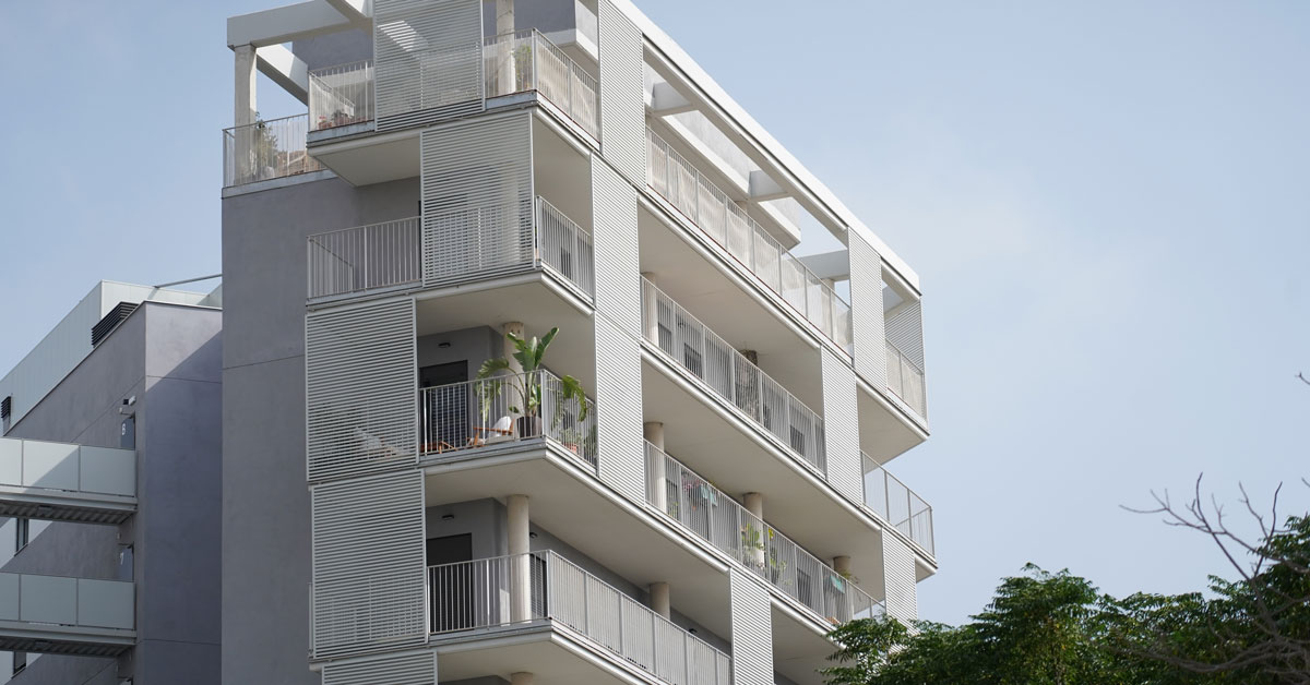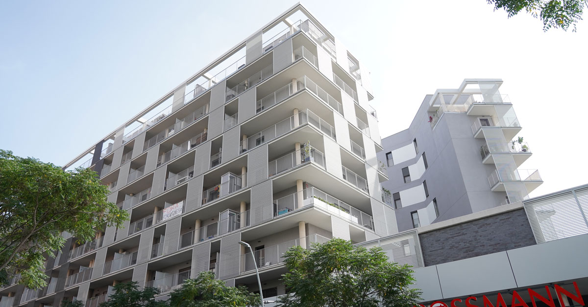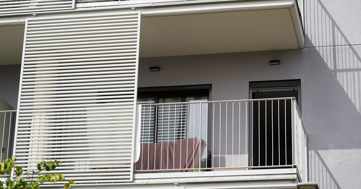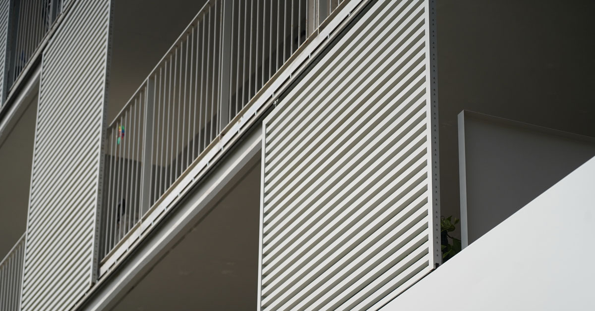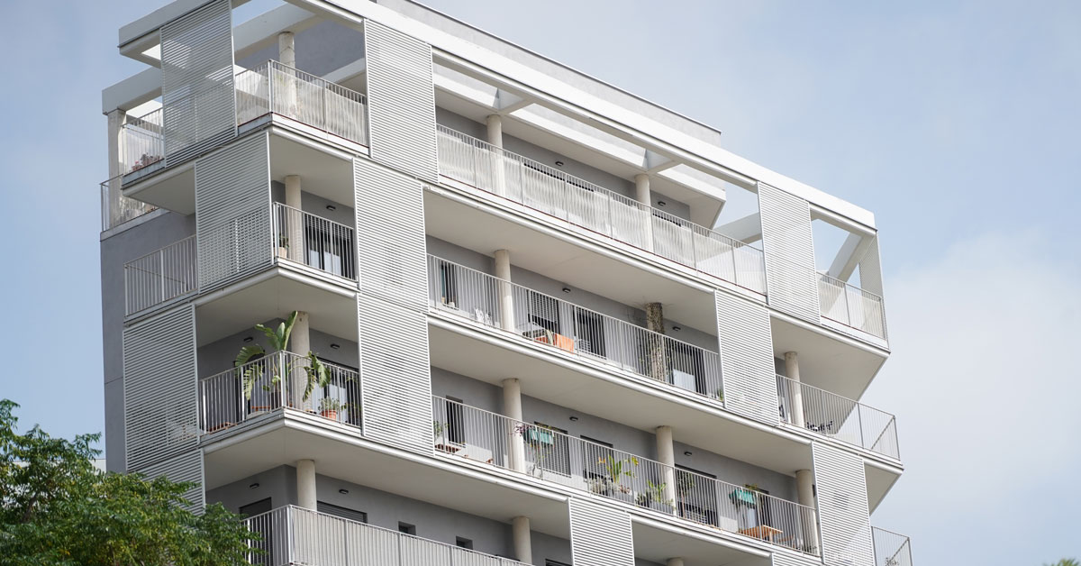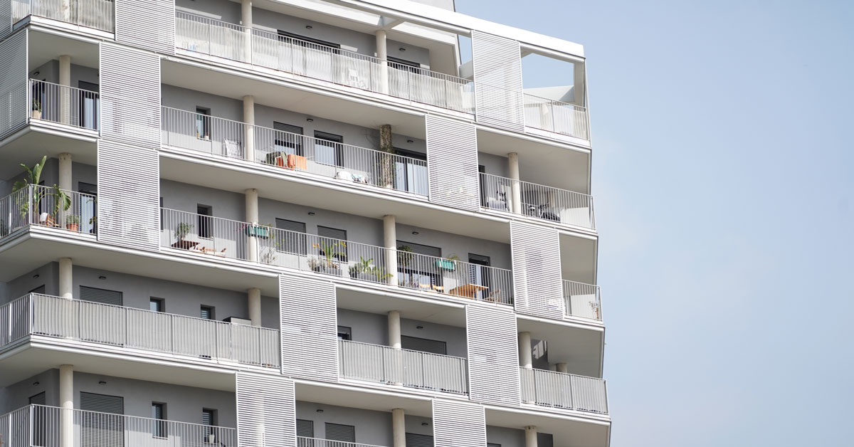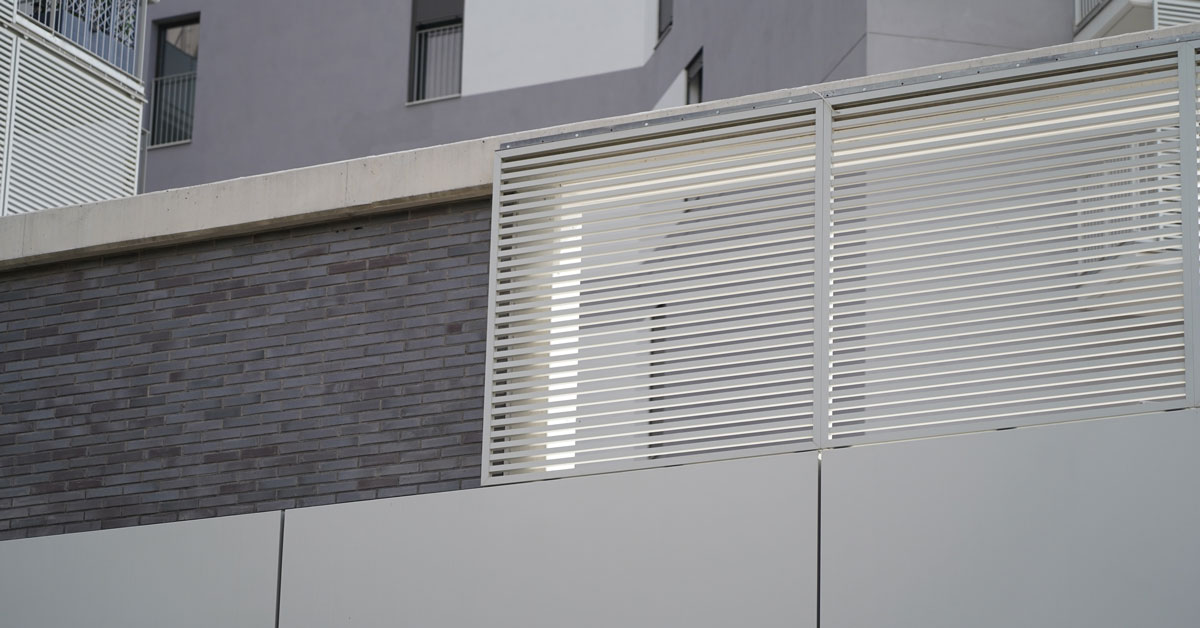 Manufacture and installation of 880 aluminum and glass enclosures, with sliding and practicable hidden leaf openings, with thermal break, for a building of 180 new development homes in the La Sagrera neighborhood, in Barcelona.