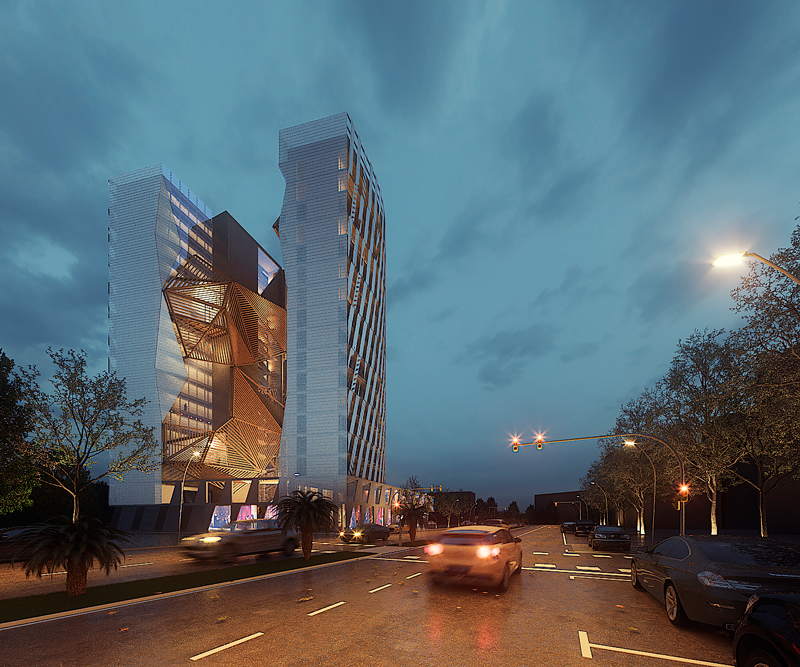 The hotel will have a surface area of more than 20,000 square metres thanks to the two towers it will consist of. The towers will be separated by a 60-metre-high atrium made of wood. The function of this atrium will be to regulate the climatic conditions and to connect the flats.