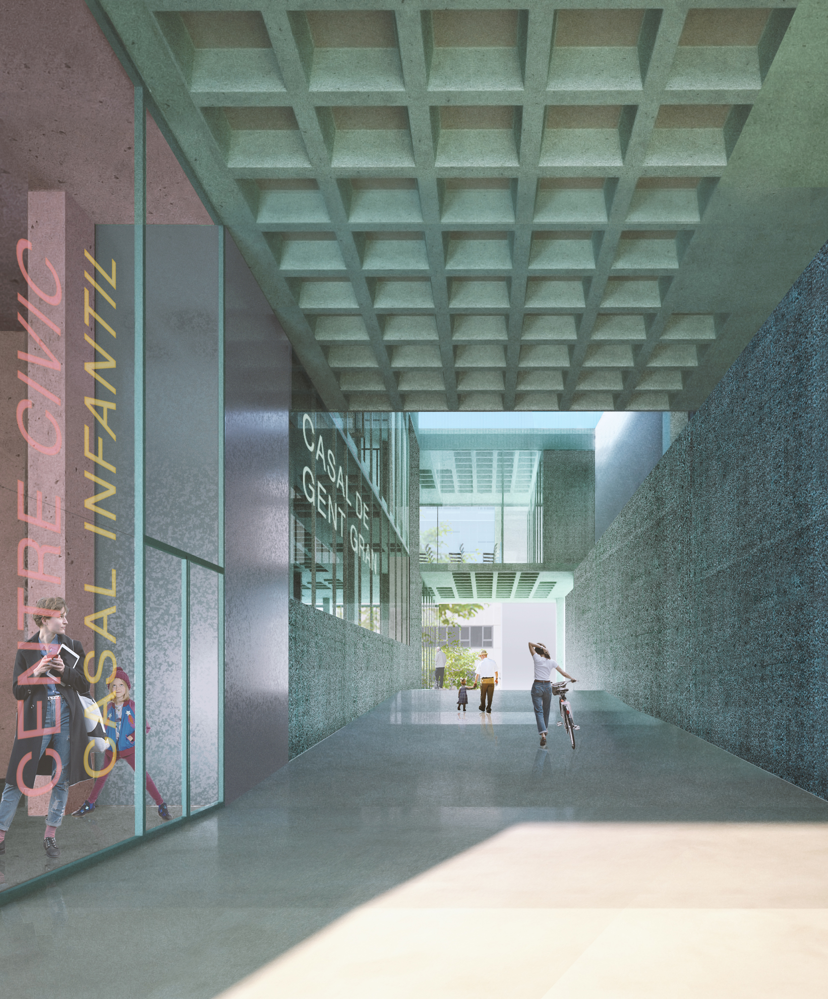 El consistorio barcelonés ha puesto en marcha la rehabilitación integral de la manzana comprendida entre las calles Mallorca, Padilla y Provença, unos 8.107 metros cuadrados de superficie donde existen diversos equipamientos como el Mercado de la Sagrada Familia, un casal de la gente mayor, otro infantil, un centro cívico y una biblioteca. La reforma busca reconectar el barrio con el jardín interior de la manzana y los equipamientos entre sí, reorganizar los usos del edificio de servicios y minimizar el impacto ambiental del conjunto de equipamientos.