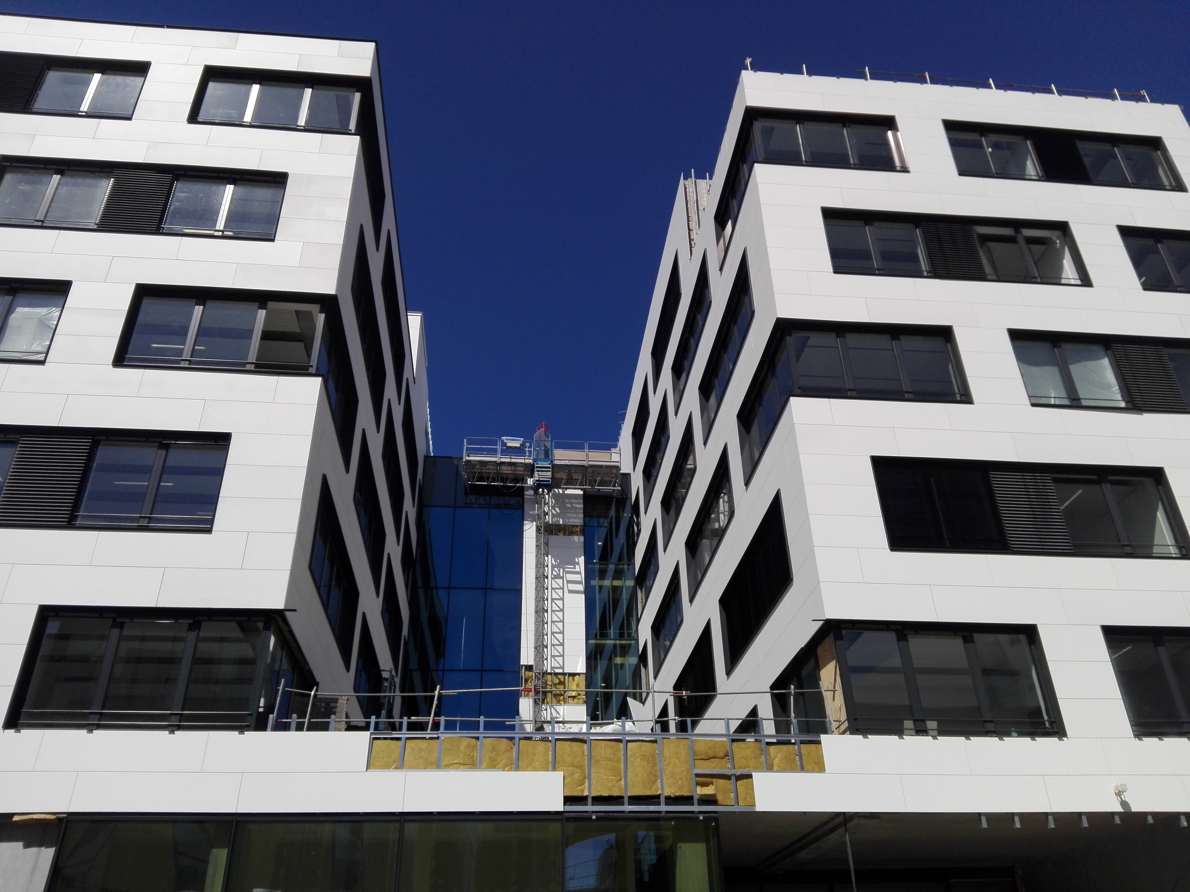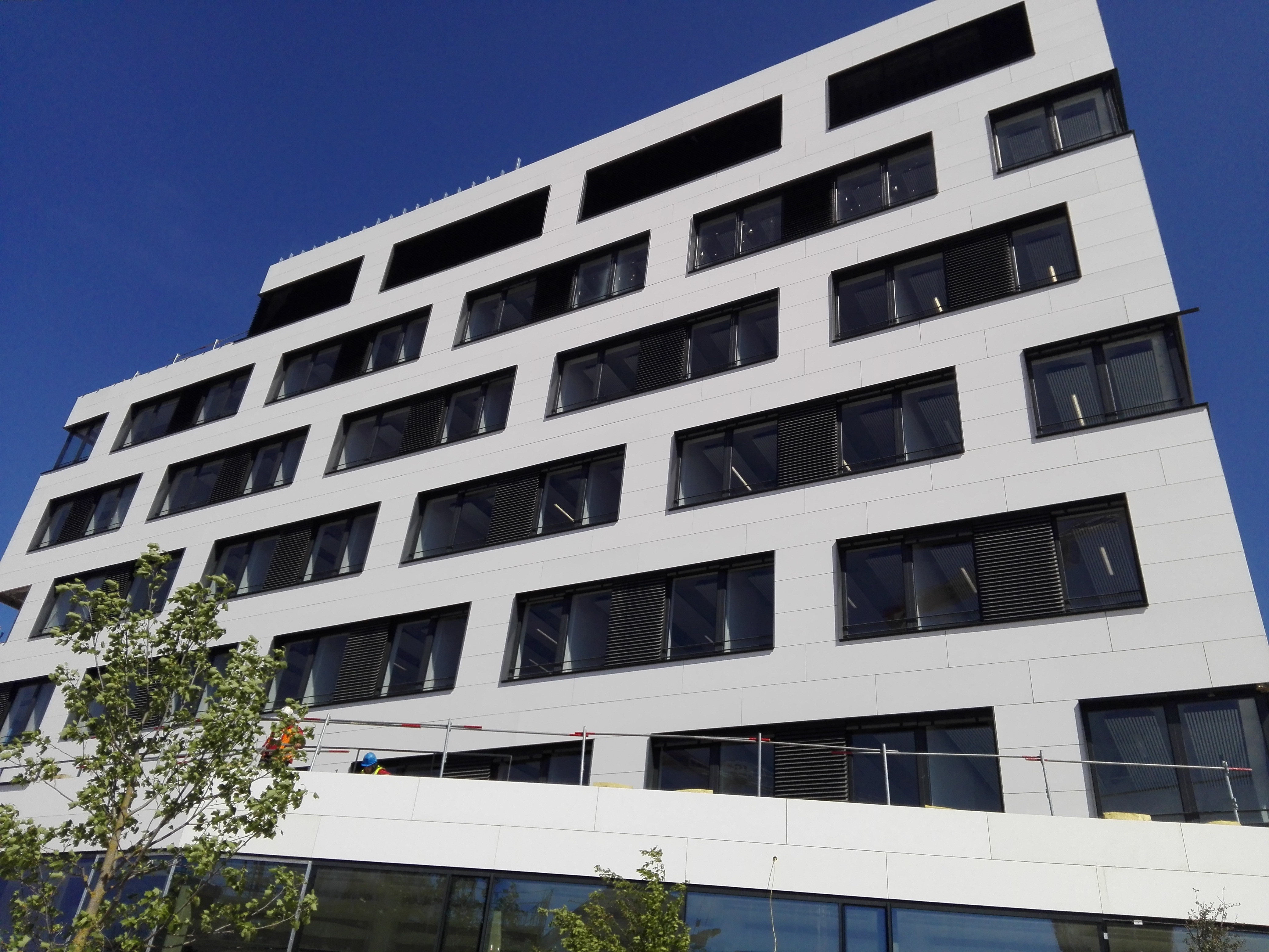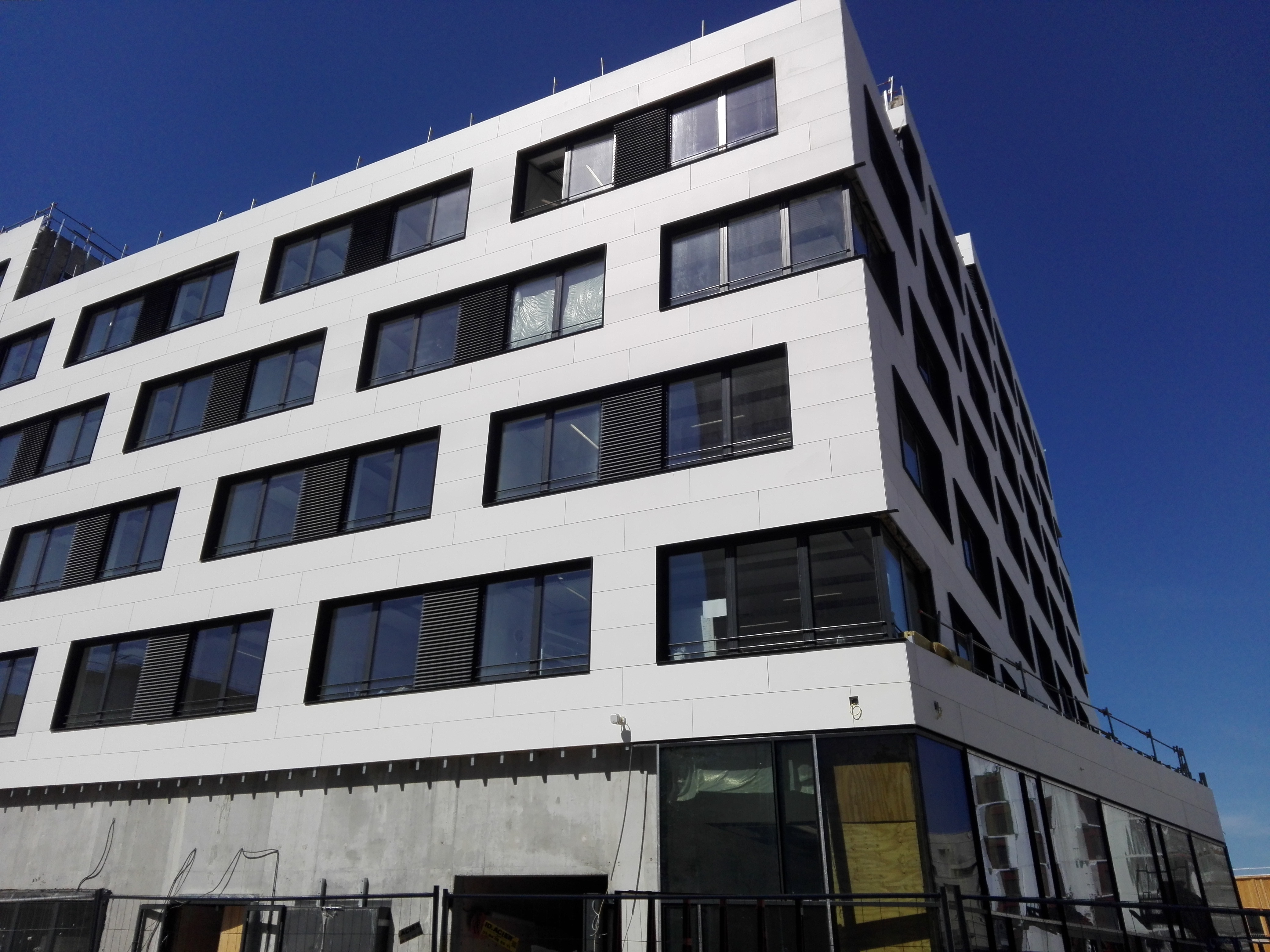 También se han realizado los cerramientos de aluminio de las plantas superiores, elaborados con chasis de aluminio de apertura practicable a la francesa, con perfiles de hoja oculta y rotura térmica con un total de aproximadamente 2.780 metros cuadrados.