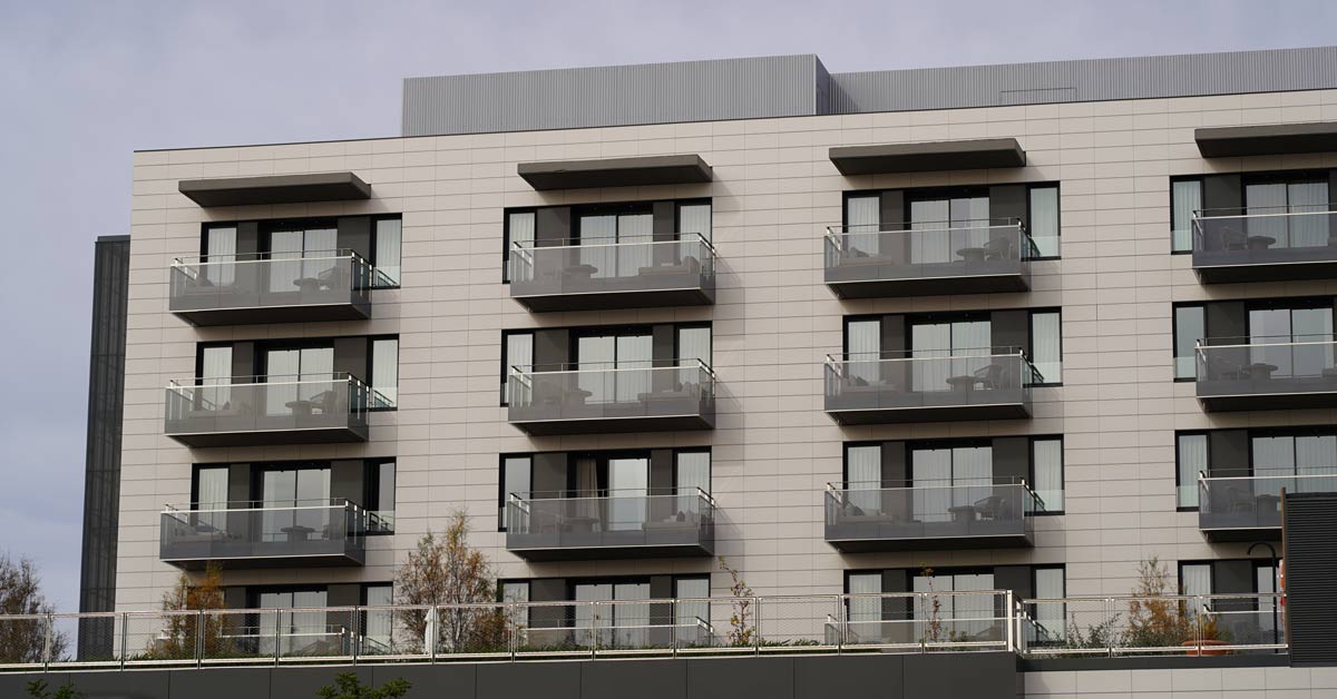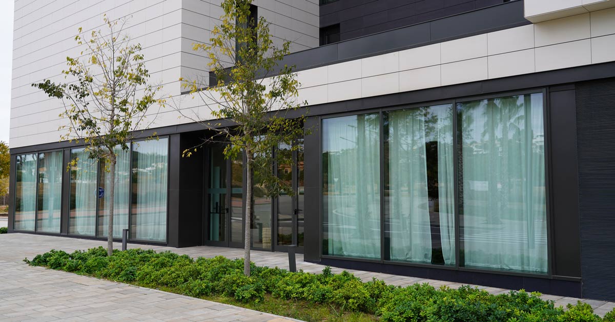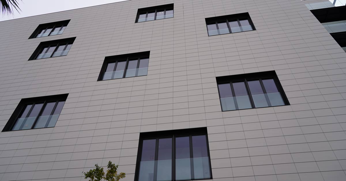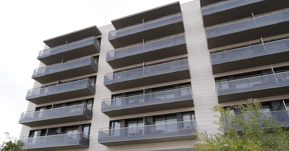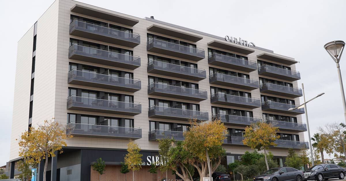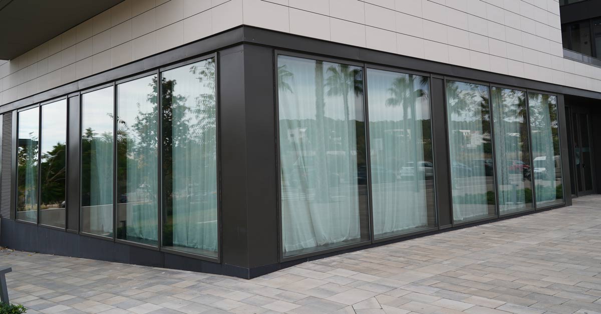 Cerramientos de aluminio para edificio de nueva construcción en Sitges, destinado a aparthotel y centro comercial.