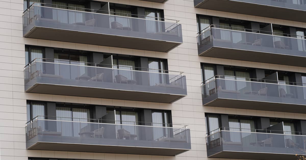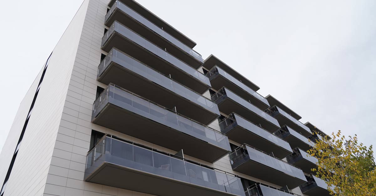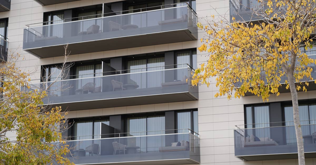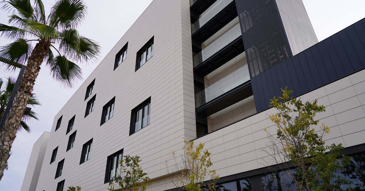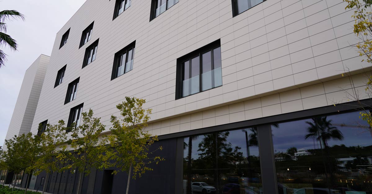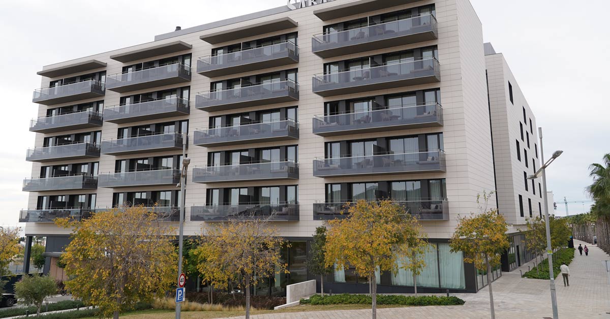 Cerramientos de aluminio para edificio de nueva construcción en Sitges, destinado a aparthotel y centro comercial.