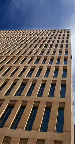 Para esta obra GARCIA FAURA desarrolló, conjuntamente con uno de los principales proveidores de aluminio del mercado, un perfil de hoja y marco especiales para la ventana practicable de hoja oculta. El objetivo era partir de un producto que daba todas las garantías de calidad, pero que había que adaptar a los requerimientos estéticos que marcaban los arquitectos. El resultado final, liderado por la Oficina Técnica de GARCIA FAURA, fue el de una ventana que disimula la sección del bastidos de hoja tras el perfil del marco.