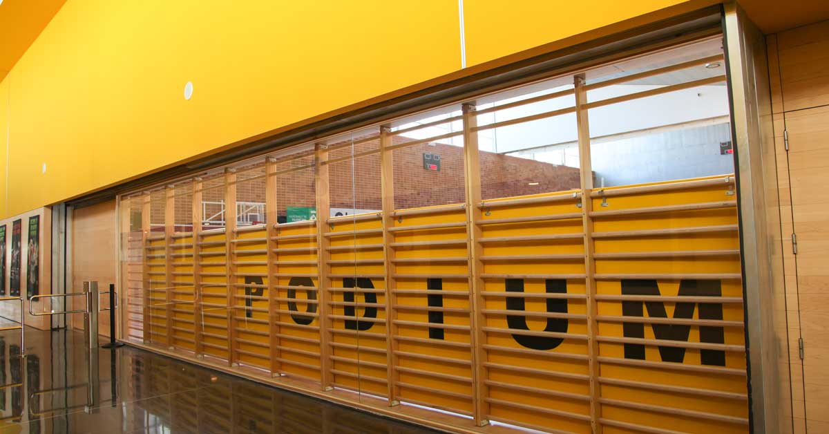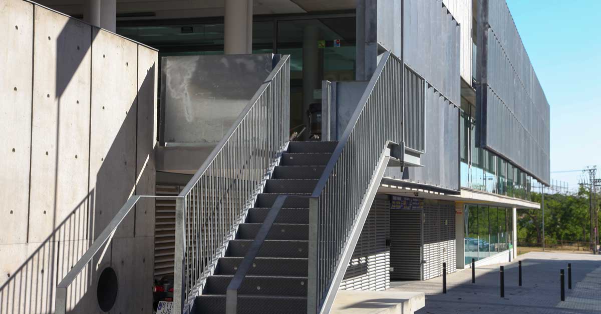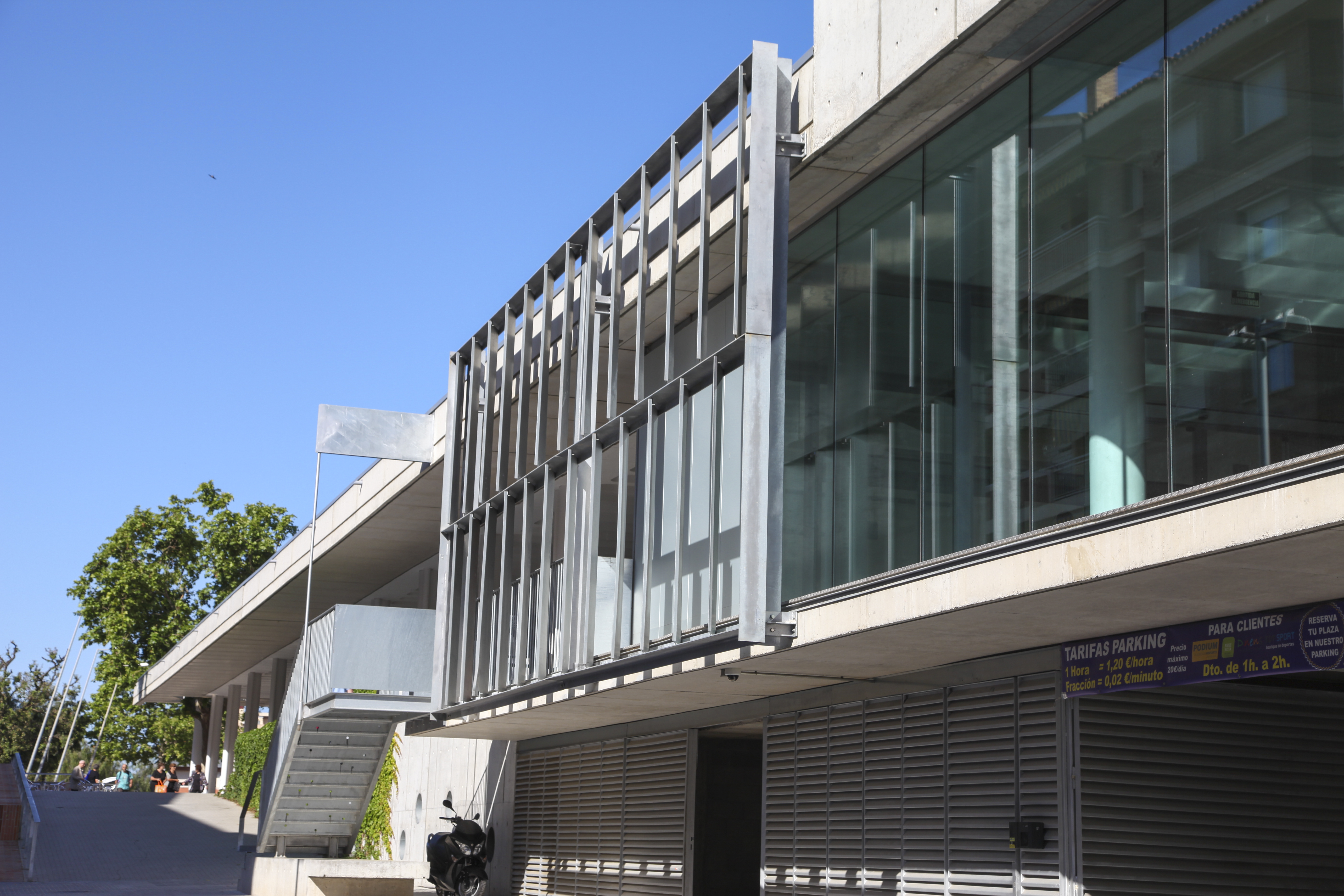 El complejo deportivo Pòdium – Joan Masgrau de Viladecans dispone de 3 grandes zonas: un pabellón polideportivo, las salas de actividades dirigidas y la de aguas, con una piscina cubierta y otra al aire libre. Se integra en el conjunto ciudadano del parque de la Torre Roja, y está abierto a la práctica deportiva individual y a la de los diferentes clubes y entidades de la ciudad. De hecho, una de las premisas del proyecto era la máxima polivalencia de los diferentes espacios, así como la estrategia de aprovechamiento energético. El proyecto del estudio Brullet – De Luna ha concebido un diseño que permite el máximo aprovechamiento de la luz natural a través de lucernas, el control térmico favorecido por la disposición de espacios intermedios y el control de la radiación solar mediante estructuras de brise-soleils.