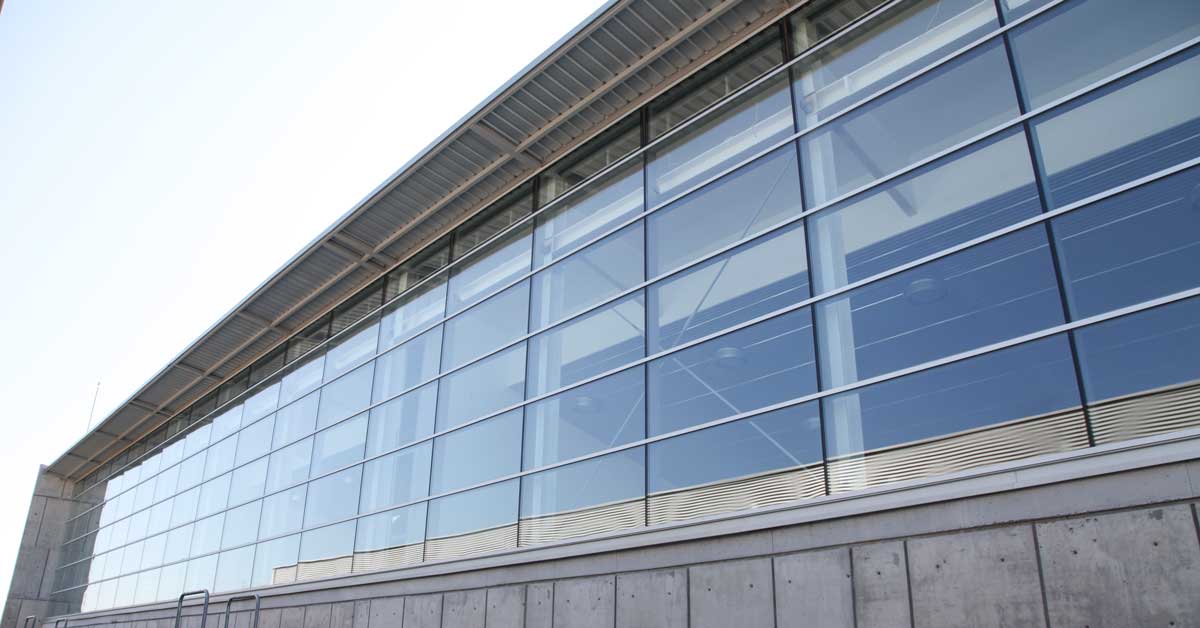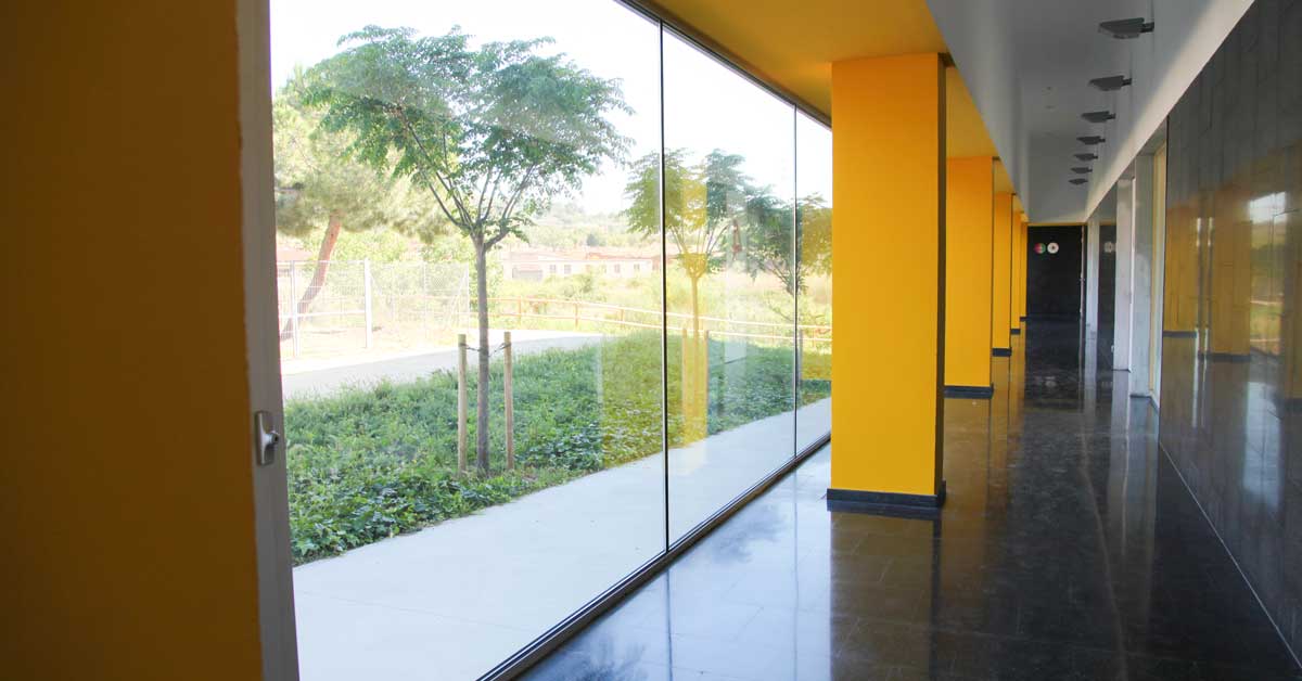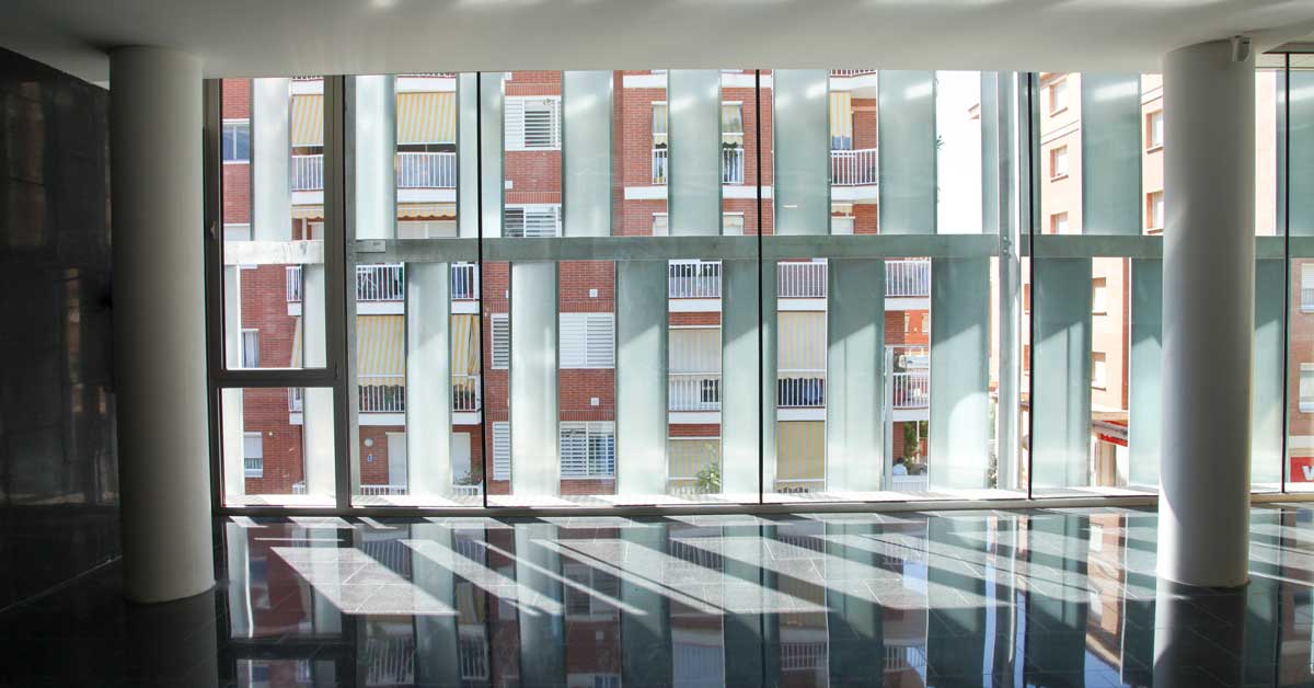 GARCIA FAURA recibió el encargo de contribuir, con la fabricación e instalación de sus productos, a este aprovechamiento energético. De esta manera se ha procedido a la ejecución de grandes módulos fijos corridos así como 2 grandes muros cortina para la zona de piscinas, que permiten la máxima entrada de luz natural al interior, al mismo tiempo que crean un continuo visual entre ambientes. Los trabajos también han permitido la incorporación de más de 2.000 m2 de cerramientos con perfiles de aluminio con rotura de puente térmico, que fomentan aún más esta sensación de confort interior del usuario de manera que permiten un mayor aislamiento térmico entre interior y exterior.