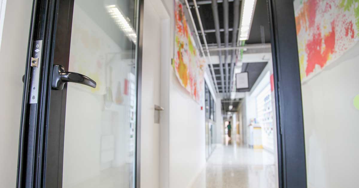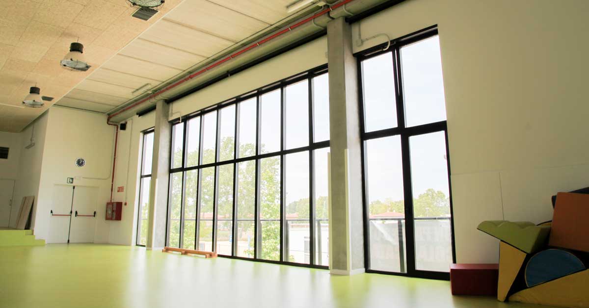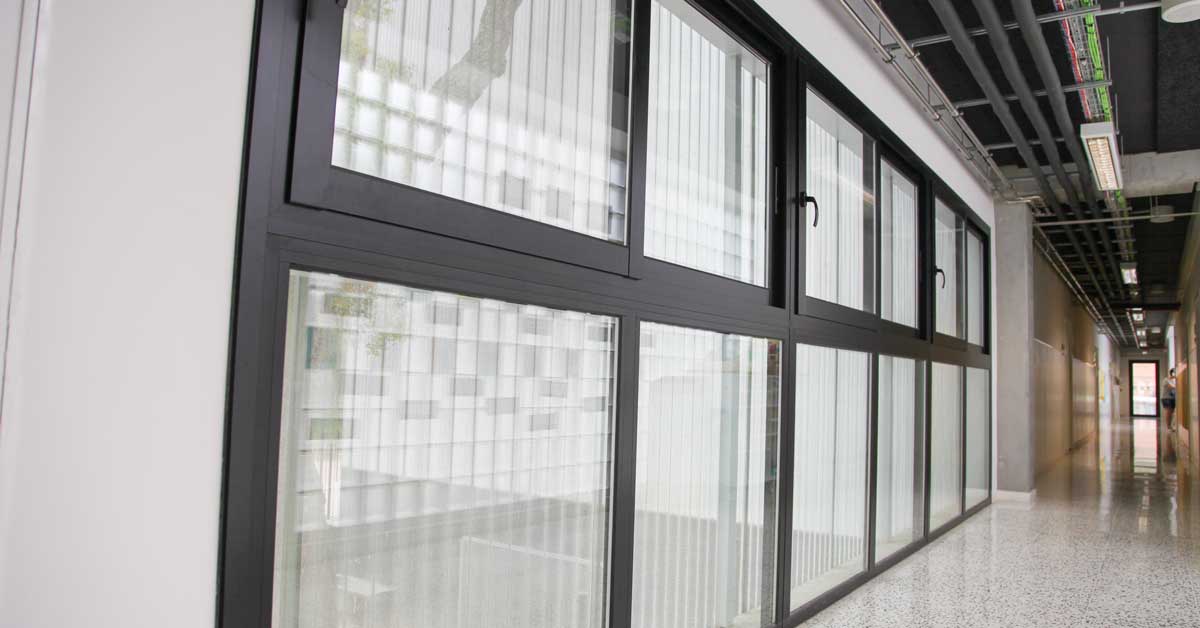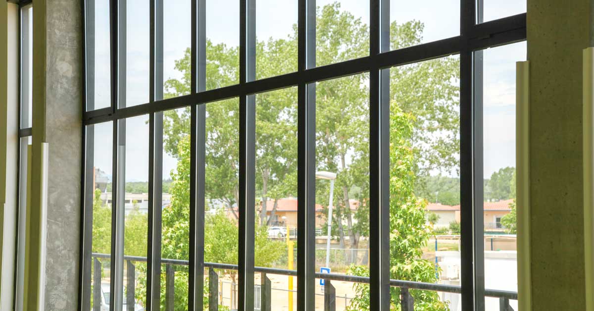 GARCIA FAURA ha desarrollado los trabajos de fabricación e instalación del conjunto de cerramientos del edificio. Un total de 445 m2 fabricados con perfilería de aluminio con unas altas prestaciones técnicas y una estética en consonancia con el proyecto constructivo. Se busca el máximo bienestar y confortabilidad al servicio de los usuarios finales del equipamiento: los estudiantes y el profesorado del centro educativo.