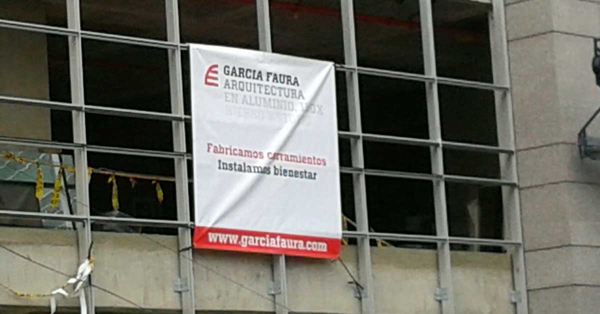 GARCIA FAURA ejecuta la totalidad de los trabajos de cerramientos, consistentes en la fabricación e instalación de 3.500 metros cuadrados de puertas y ventanas de aluminio con perfilería europea de altas prestaciones técnicas. El proyecto ejecutivo combina espacios totalmente fijos con partes móviles de apertura proyectando al exterior, así como 500 metros cuadrados de zonas inferiores realizadas con fachada de vidrio laminar con control solar y parcialmente serigrafiado. El resultado final será el de un excelente confort climático interior y una adecuada atenuación acústica, en beneficio del buen desarrollo de la actividad empresarial que tiene que albergar el edificio.