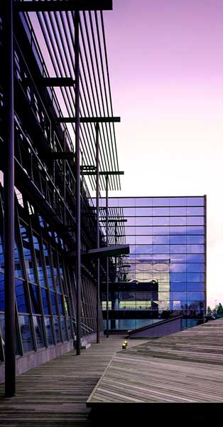 Muros cortina del edificio central y trabajos de carpintería de aluminio en edificios de servicios