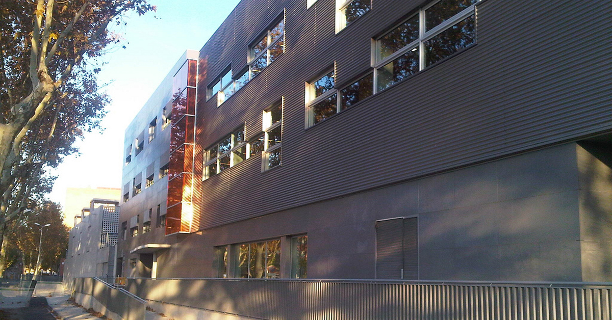 Cerramientos y pasarela de vidrio pisable en equipamiento asistencial en Barcelona