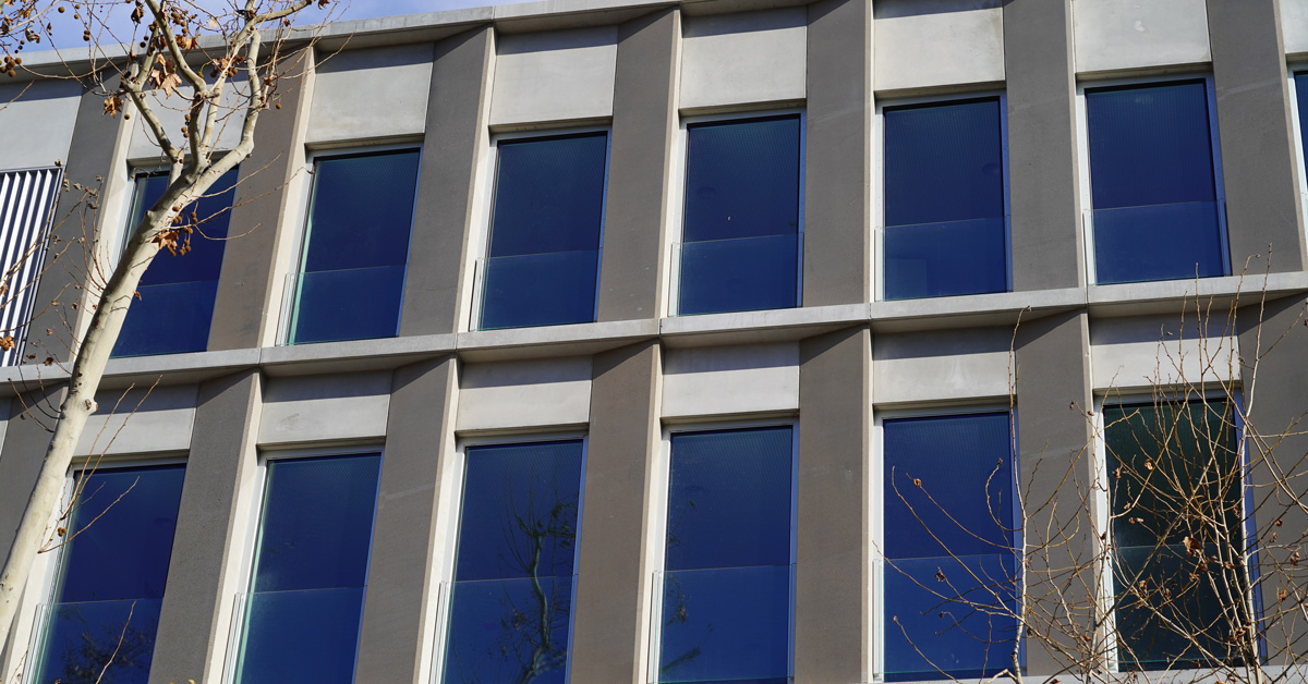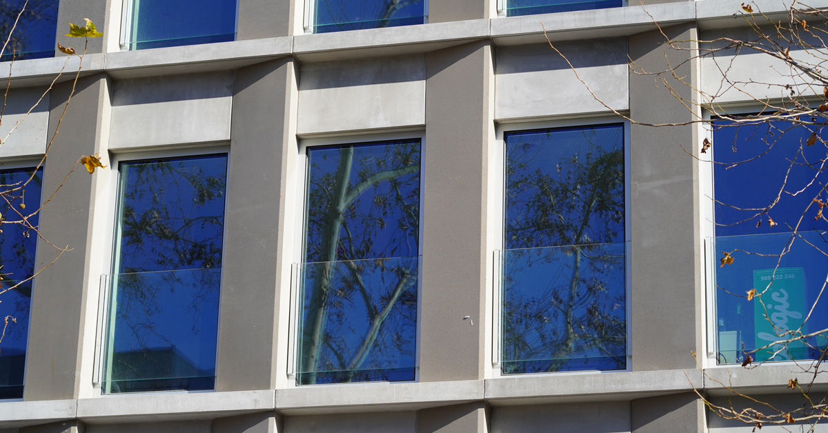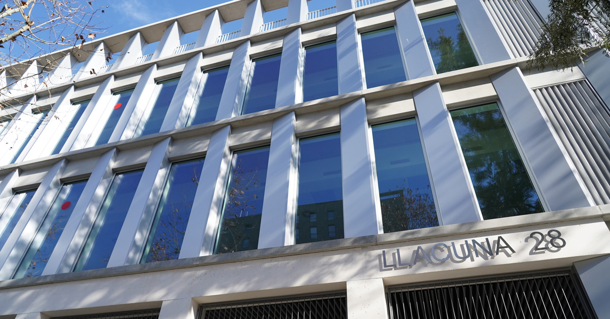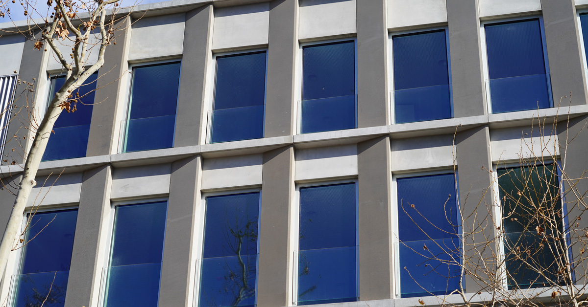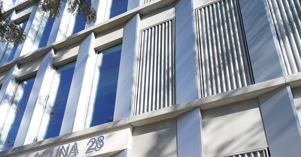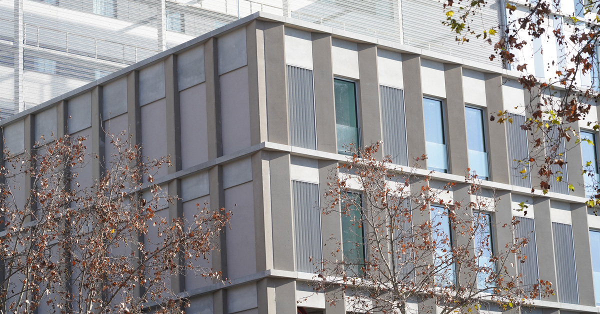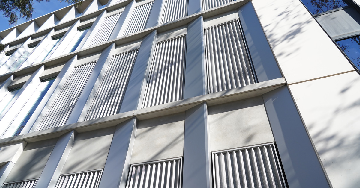 Desarrollo, fabricación e instalación de cerramientos, revestimientos de panel composite y celosías para edificio de oficinas y nueva residencia en la calle Llacuna de Barcelona.