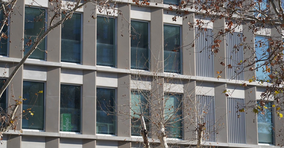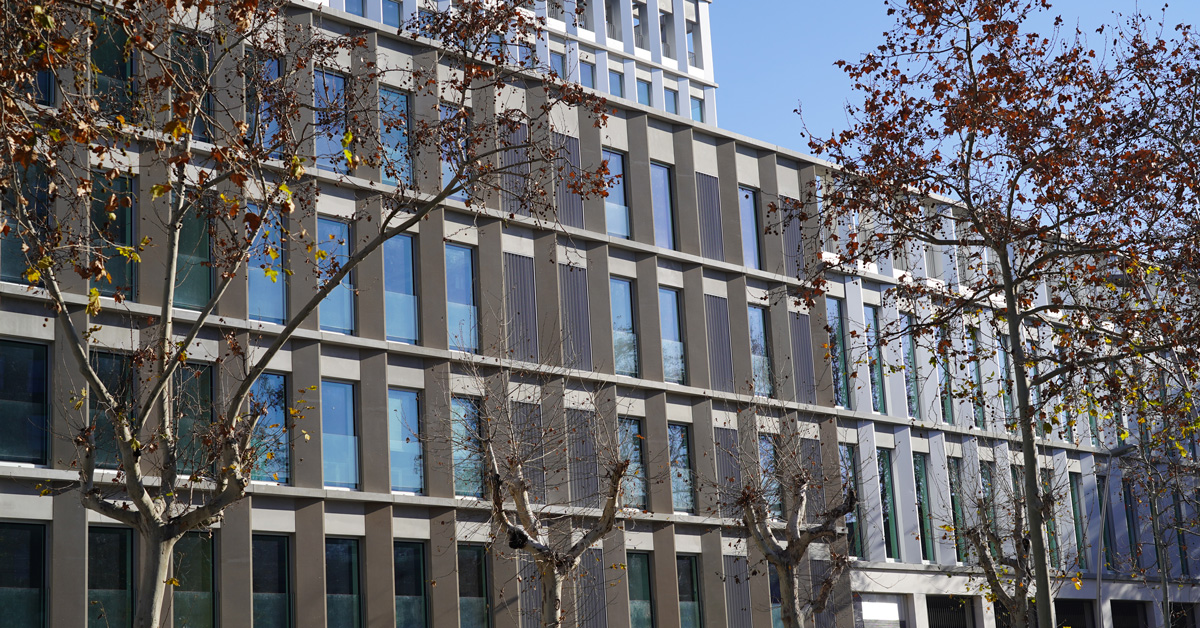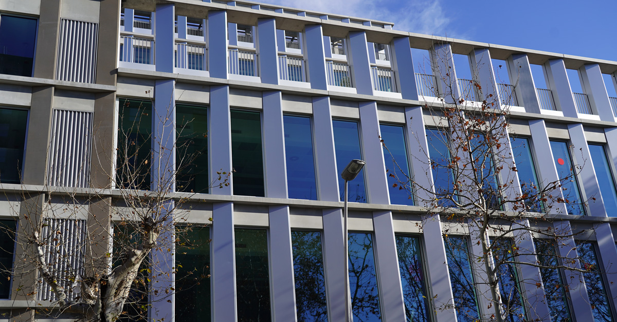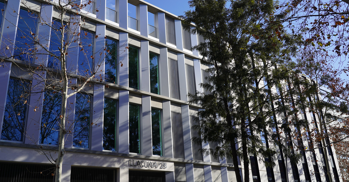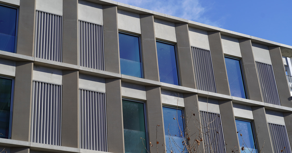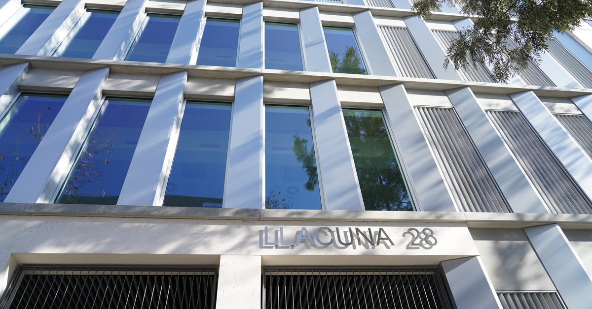 Desarrollo, fabricación e instalación de cerramientos, revestimientos de panel composite y celosías para edificio de oficinas y nueva residencia en la calle Llacuna de Barcelona.