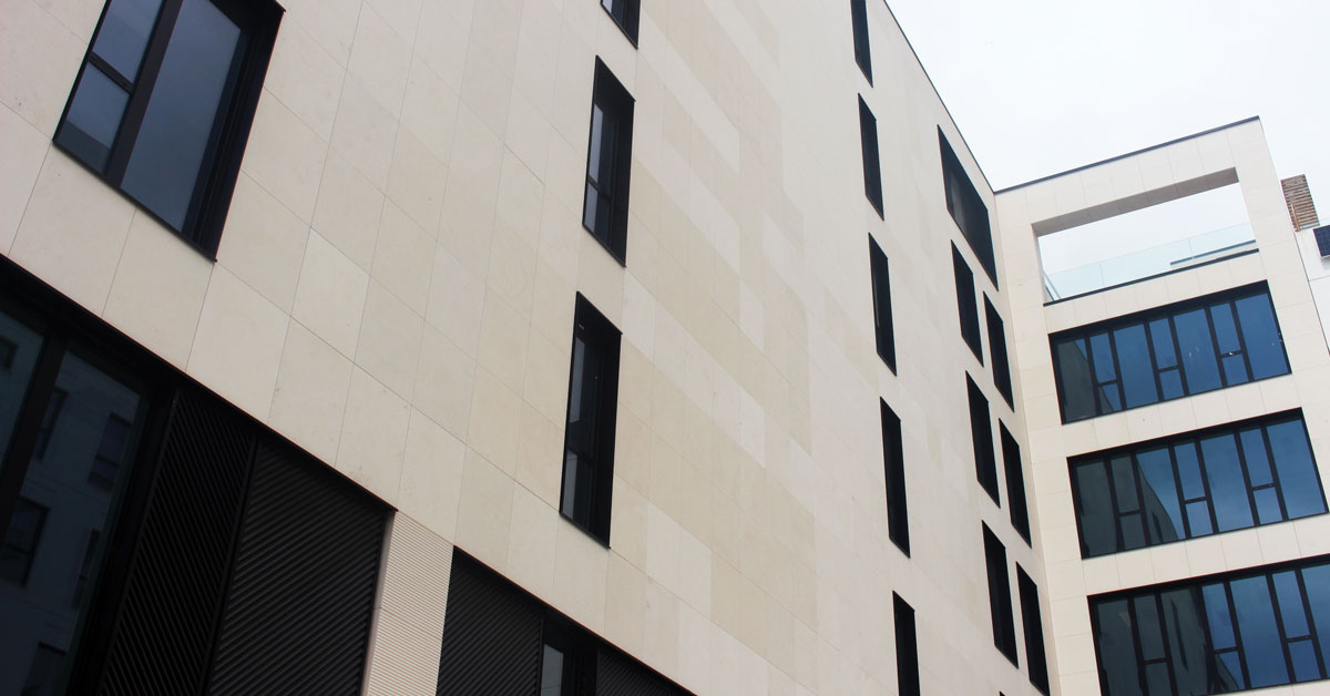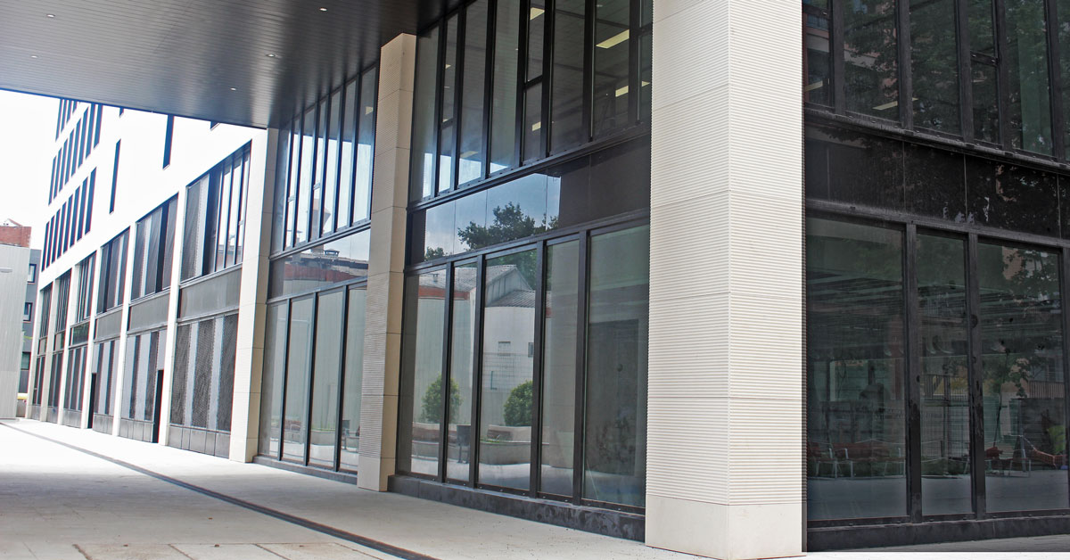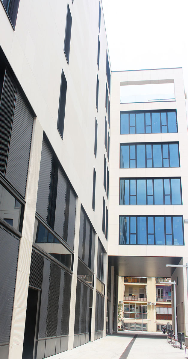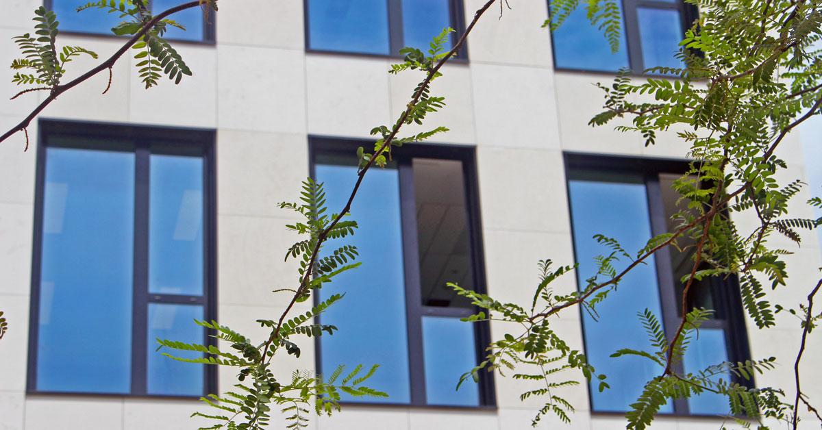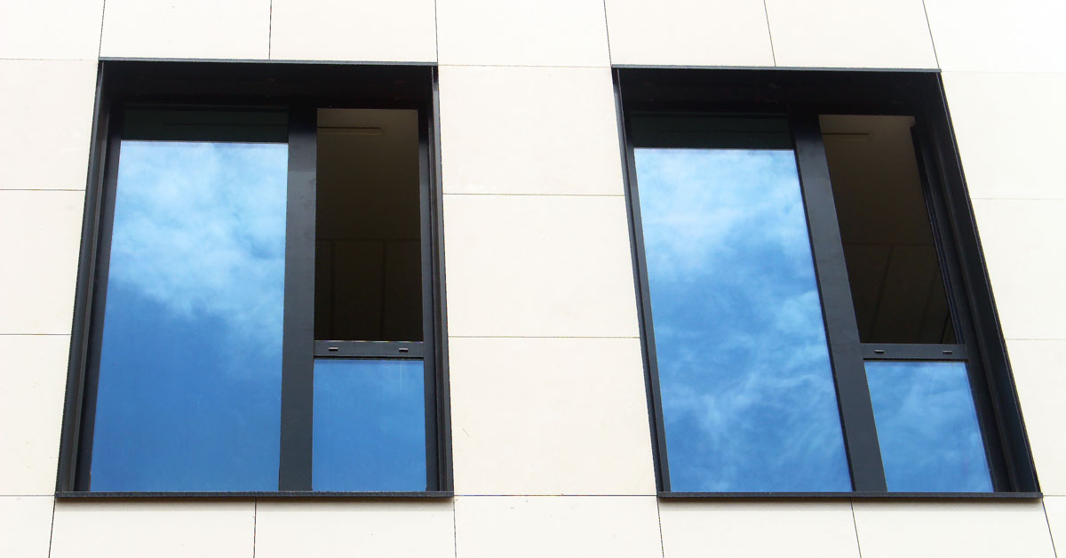 Fermetures en aluminium et stores rétractables à lattes réglables.