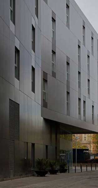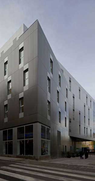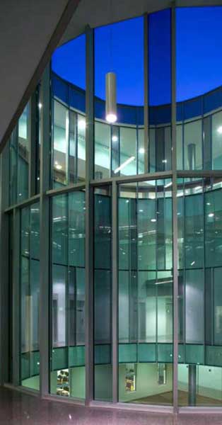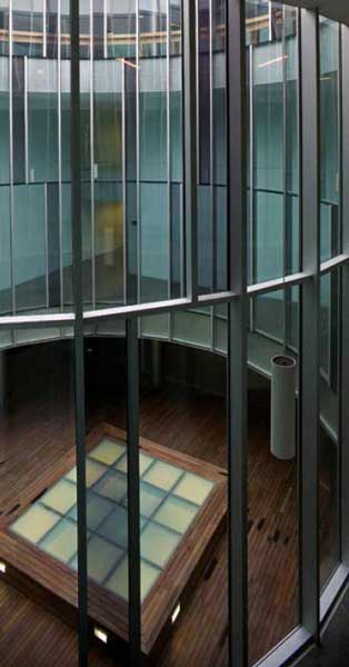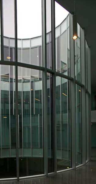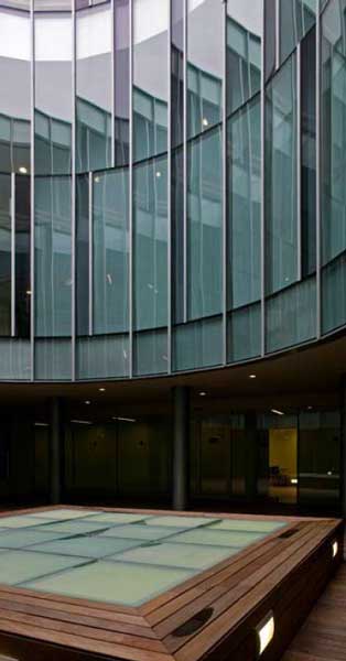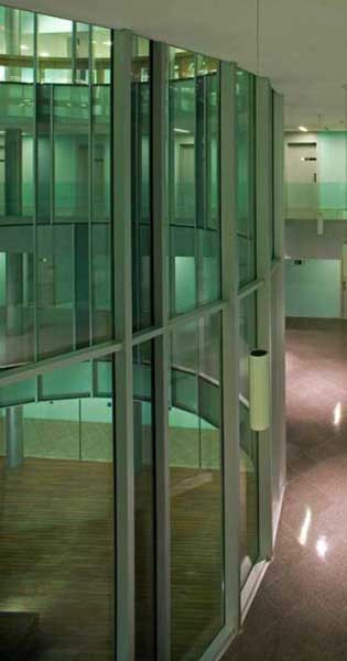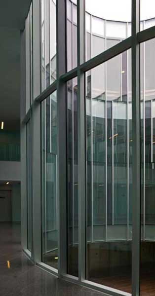 Ce qui a inspiré ce projet, c’est clairement son usage comme conservatoire de musique. Ceci impliquait des exigences spécifiques en termes d’isolation acoustique afin de garantir le travail individuel de chaque salle, mais aussi l’isolation du bâtiment lui-même dans son intégralité, par rapport à l’extérieur. Pour ce faire, nous avons travaillé intensément sur une étude acoustique de la façade afin de répondre à tous les défis posés par l’architecte. Le mur intérieur en verre bombé, qui rappelle une touche de piano, offre un caractère unique à la zone centrale du bâtiment.