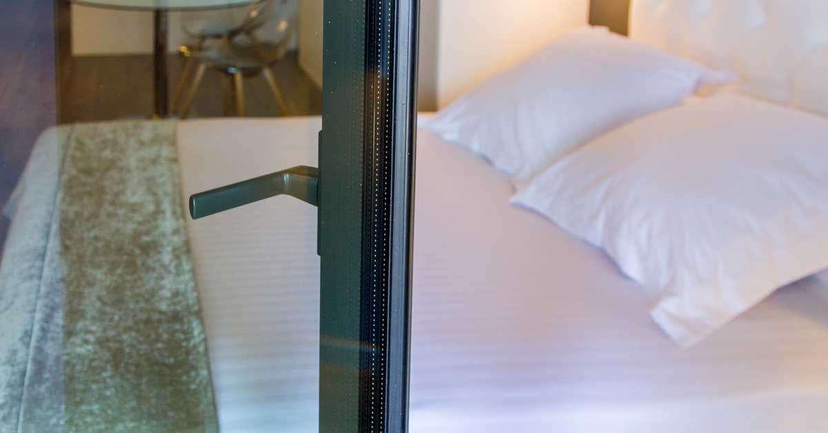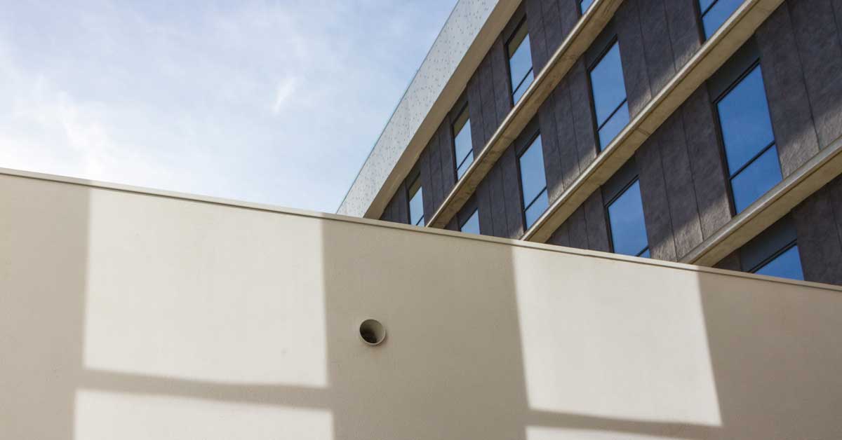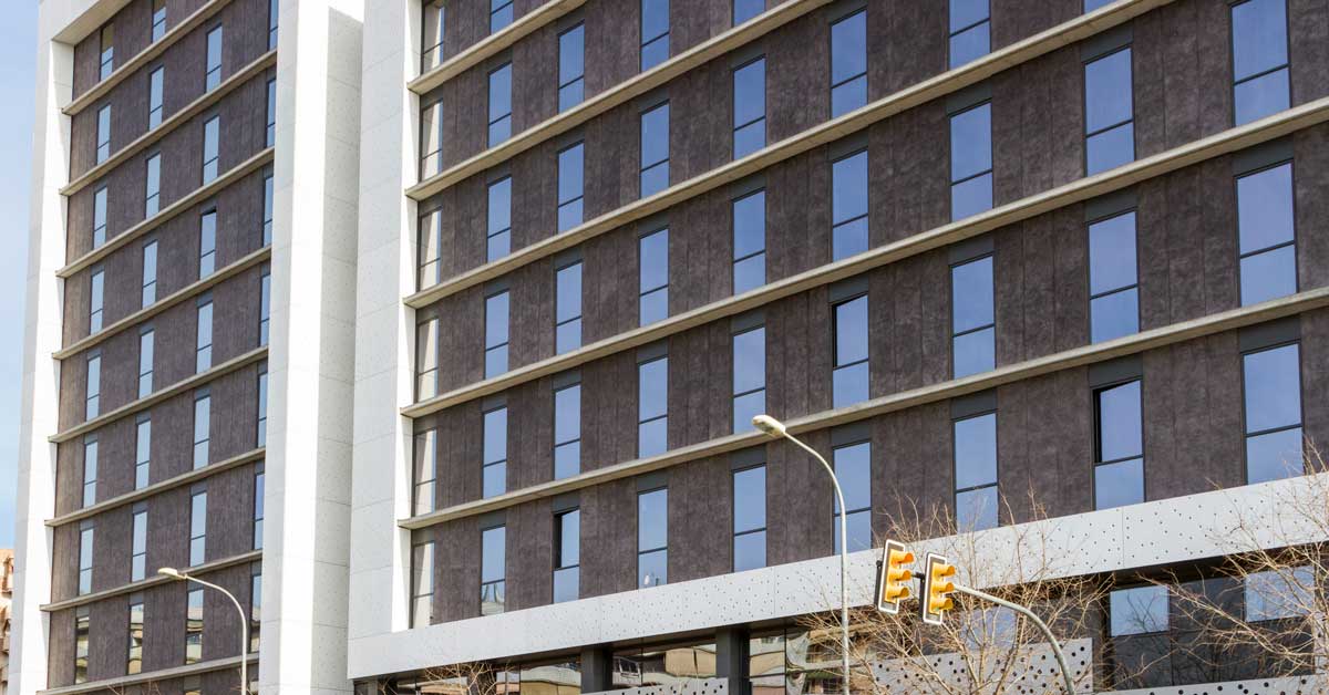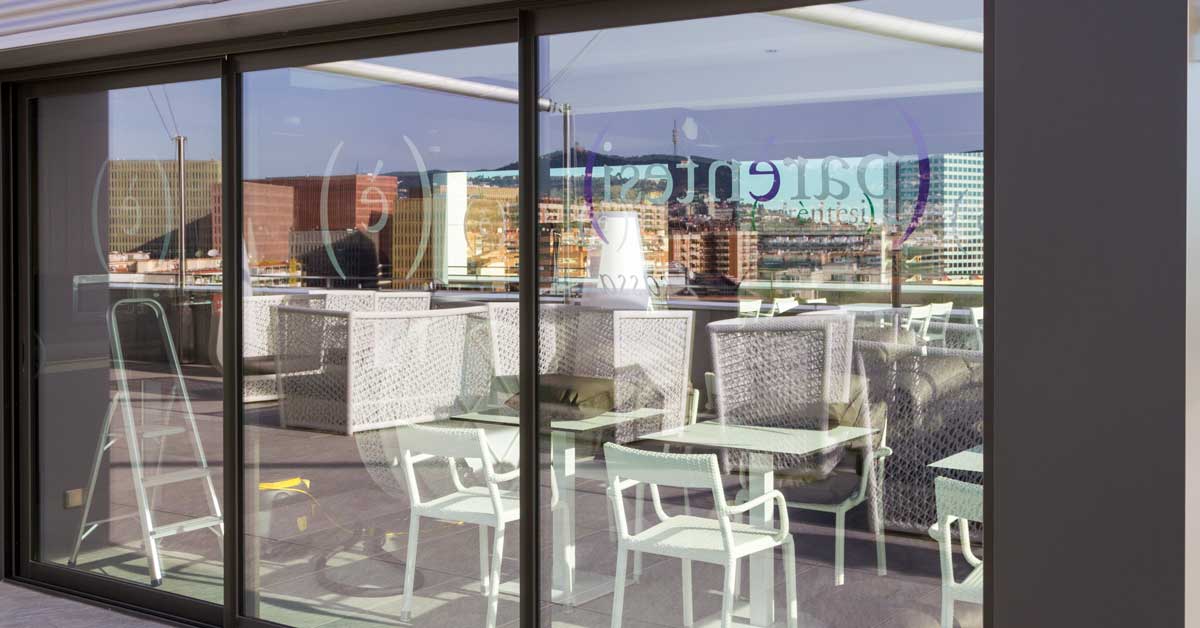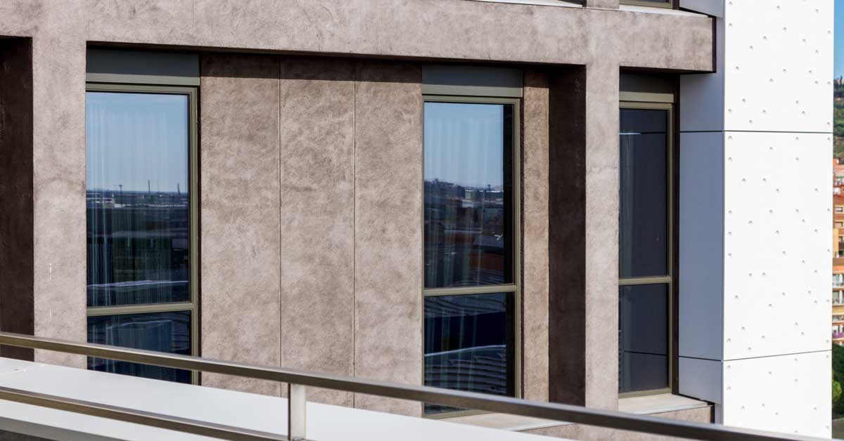 GARCIA FAURA a développé le projet d’architecture en aluminium et verre concernant la série de fermetures et la façade en verre. Quant à cette dernière, une zone de 250 m² de mur-rideau avec capot horizontal et vertical a été fabriquée et installée. L’ensemble de fermetures, plus de 330 unités, est doté d’une fermeture à pont thermique et de profilés d’aluminium à ouvrant caché. Un système de fabrication qui combine des performances techniques très élevées et une esthétique impeccable. De ligne sobre, elles sont munies d’une petite moulure intérieure à l’aspect élancé, créant ainsi un jeu d’ombres symbolique. Les fenêtres sont complétées par un placage supérieur en tôle d’aluminium.