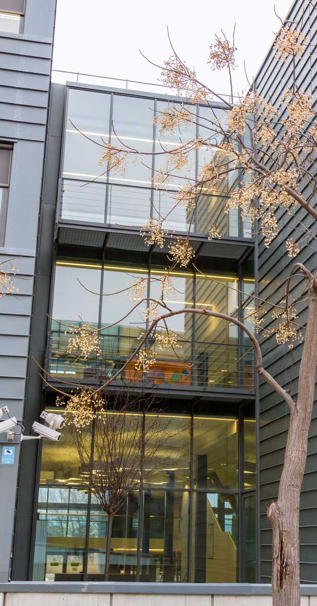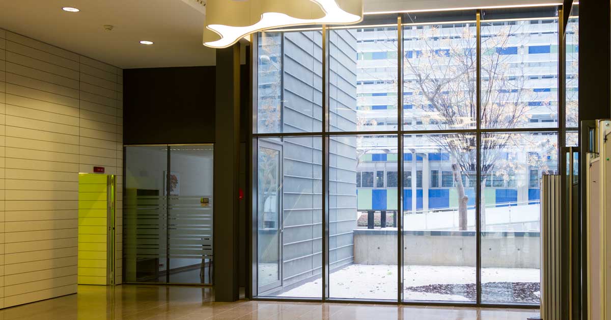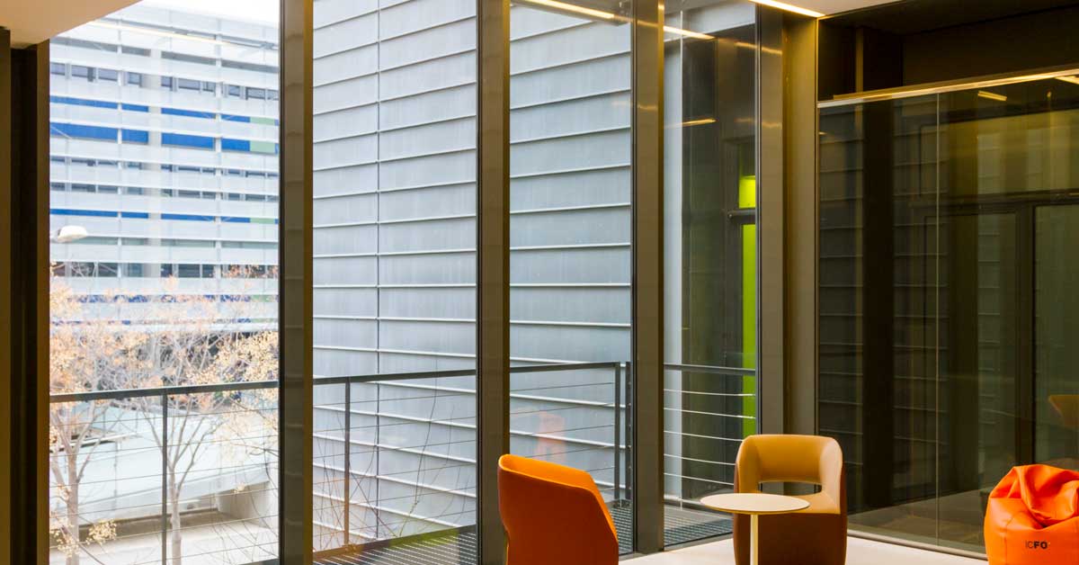 En tant que centre de recherche sur la lumière, le bâtiment mise sur le contraste ombre-lumière et sur une exploitation exhaustive de la lumière moyennant des écrans de protection solaire et d’autres éléments. À l’extérieur du bâtiment, l’attention est attirée par un mur-rideau traversé par des passerelles qui offrent au bâtiment une qualité esthétique, tout en facilitant les tâches d’entretien et de prévention. Un bâtiment moderne consacré à la recherche scientifique.