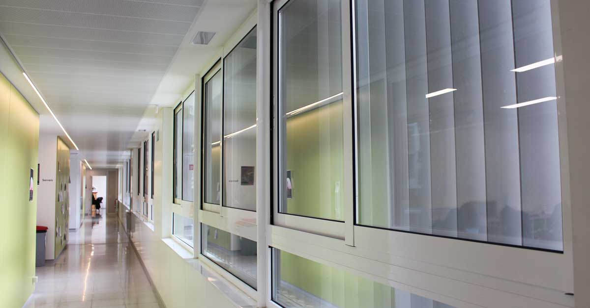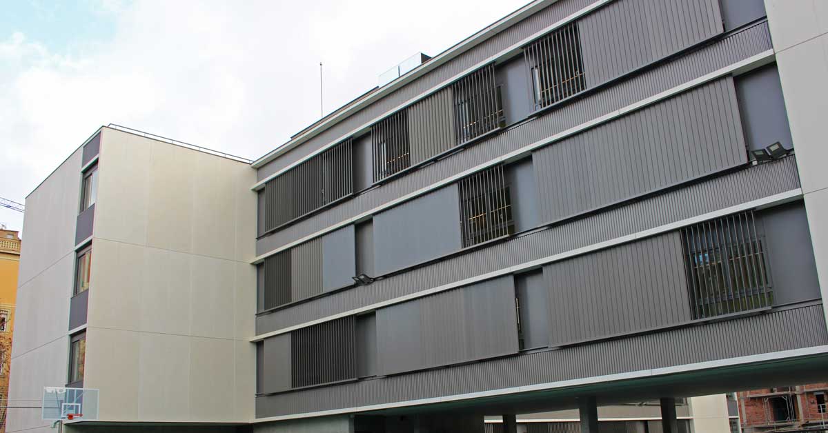 GARCIA FAURA est intervenu dans la construction du lycée en installant 950 mètres carrés de fermetures bicolores, pour des portes, fenêtres et balcons ouvrants et d’autres fenêtres à deux ou trois panneaux coulissants. Pour tous ces travaux, il fallait garantir les conditions d’isolation acoustique et thermique requises pour des bâtiments scolaires et le confort des personnes. Ces conditions ont été remplies par le choix de systèmes en aluminium de qualité adéquate.