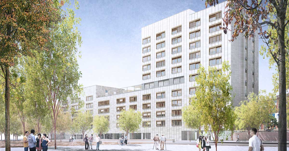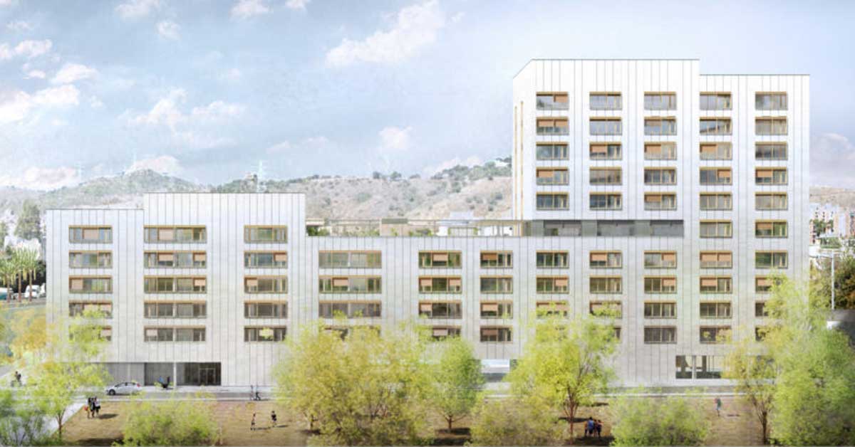 Menuiseries en aluminium et en verre pour le développement de 139 logements sociaux dans le secteur de Porta Trinitat à Barcelone.