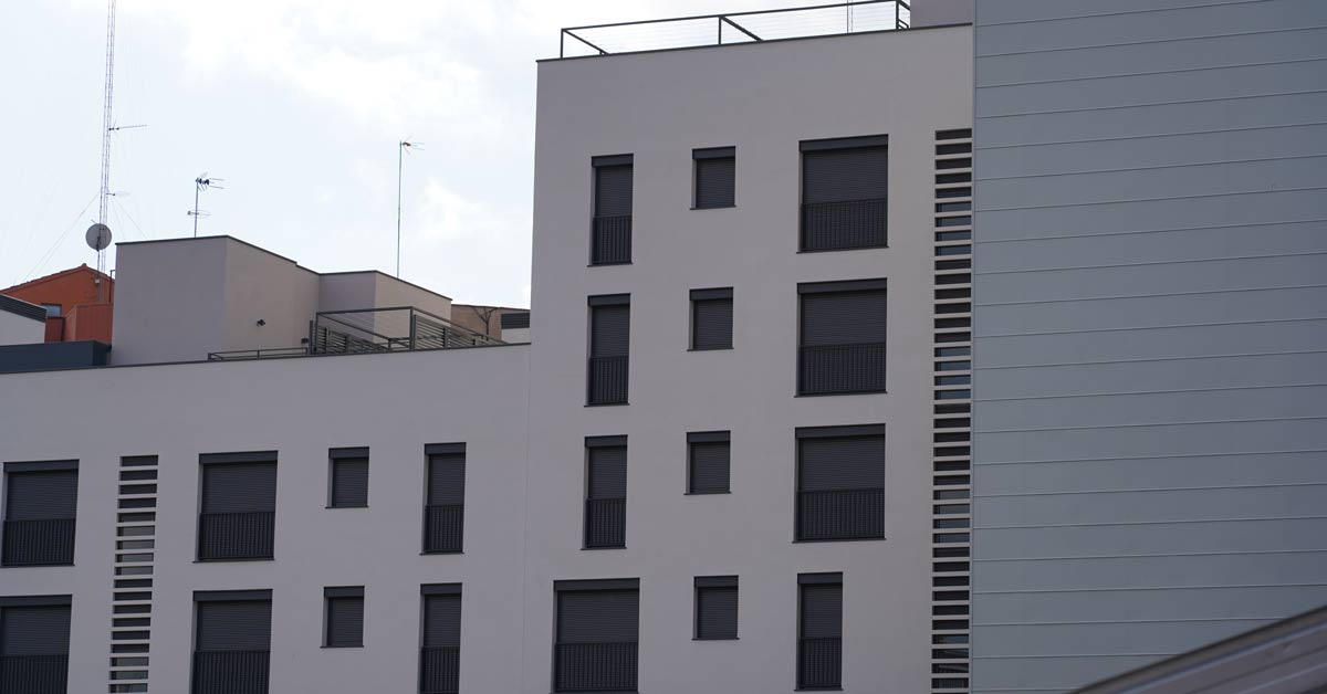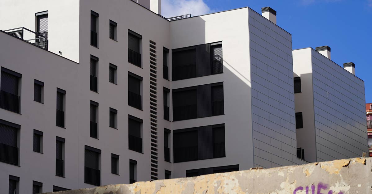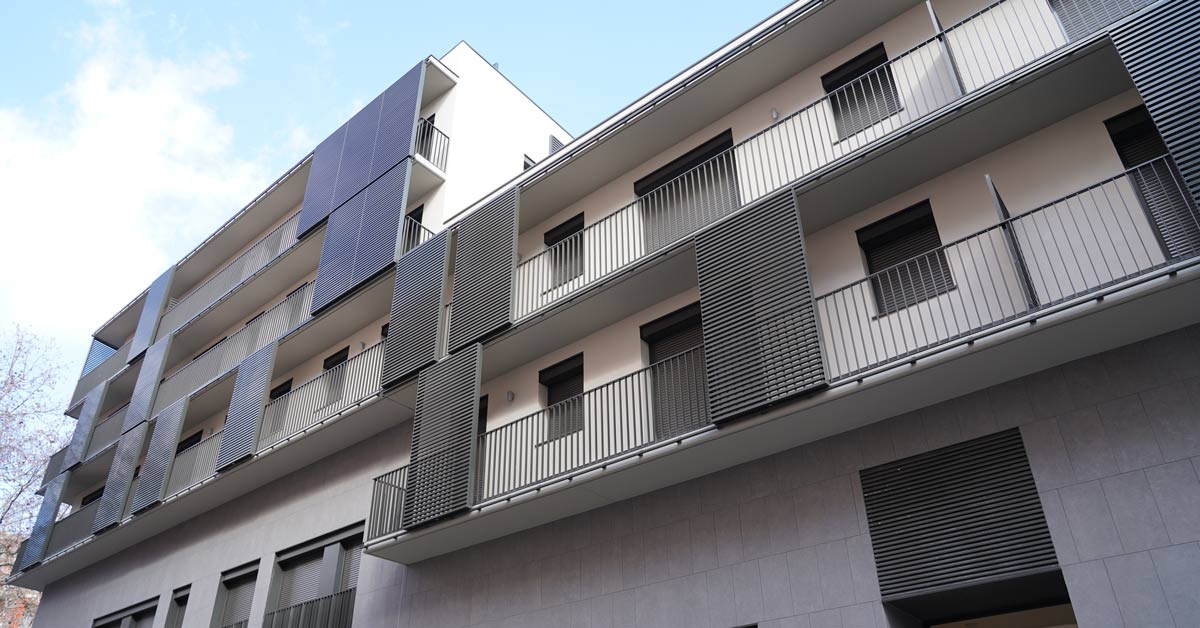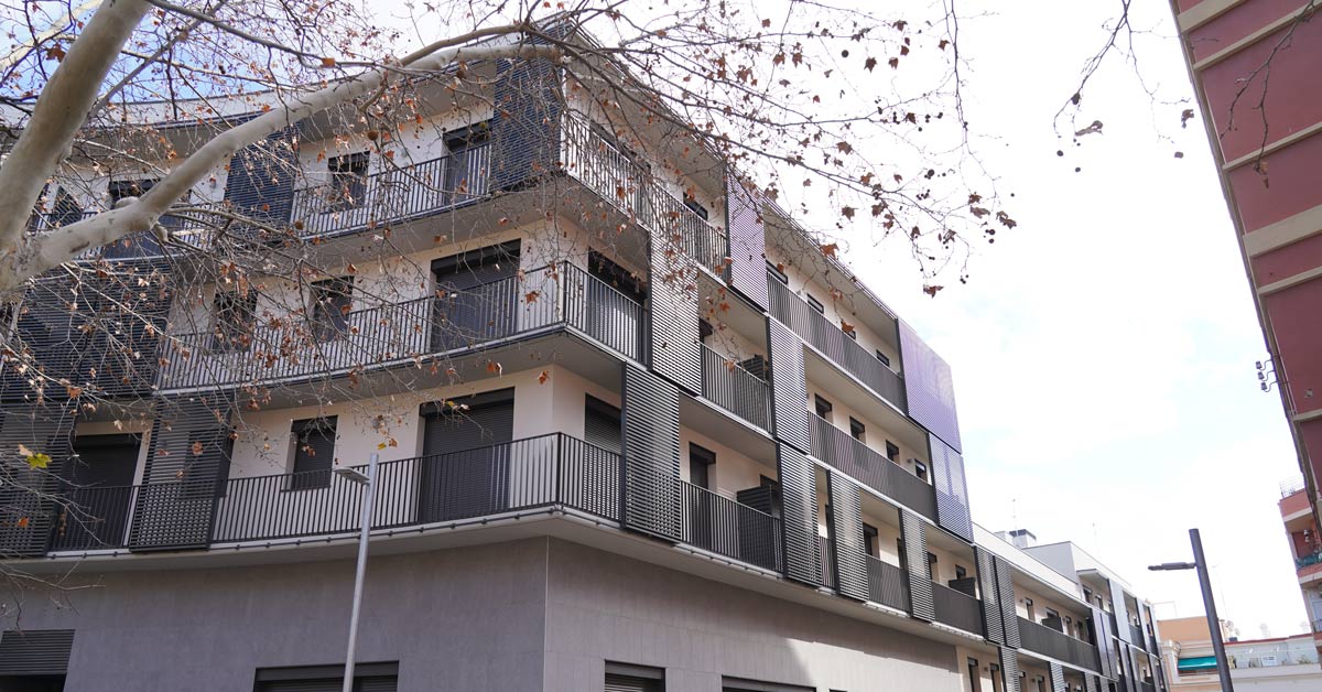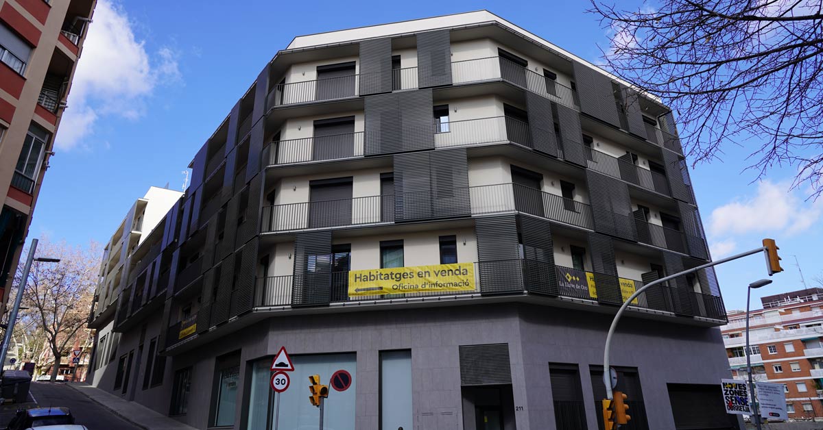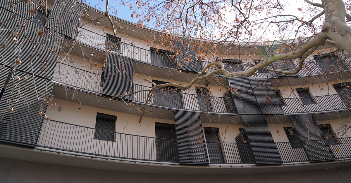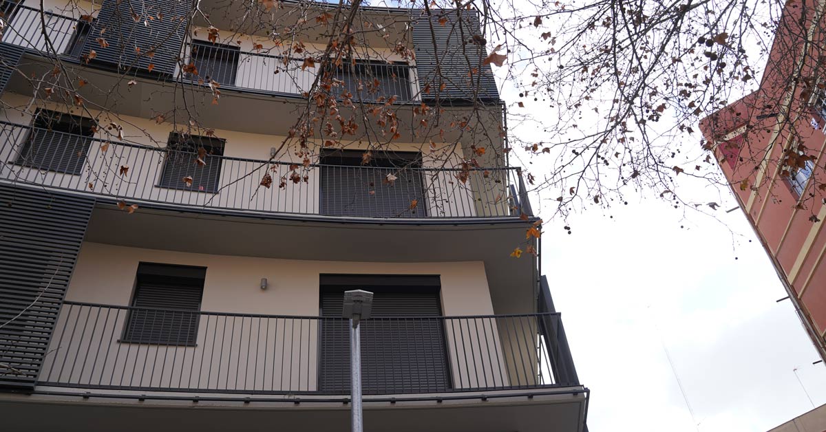Fermetures en aluminium, vitrages et travaux de façade pour un projet de 46 logements sur l’avenue Montserrat à Barcelone.