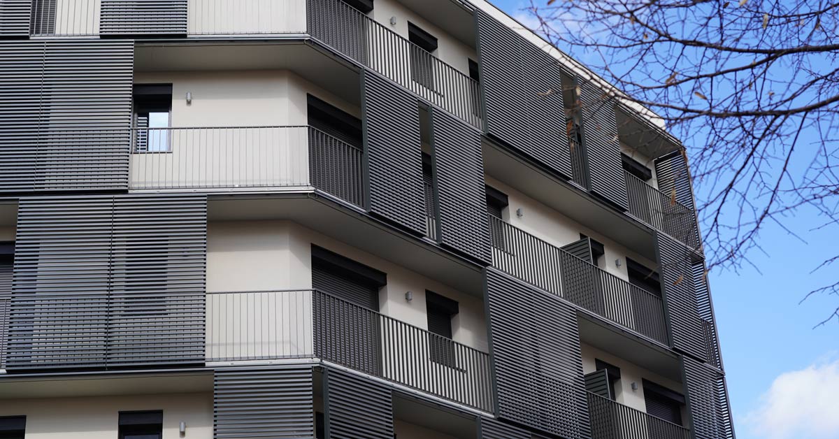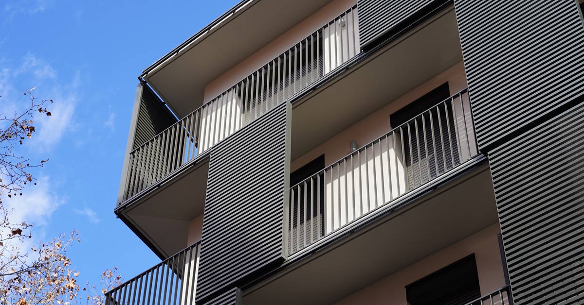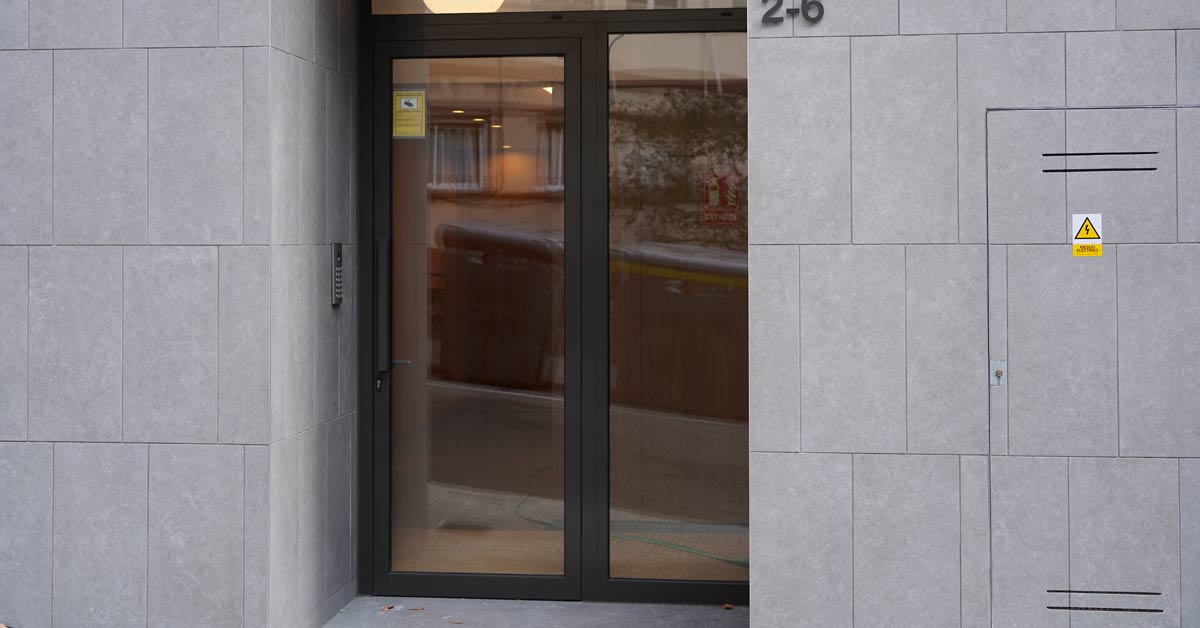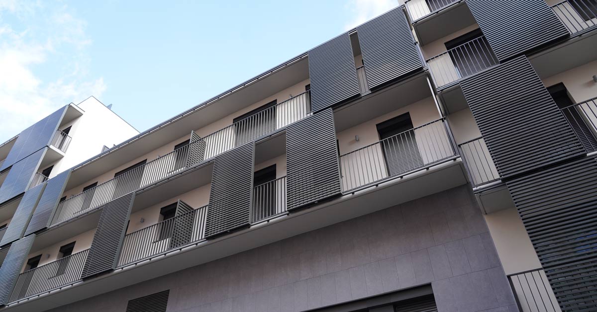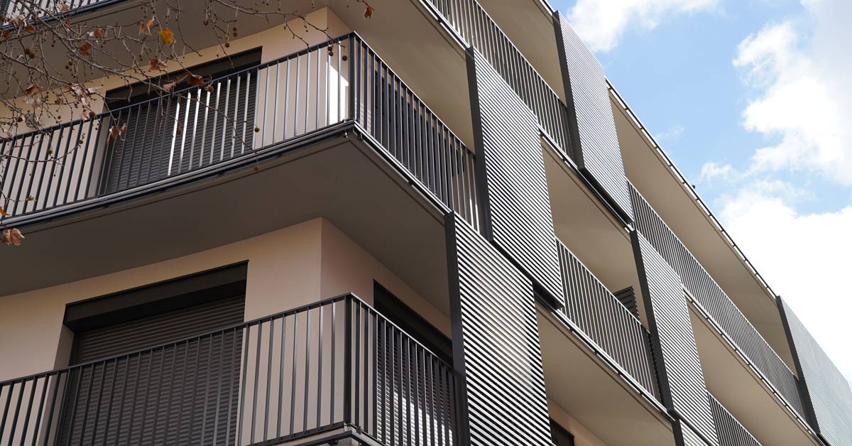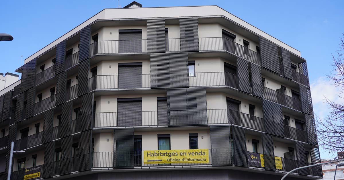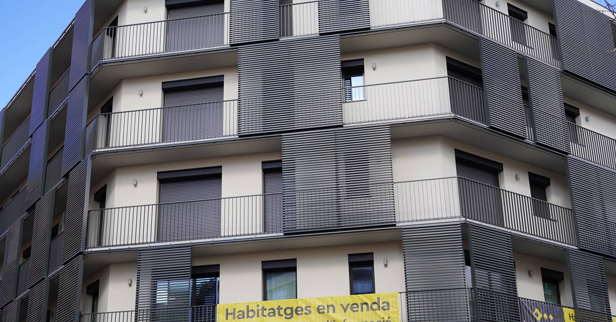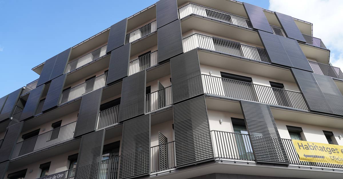 Fermetures en aluminium, vitrages et travaux de façade pour un projet de 46 logements sur l’avenue Montserrat à Barcelone.
