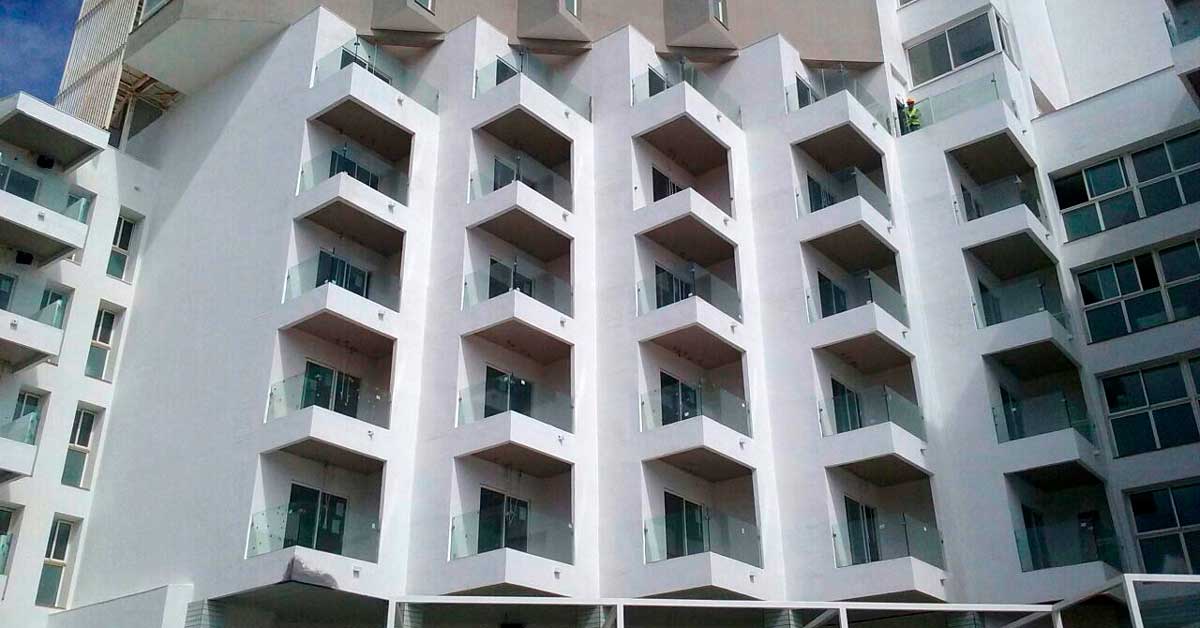 Santa Eulalia del Río (Ibiza). Année d’achèvement : 2015 Surface d’intervention : Fermetures : 280 m² | Rideau escamotable en verre : 60 m²| Rampe en verre : 850 ml
