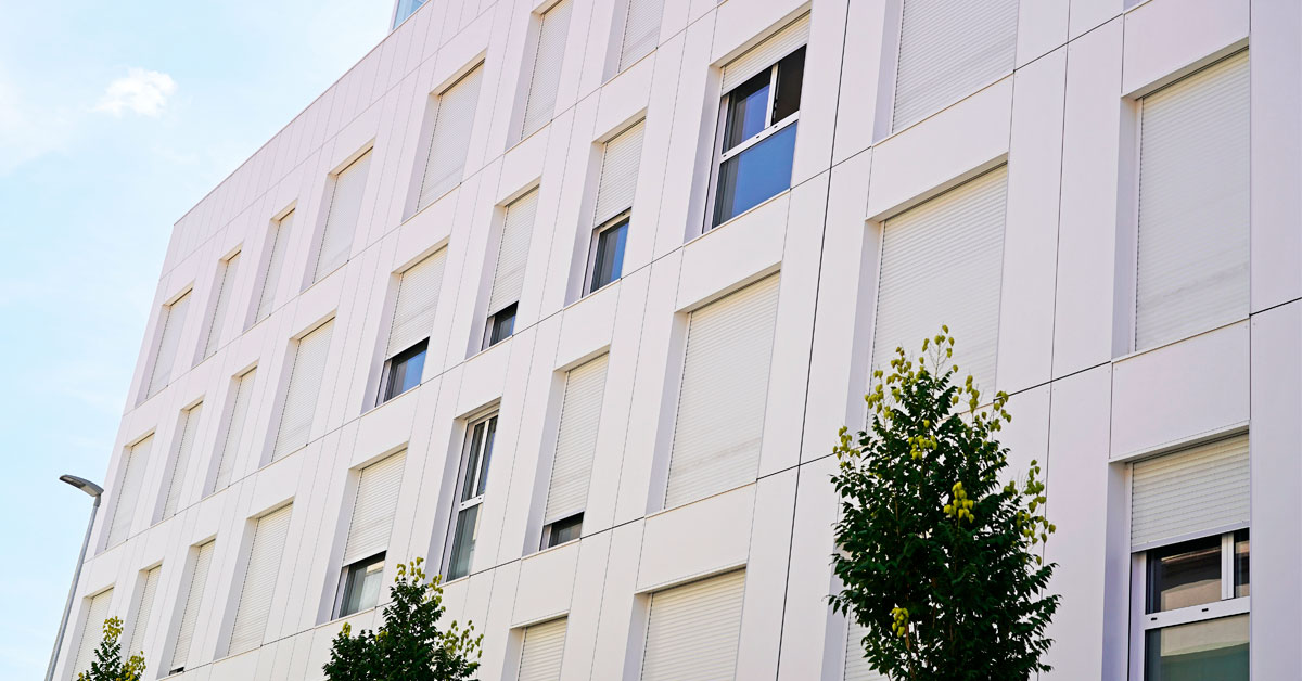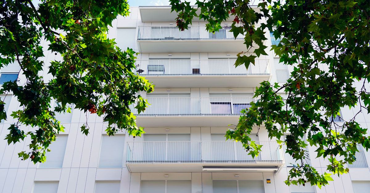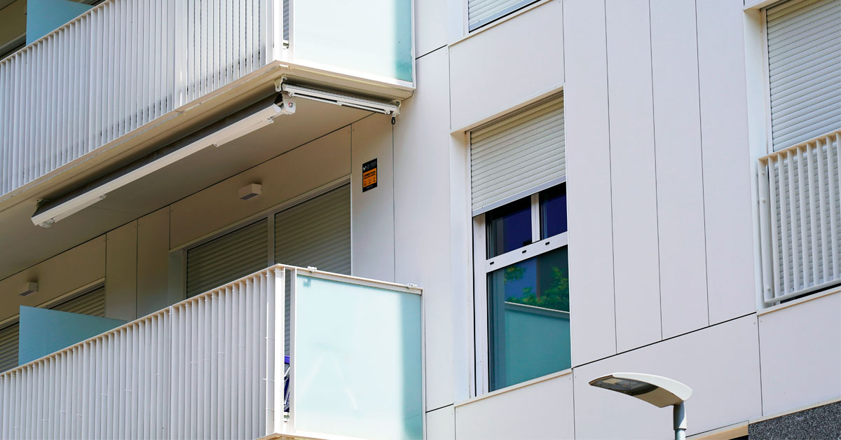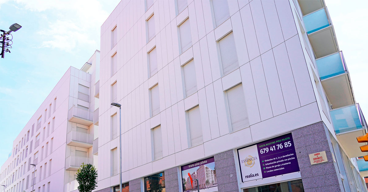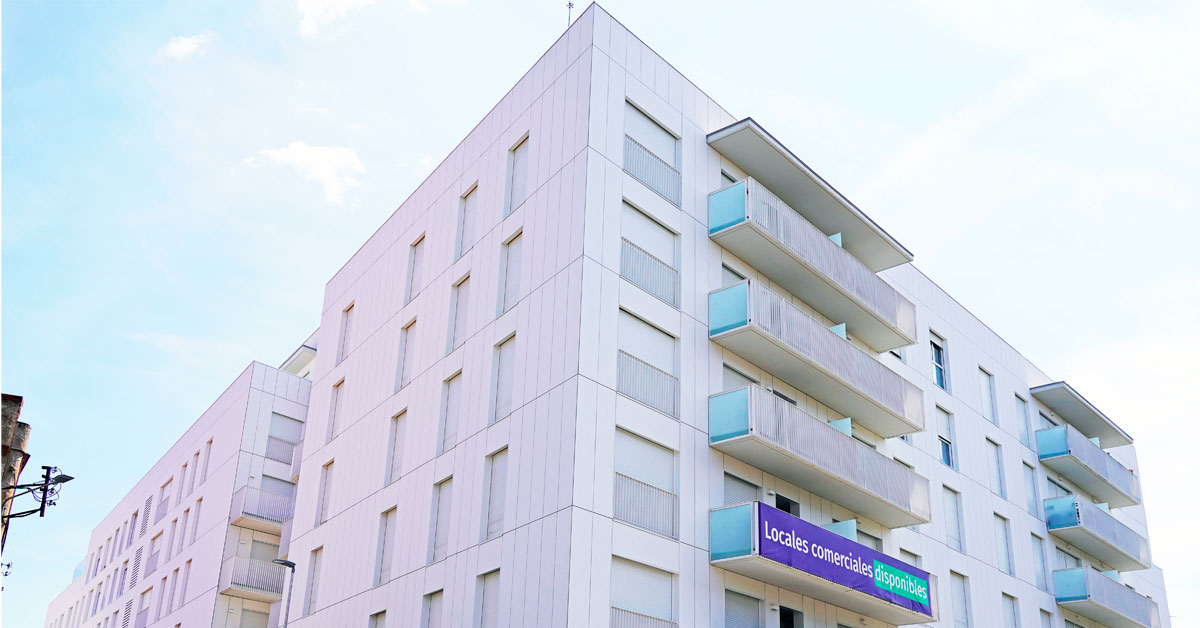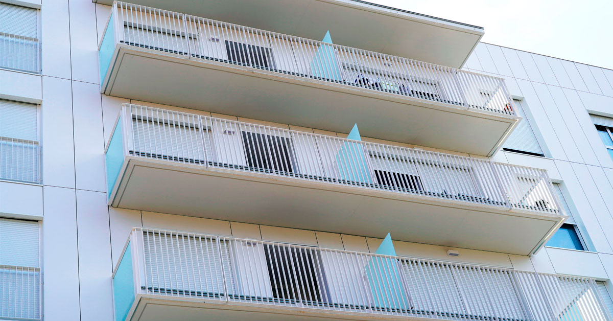 Façades et finitions de façade dans la nouvelle promotion de 73 maisons à Sabadell (Barcelone).