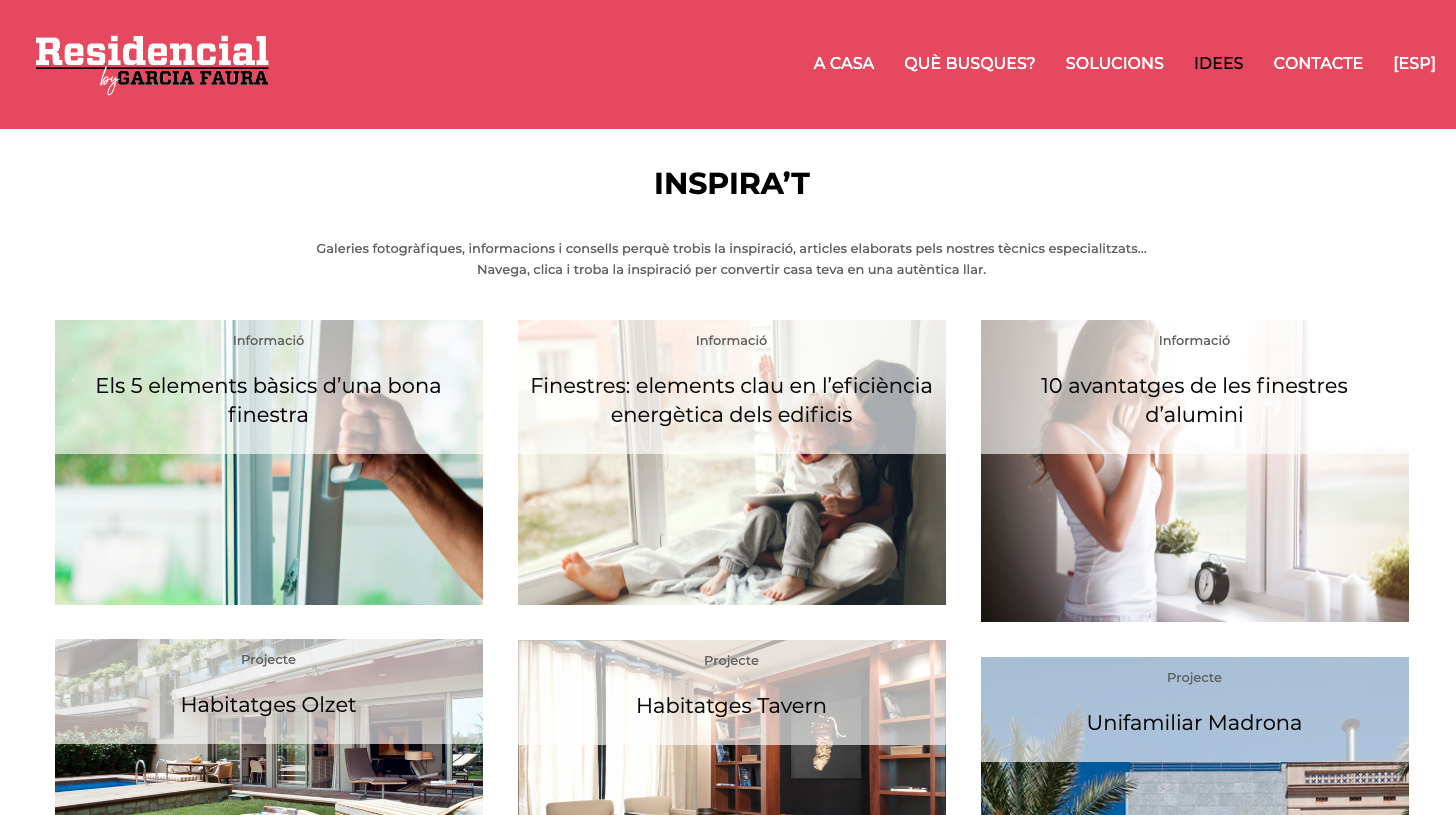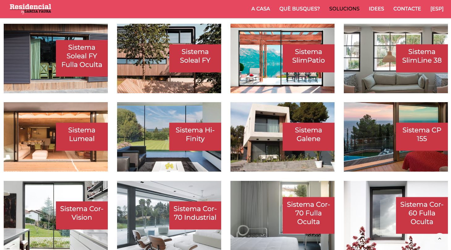 El web ofereix un ample catàleg de sistemes de finestra segons la qualitat que es busqui, una gamma diversa que dona resposta a totes les necessitats de solucions constructives, tipus d’obertura i acabats, sigui fabricades en alumini o en ferro, i amb exemples de projectes reals que serveixin d’inspiració.