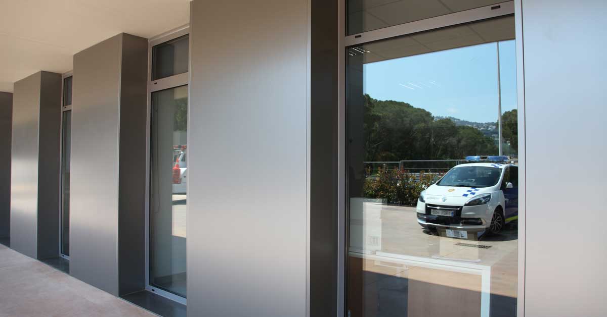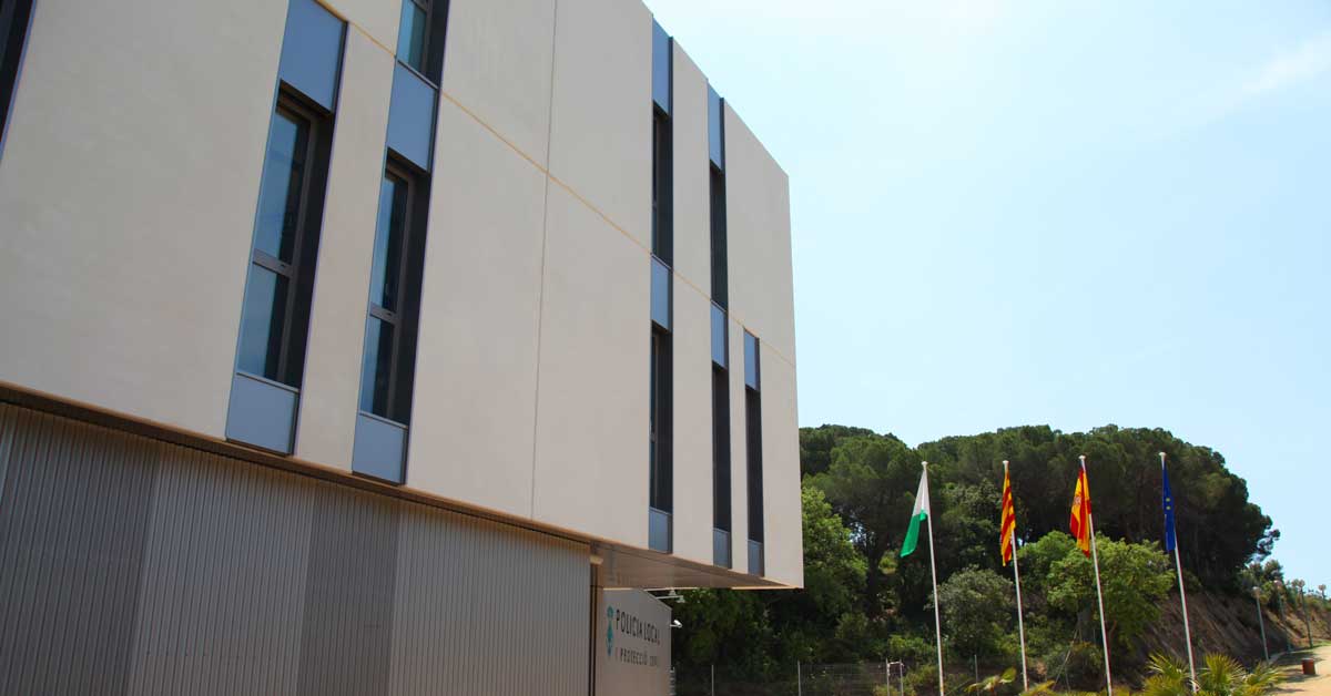 Nou edifici de la Policia Municipal i el Servei de Protecció Civil de l’Ajuntament de Lloret de Mar, estructurat com a centre de treball per a 140 persones i amb les dependències i serveis propis d’un equipament de gestió policial. El nou edifici, de gran singularitat estètica, ha permès el trasllat del servei de les seves antigues dependències al centre del poble. La forma triangular de l’edifici sorgeix de forma natural com a resposta a la trobada entre la franja dels aparcaments, la pineda i la façana principal que apunta en direcció de la carretera. La visió de l’edifici des d’aquesta façana principal simbolitza la proa d’un vaixell.