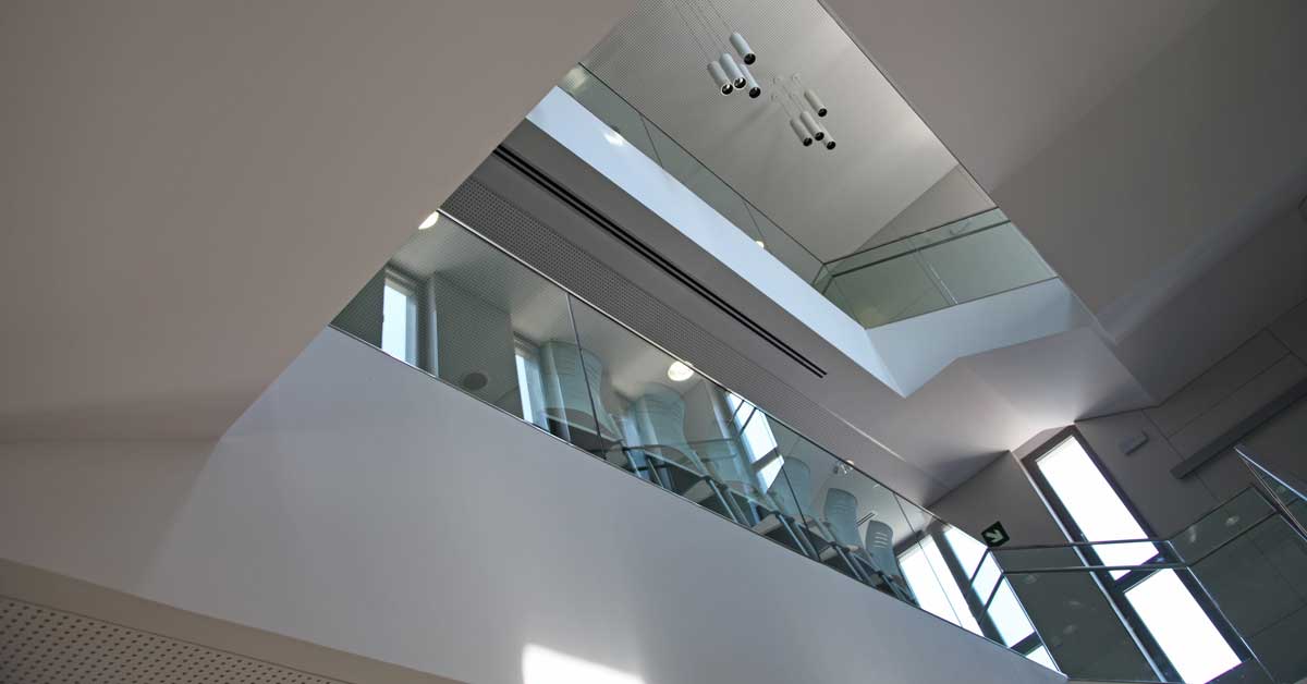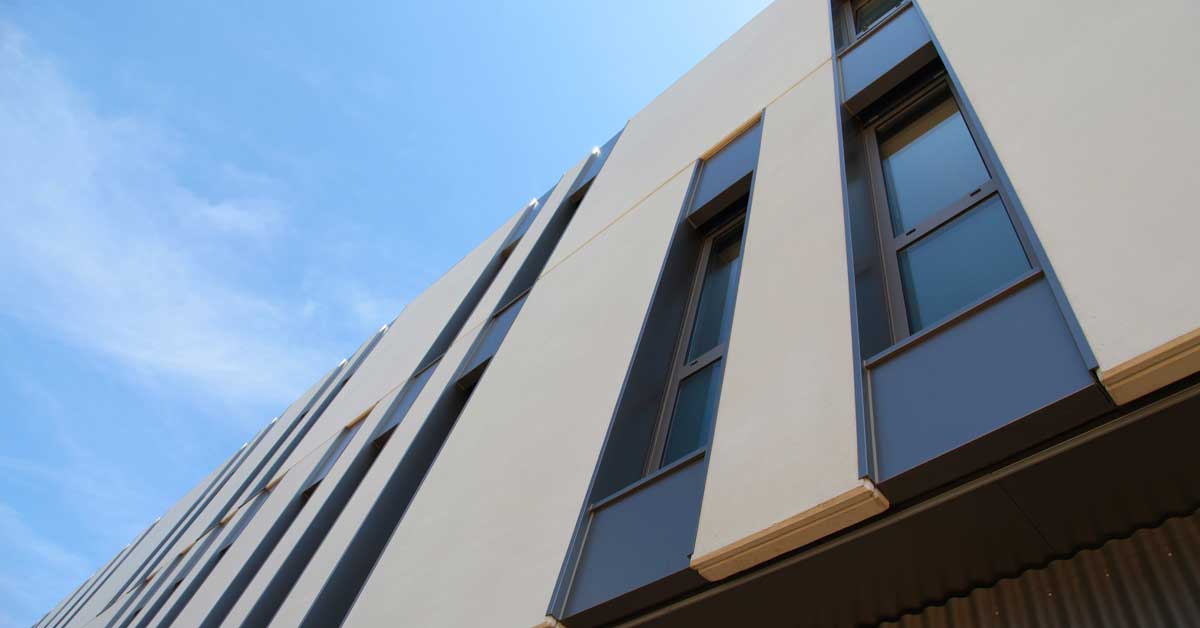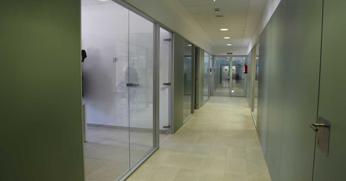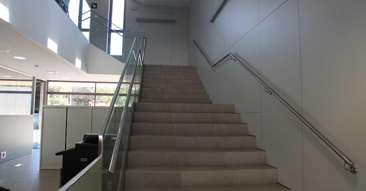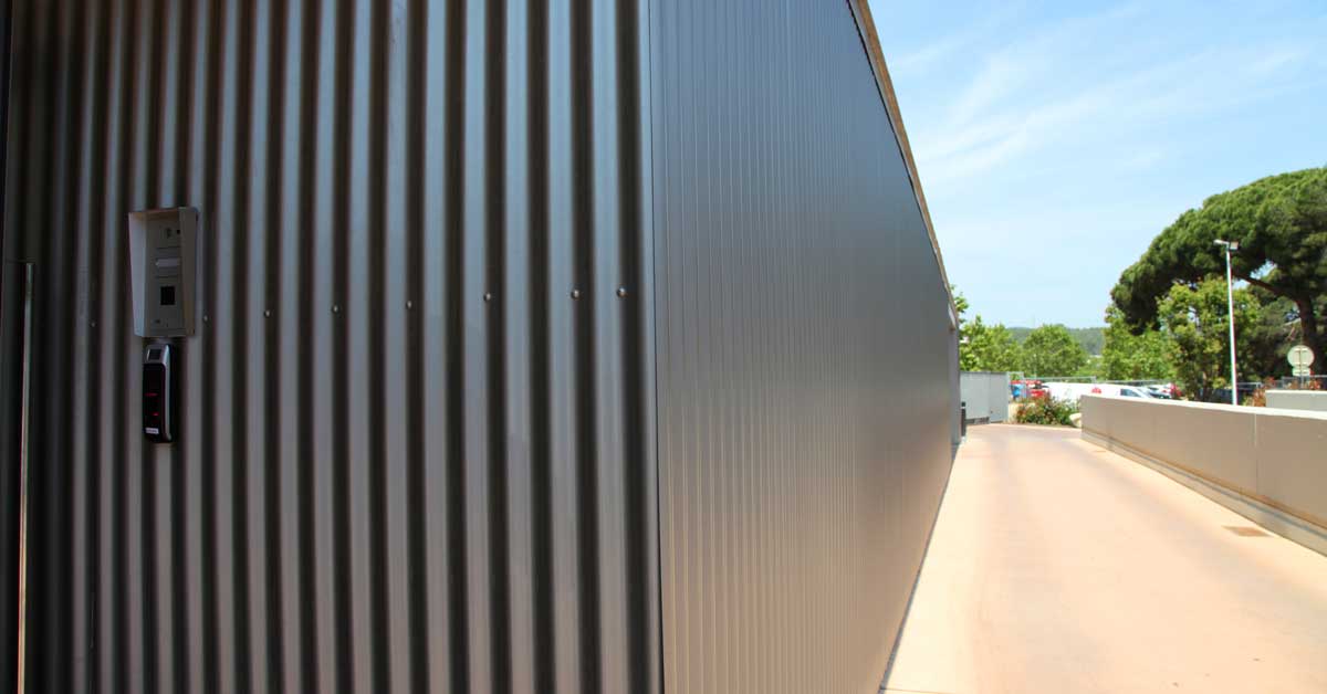En aquest projecte s’han fabricat i instal·lat tancaments de predomini vertical, de franges estretes ajustades al revestiment de pedra de la façana. Presenten una estètica de visió minimalista degut a la secció estreta de la perfileria, que és de fulla oculta. La forma triangular de l’edifici, a més, ha obligat a un complex folrat de composite en tot el sostre exterior de la façana principal.
