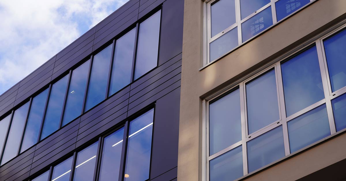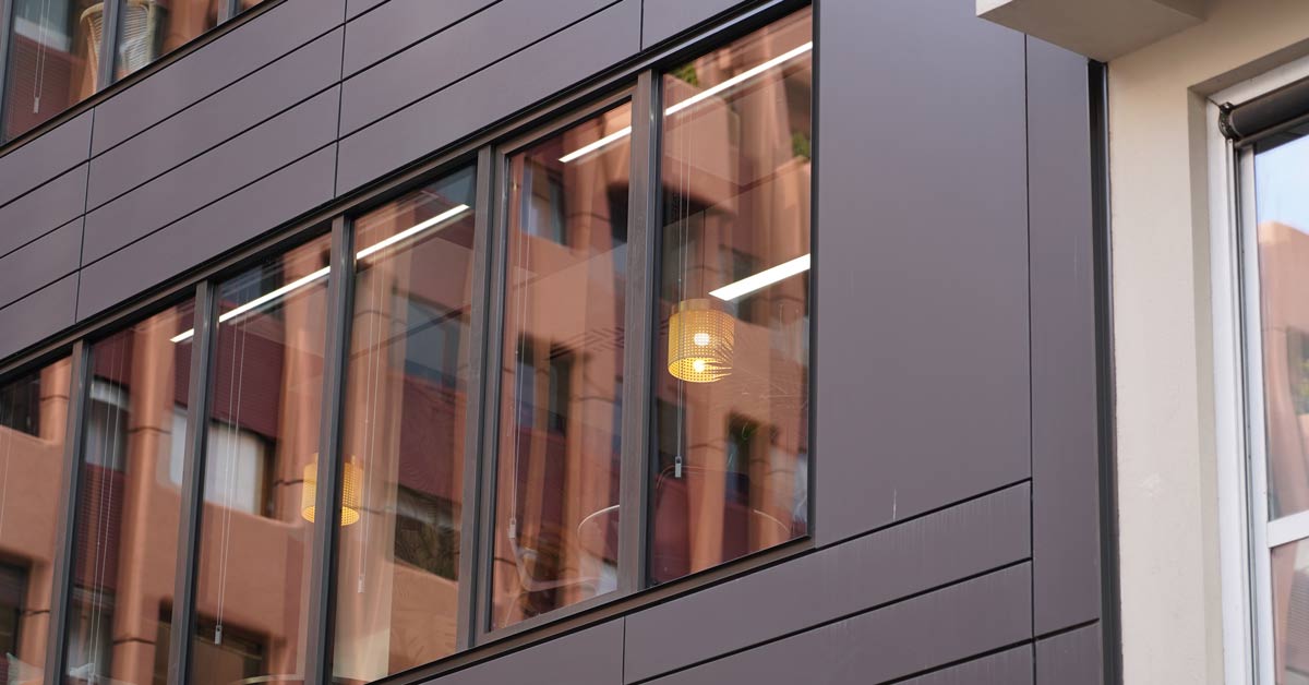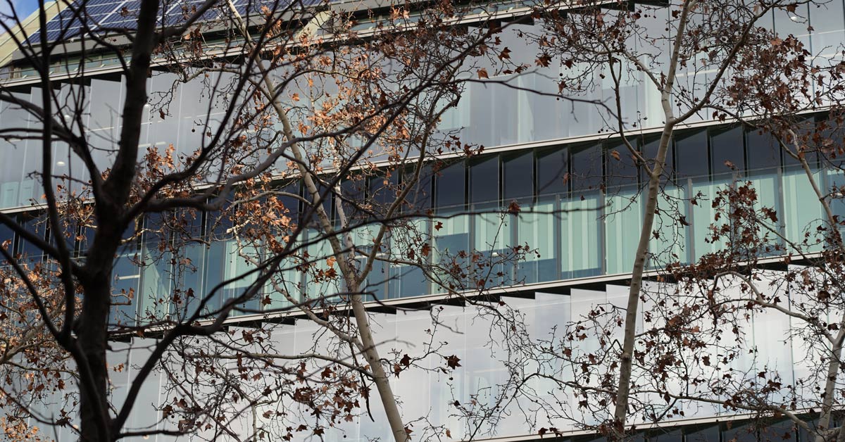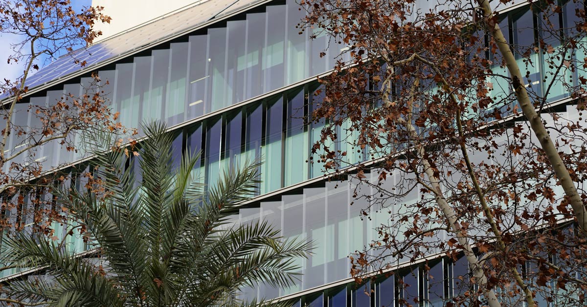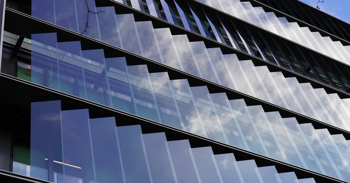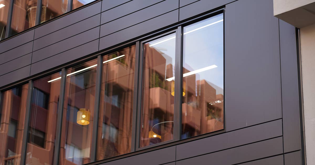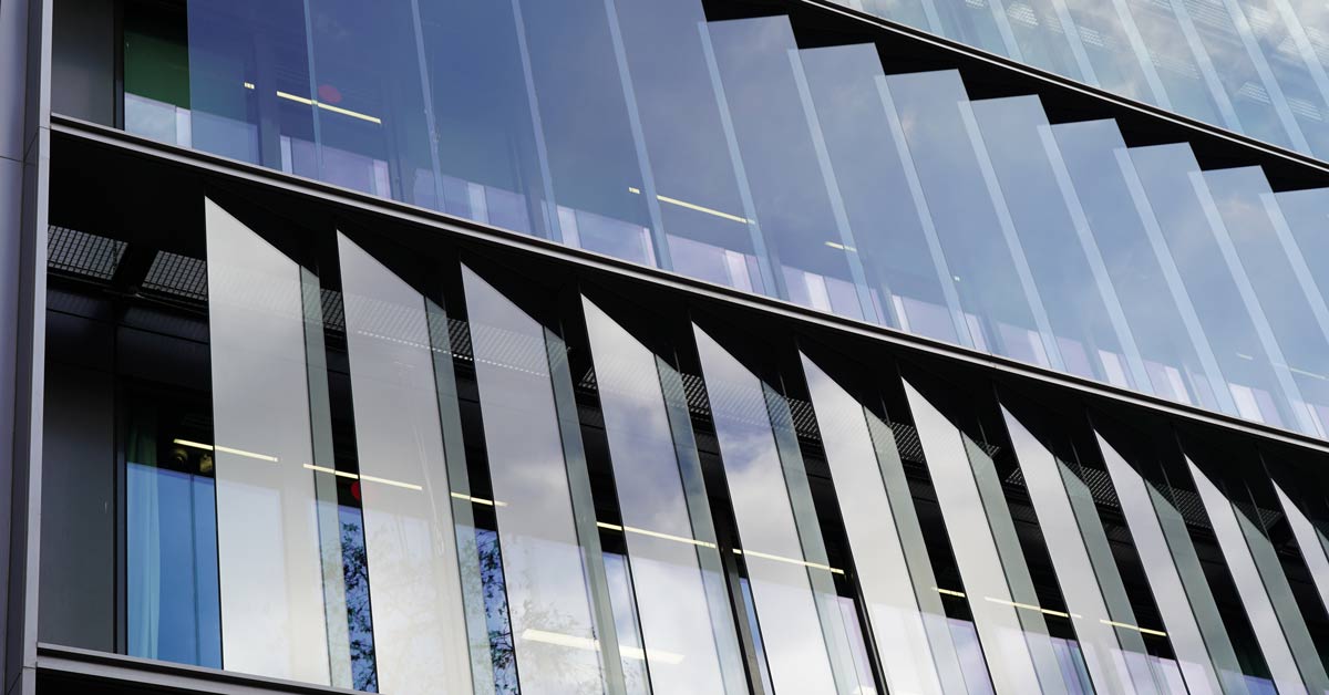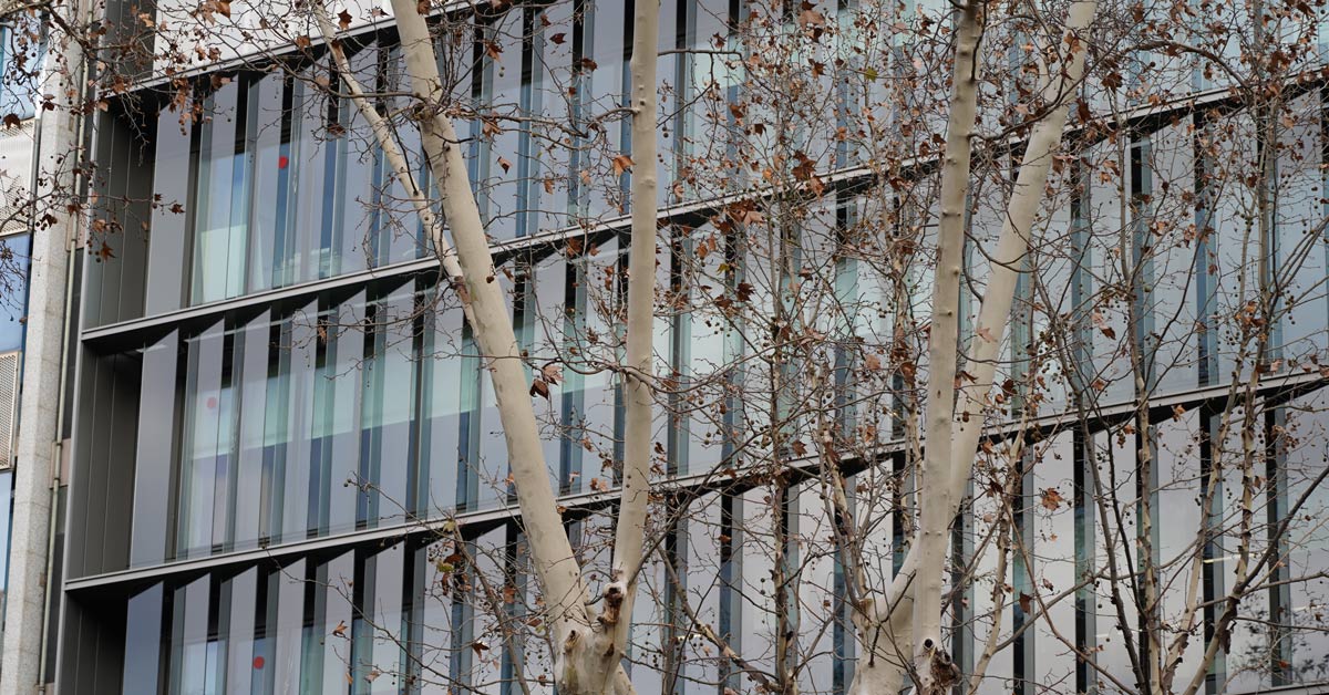 Desenvolupament de façana, doble pell, tancaments d’alumini i vidre fa per a la rehabilitació d’aquest edifici d’oficines a Barcelona.
