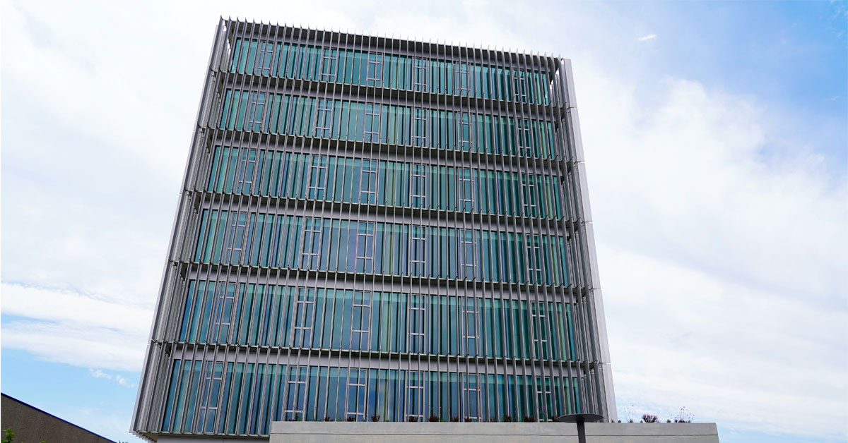 Desenvolupament de façana d’aquest edifici corporatiu a l’Hospitalet.