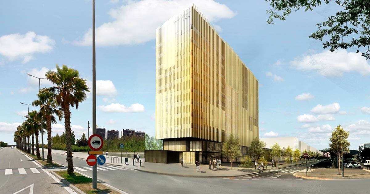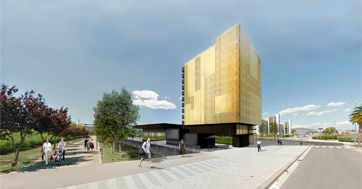 Desenvolupament, fabricació i instal·lació de façana de lames verticals per a hotel de nova construcció a Viladecans (Barcelona).