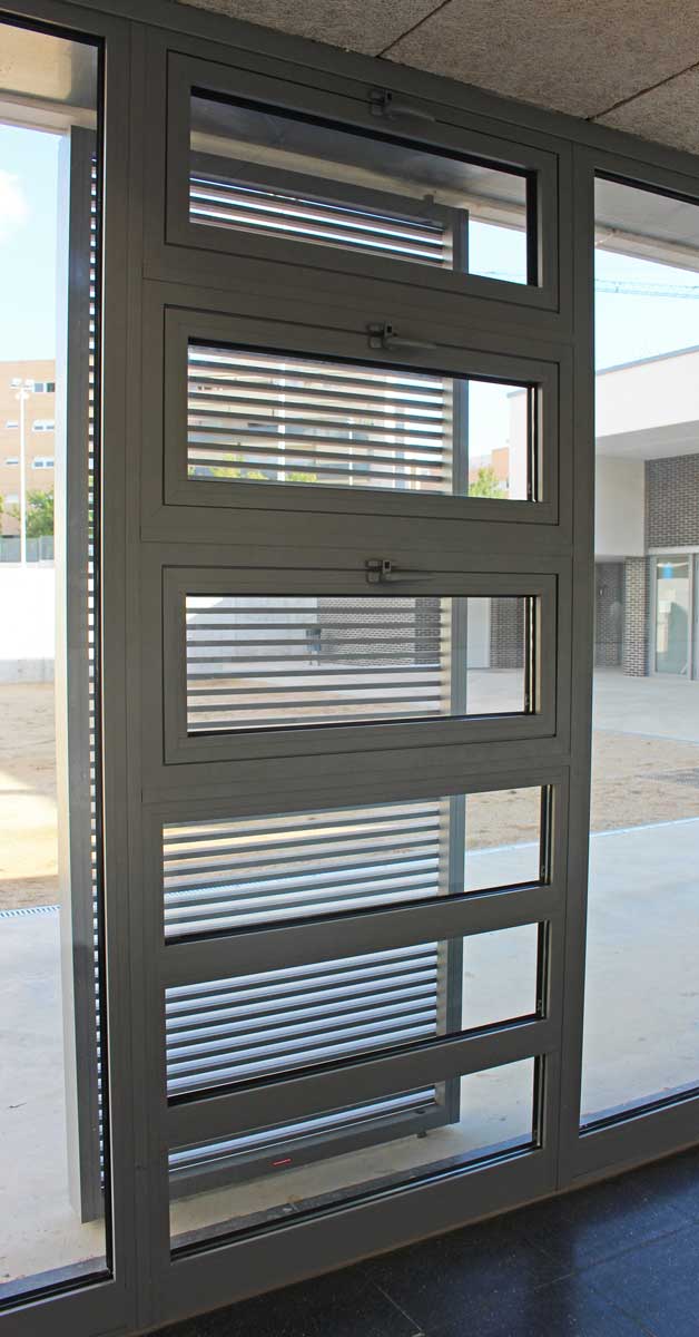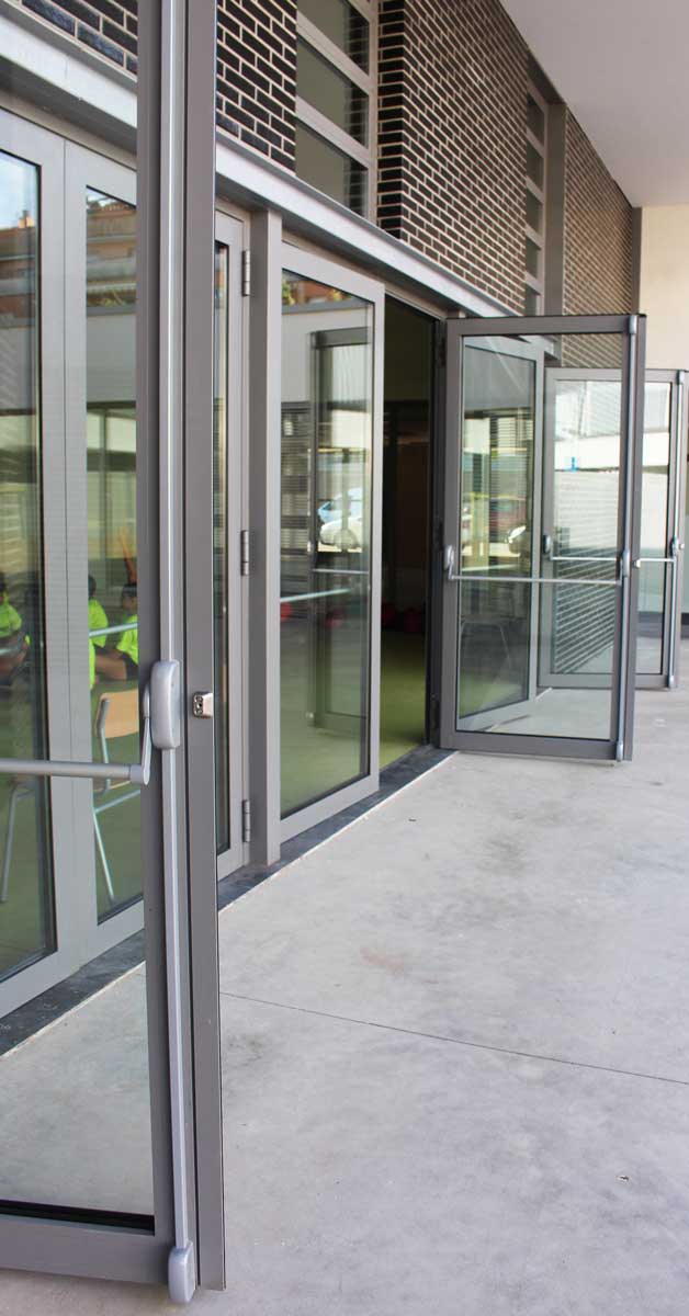 GARCIA FAURA hi ha instal·lat 870 m2 de tancaments, entre portes d’accessos i interiors, finestres practicables i corredisses, totes elles amb trencament de pont tèrmic. També hi ha col·locat finestres amb un sistema de ventilació d’altes prestacions que ofereixen uns excel·lents resultats d’estanquitat de forma que es garanteix la seguretat en l’ús per part de l’alumnat. Un dels conjunts de tancaments presenta unes dimensionstotals de 33 metres de longitud.