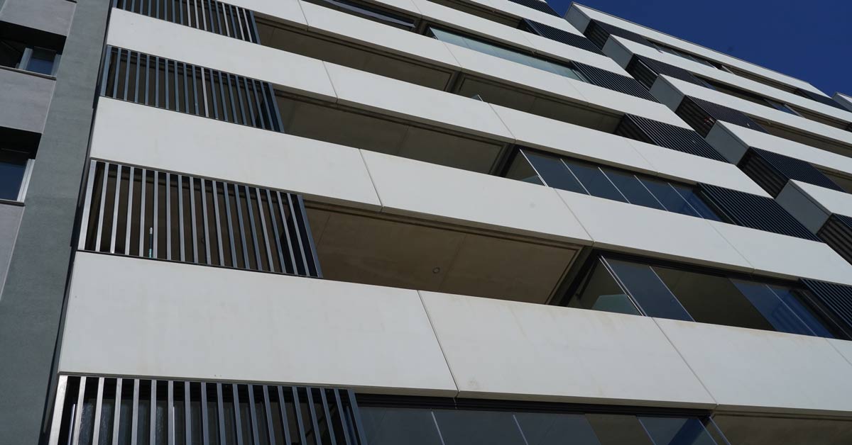 Tancaments d’alumini i vidrieria en promoció residencial al sector La Catalana, a Sant Adrià de Besòs.