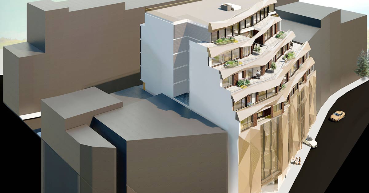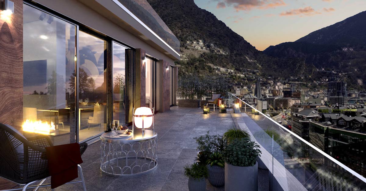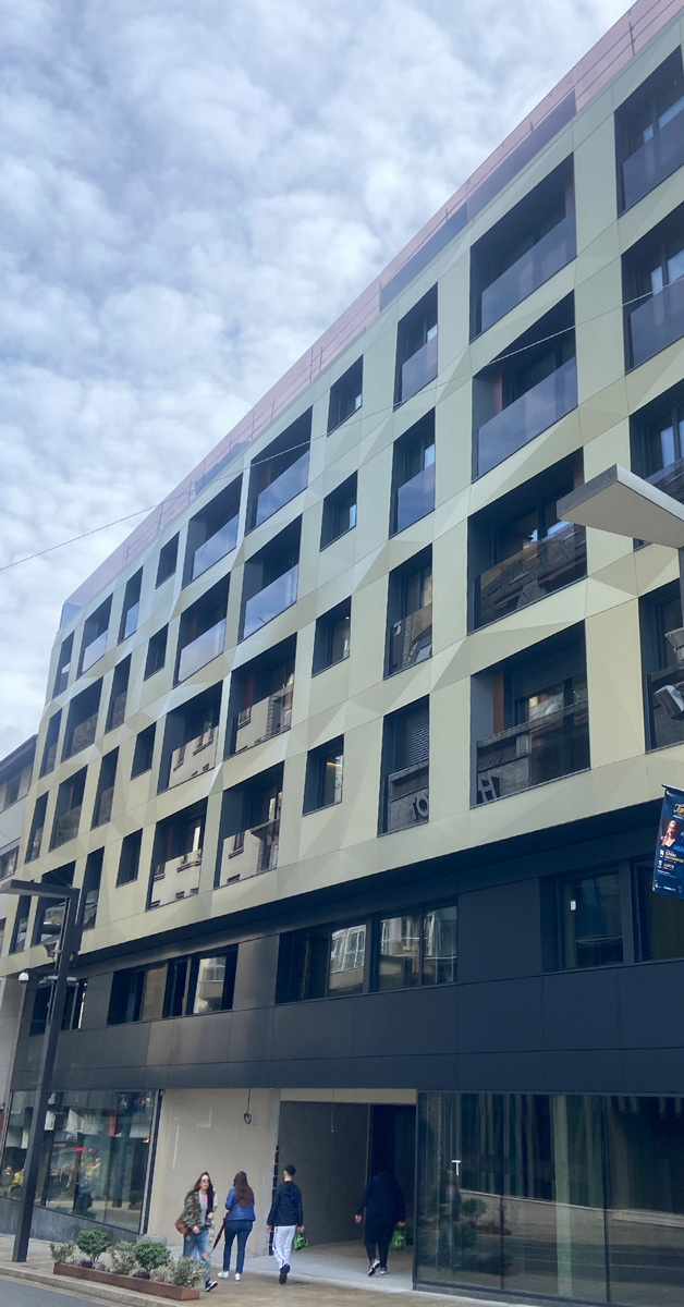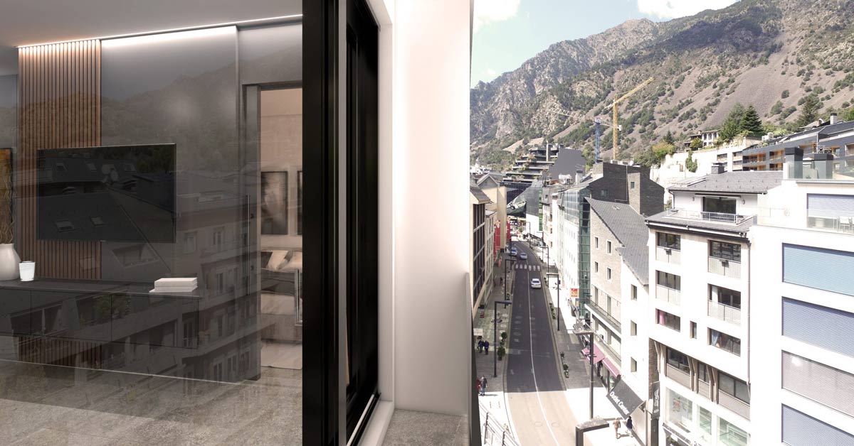 Tancaments d’alumini i vidre per a promoció d’habitatges i locals comercials a l’avinguda Meritxell d’Andorra la Vella.