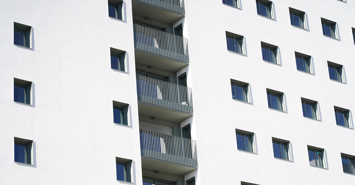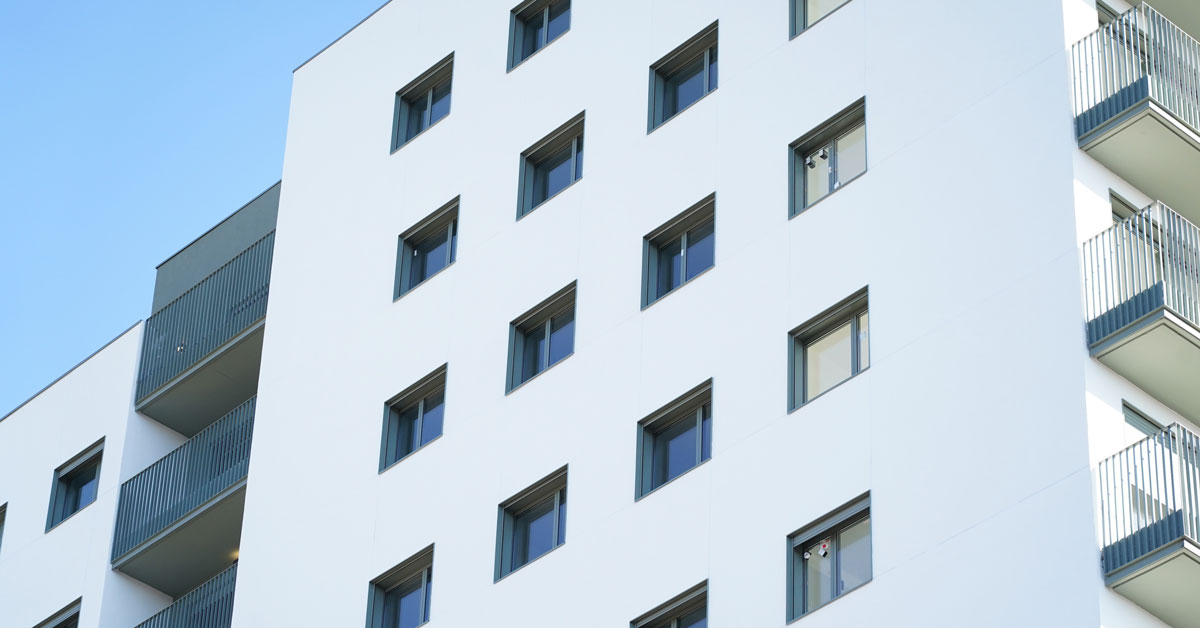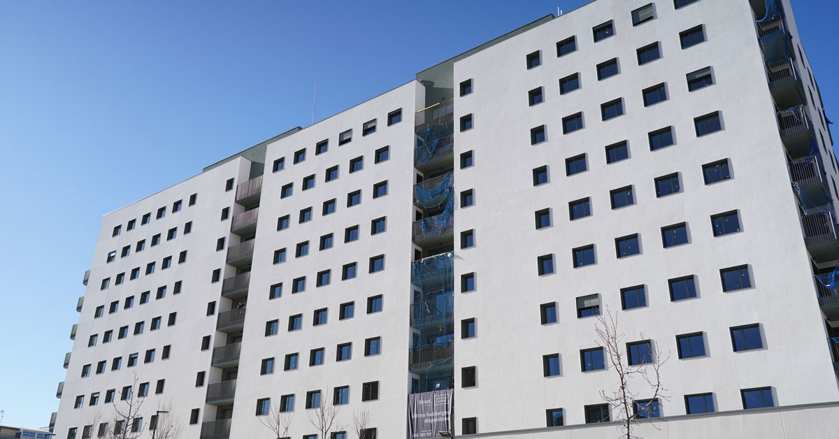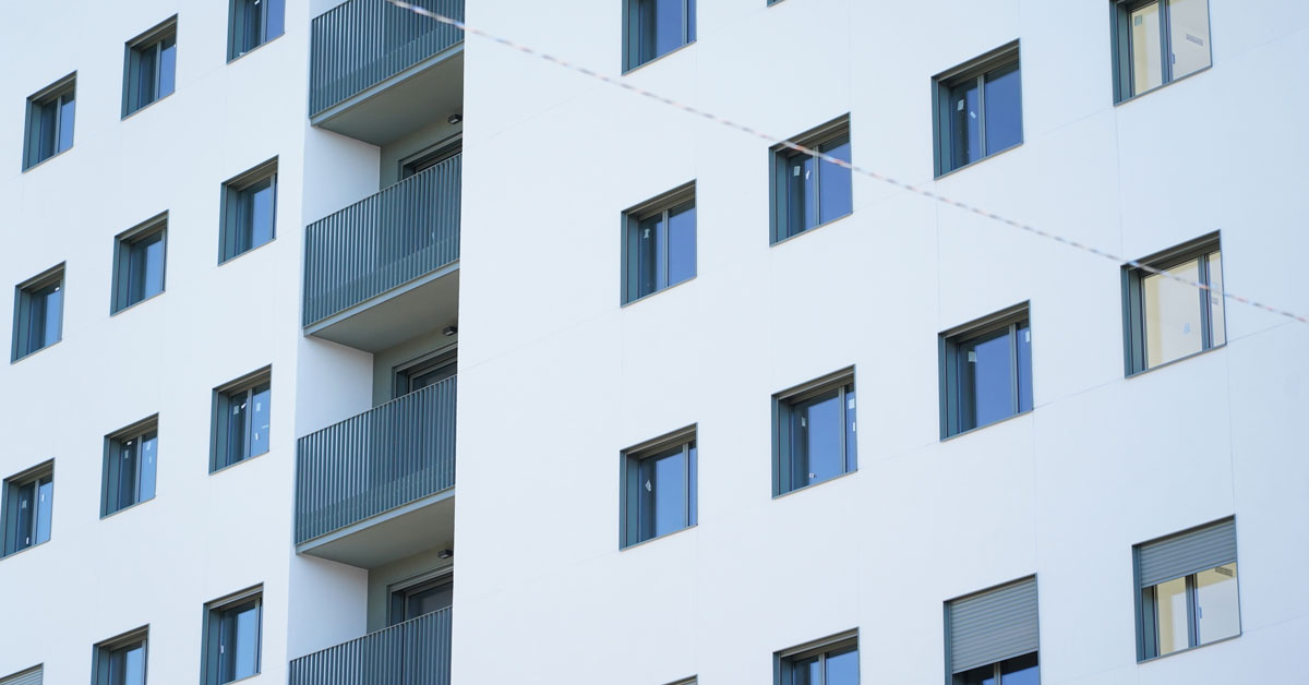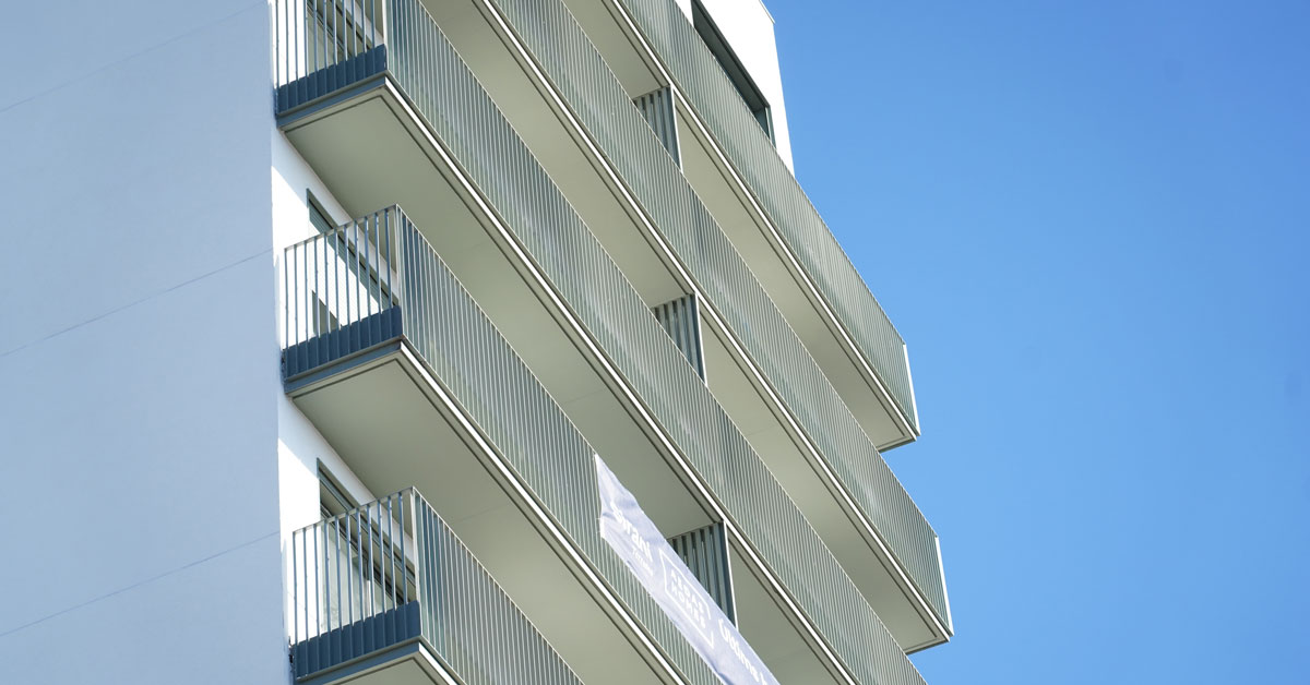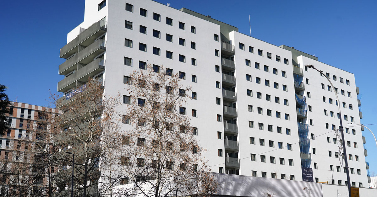 Fabricació i instal·lació de 950 tancaments d’alumini i vidre, d’obertures corredissa i practicable de fulla oculta, amb trencament de pont tèrmic, per a edifici de 87 habitatges de nova promoció a Terrassa.