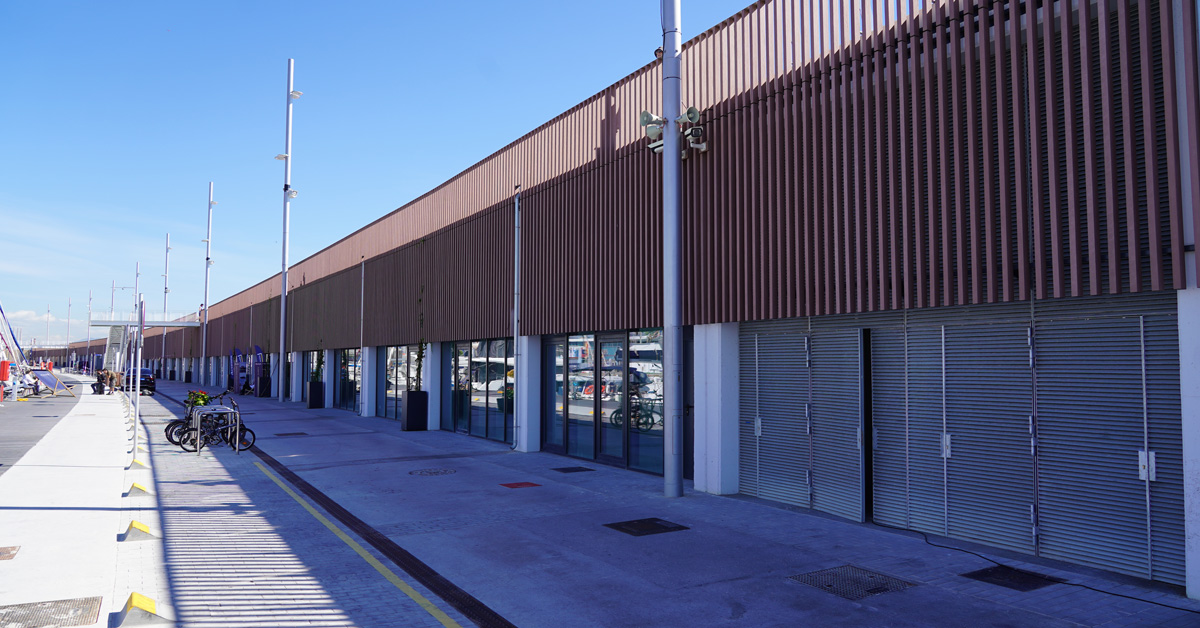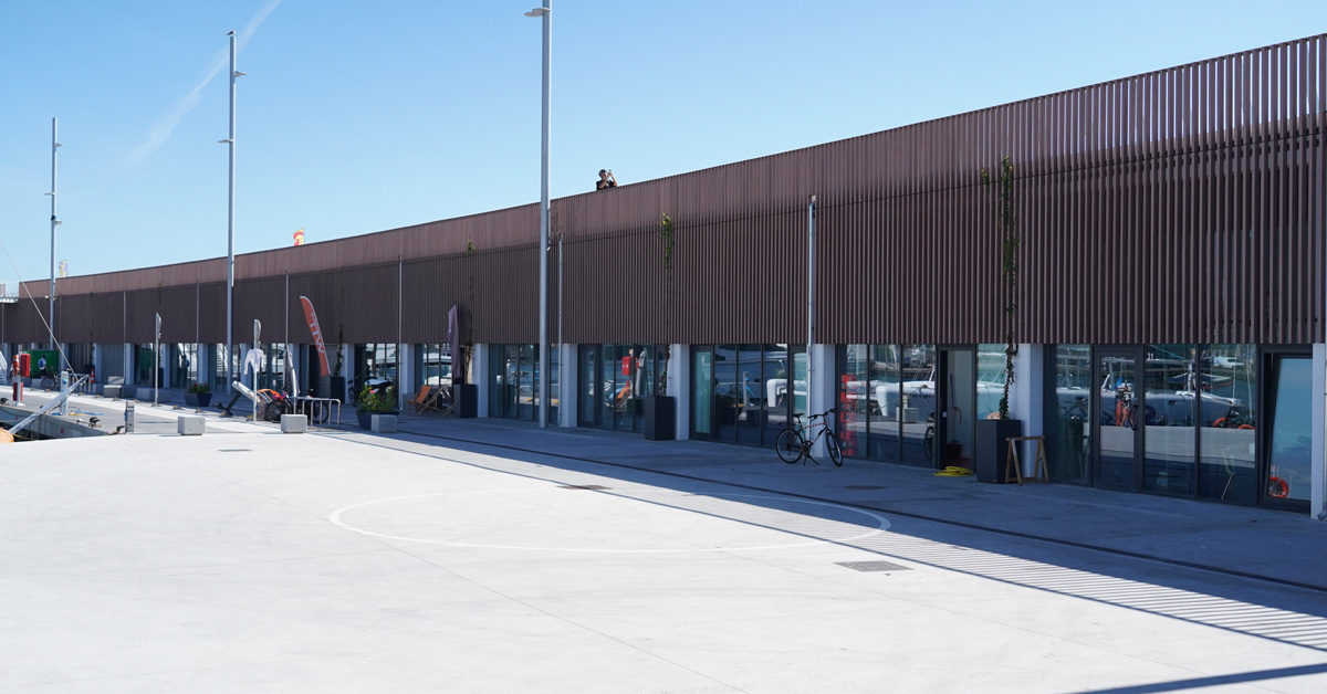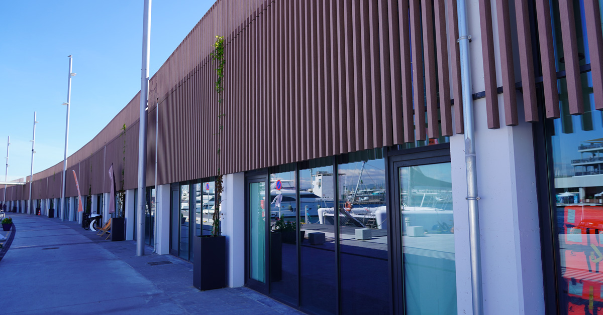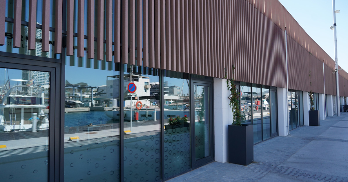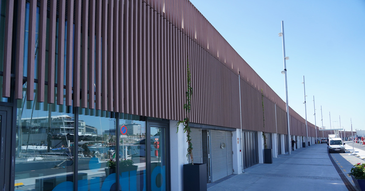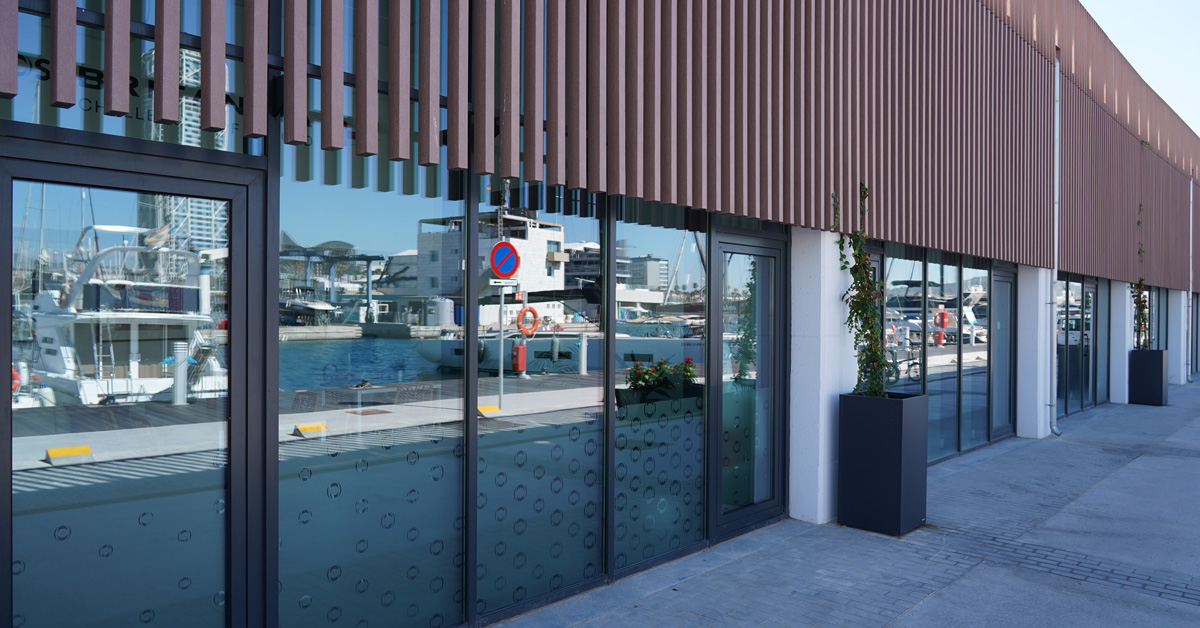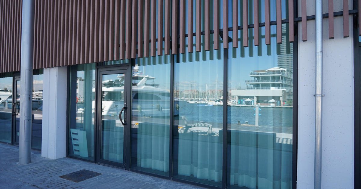 Desenvolupament, fabricació i instal·lació de murs cortina, tancaments i gelosies per a la rehabilitació dels locals comercials i pallols del dic de recer del Port Olímpic de Barcelona.