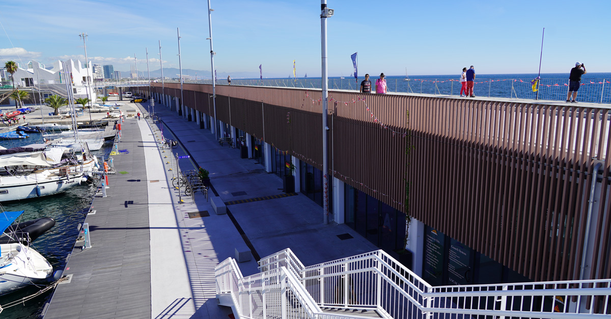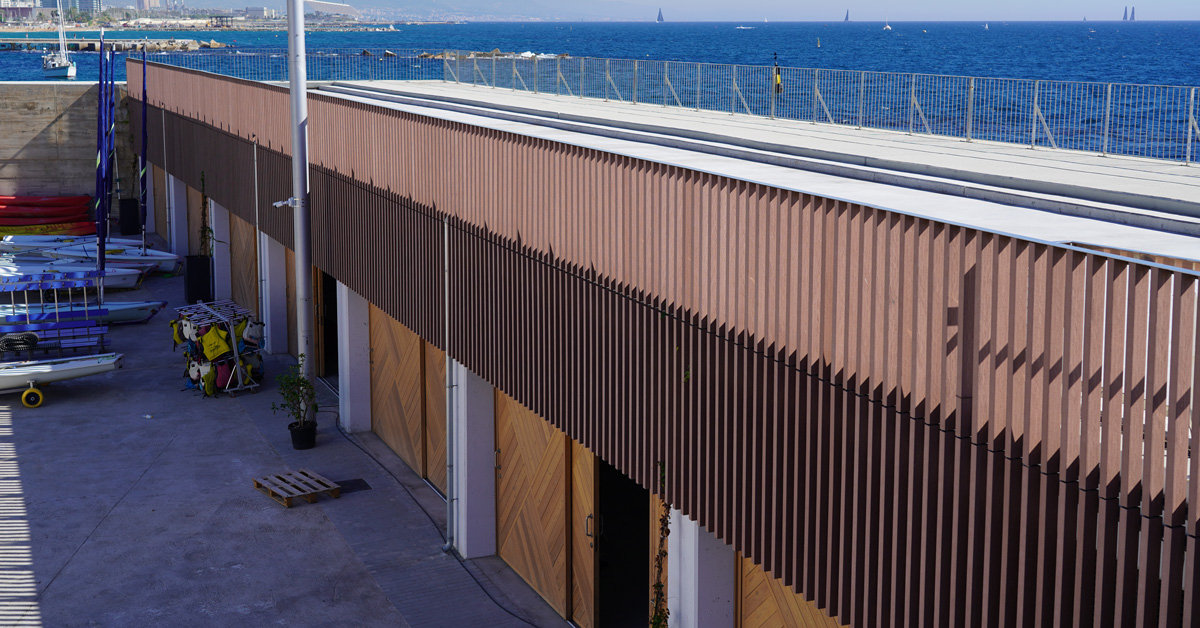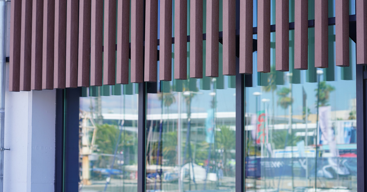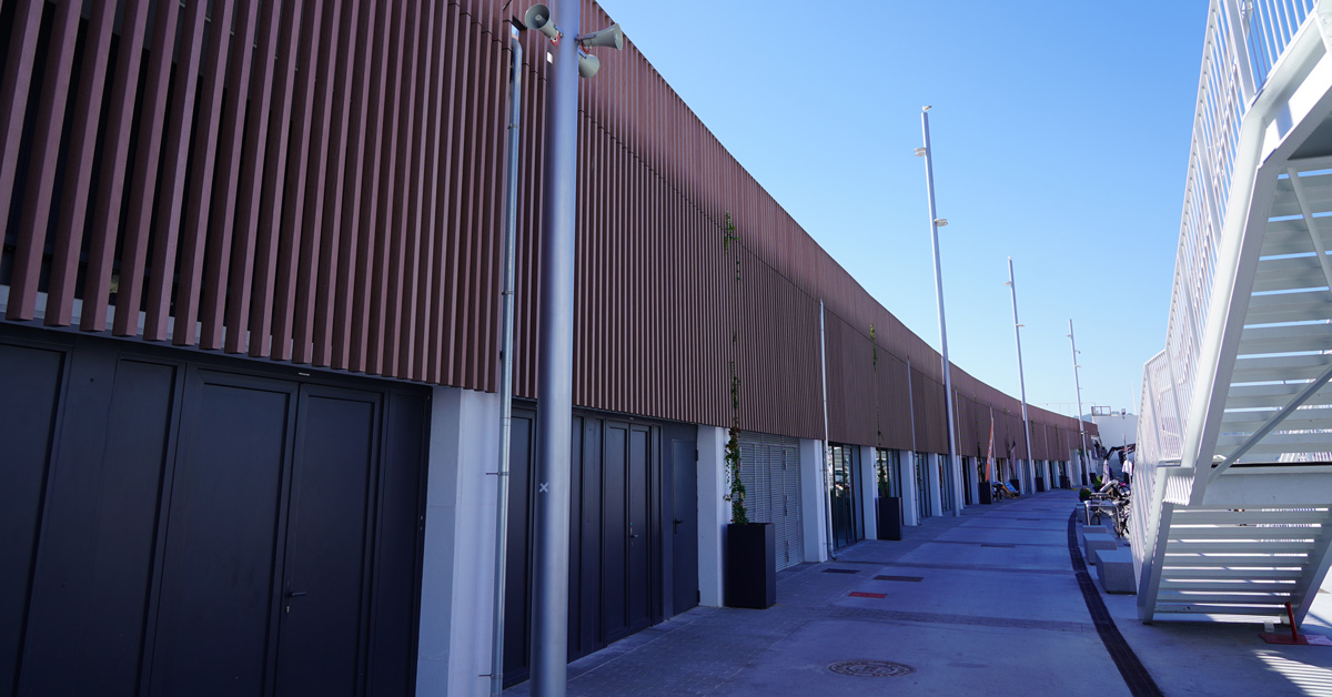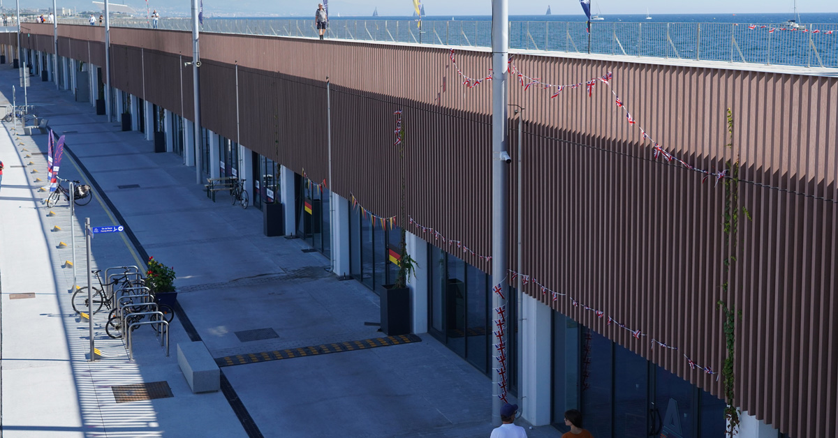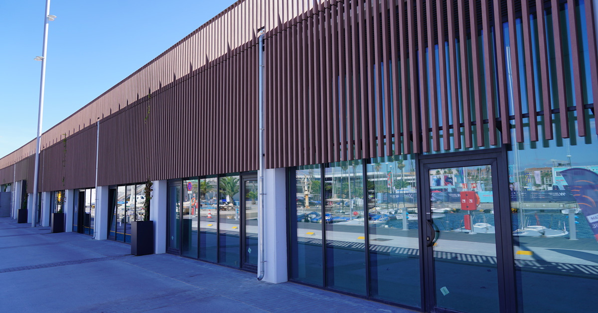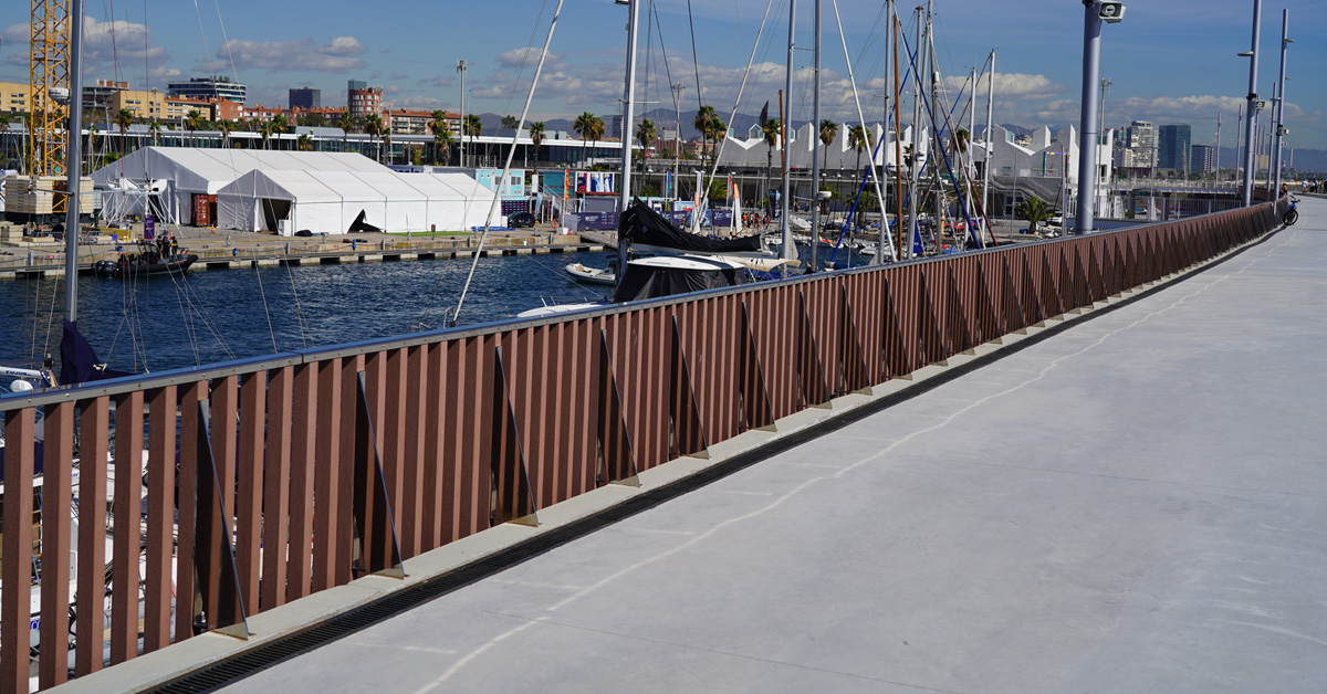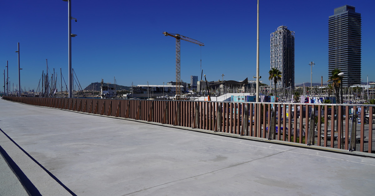 Desenvolupament, fabricació i instal·lació de murs cortina, tancaments i gelosies per a la rehabilitació dels locals comercials i pallols del dic de recer del Port Olímpic de Barcelona.