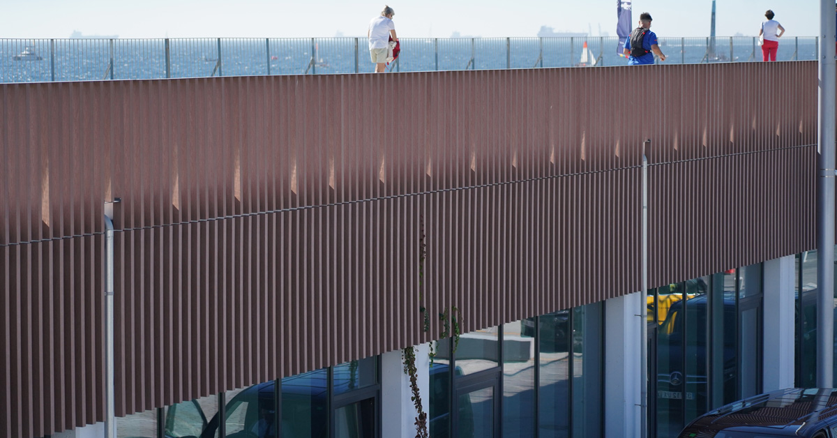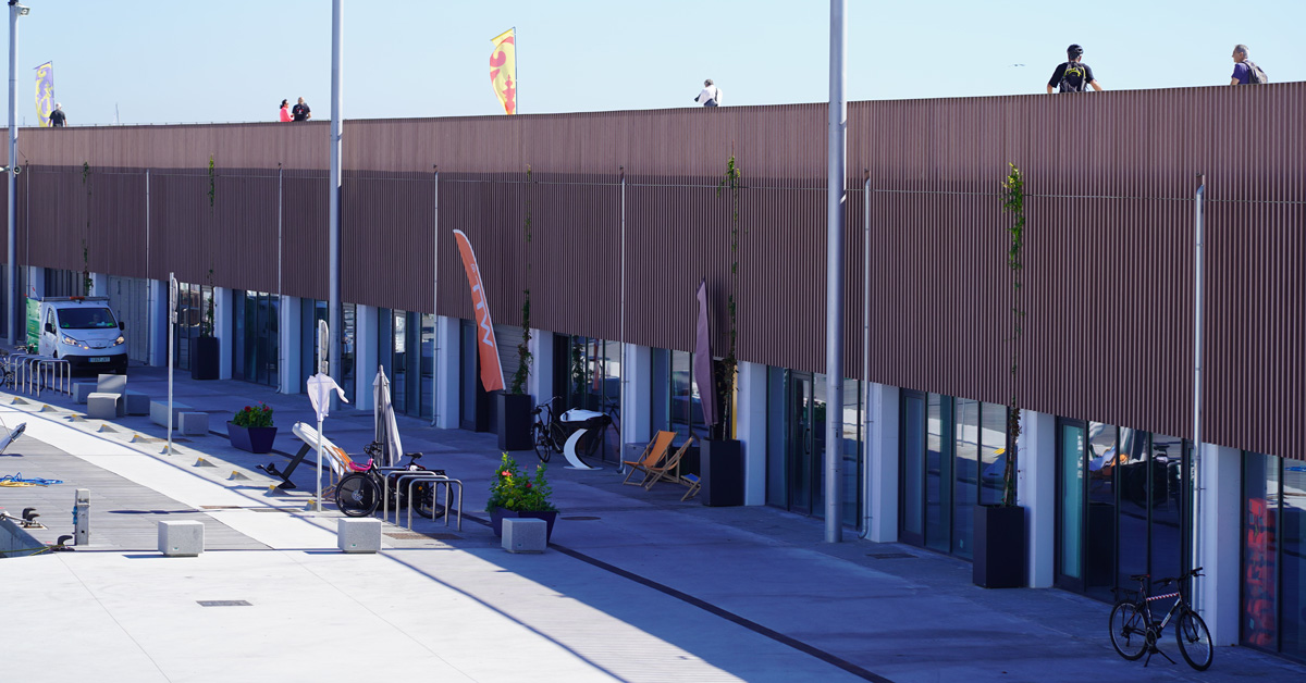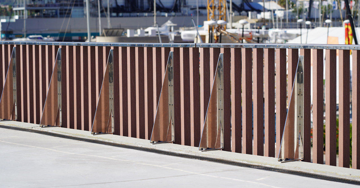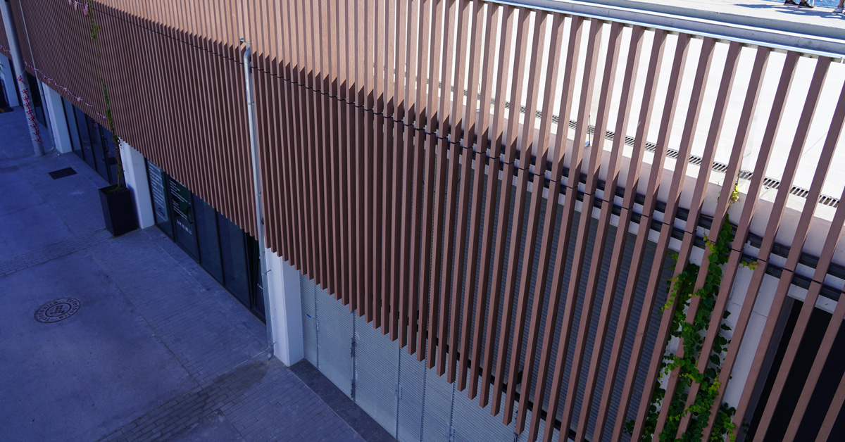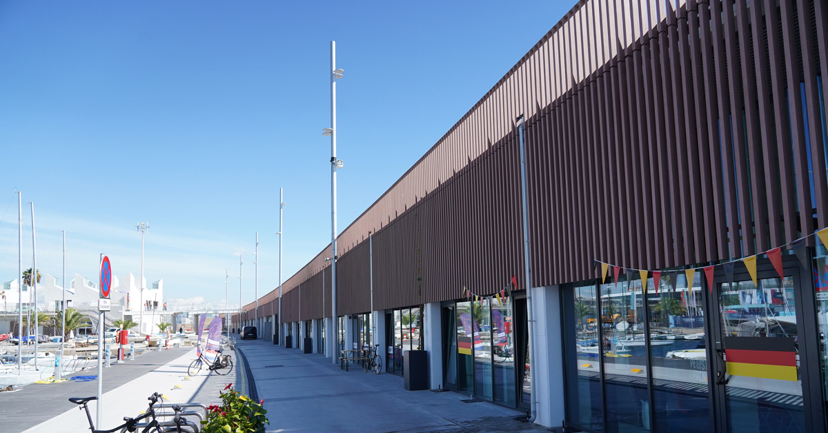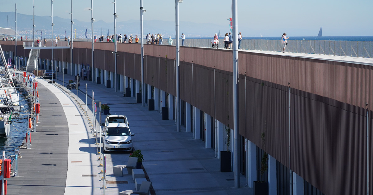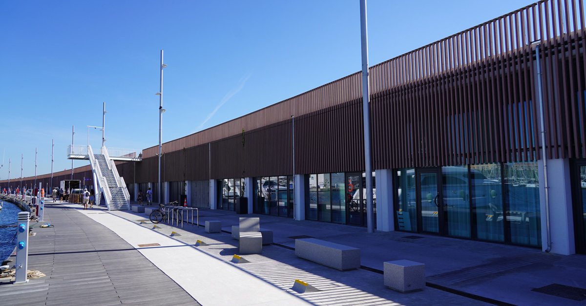 Desenvolupament, fabricació i instal·lació de murs cortina, tancaments i gelosies per a la rehabilitació dels locals comercials i pallols del dic de recer del Port Olímpic de Barcelona.