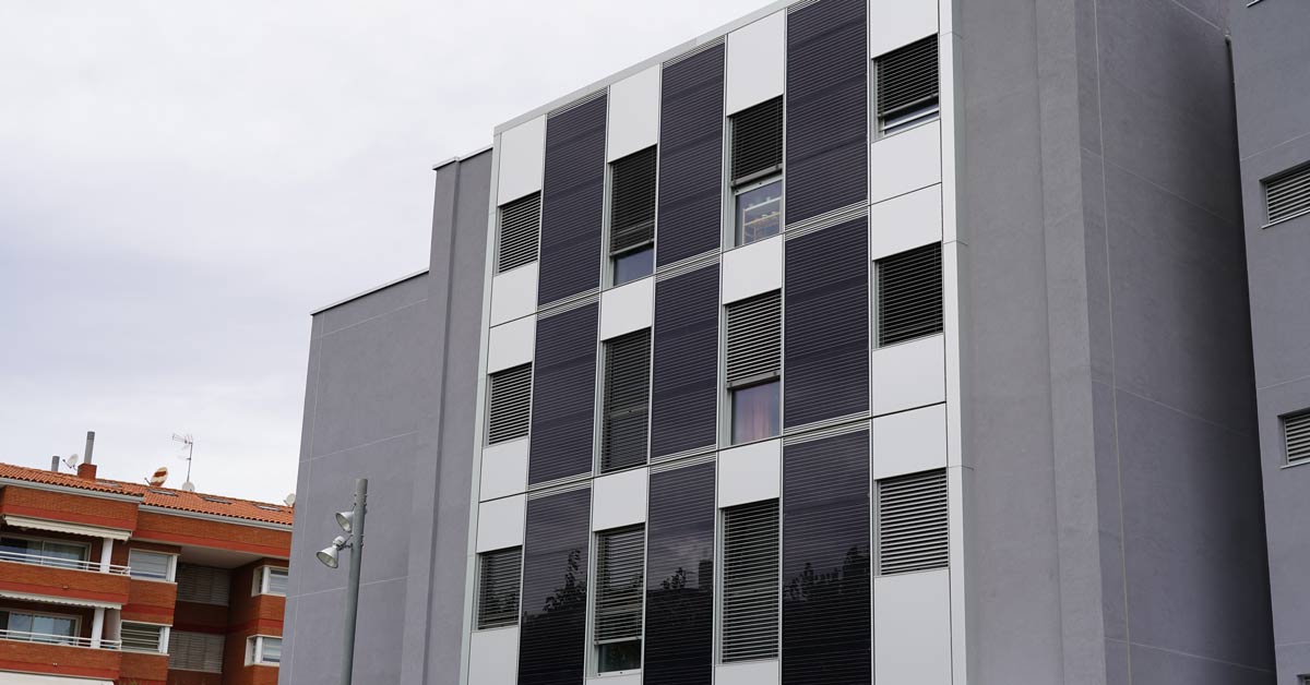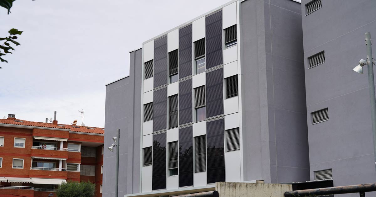Amb l’objectiu de millorar l’habitabilitat i l’eficiència energètica dels habitatges, es va proposar l’aplicació d’una solució innovadora de façana multifuncional prefabricada subvencionada en el marc del programa d’innovació de la Comissió Europea H2020-768735 Plug-n-Harvest. Aquesta solució va consistir en la implementació d’un sistema de façana ADBE (Adaptable/Dynamic Building Envelopes) dissenyat pel projecte Plug-n-Harvest, que integra conceptes de plug and play, arquitectura modular i economia circular.