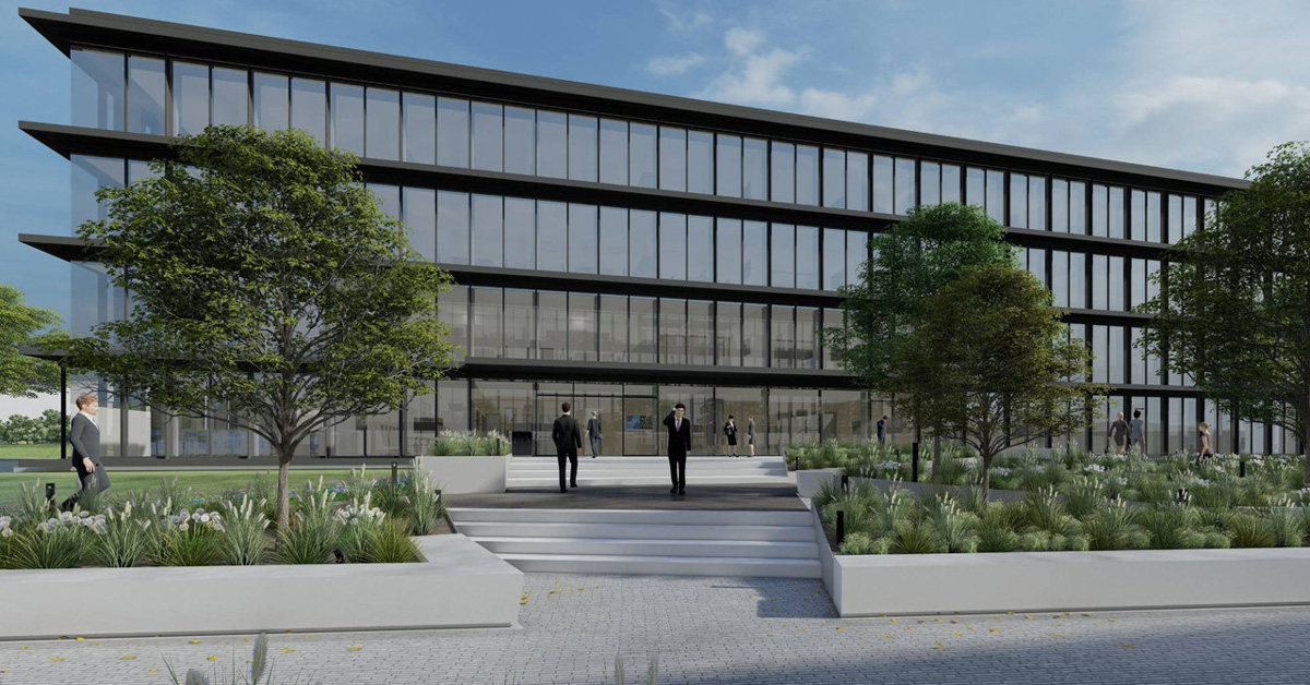 Façanes i murs cortina dels dos nous edificis de serveis del complex governamental de l’OTAN a Luxemburg.