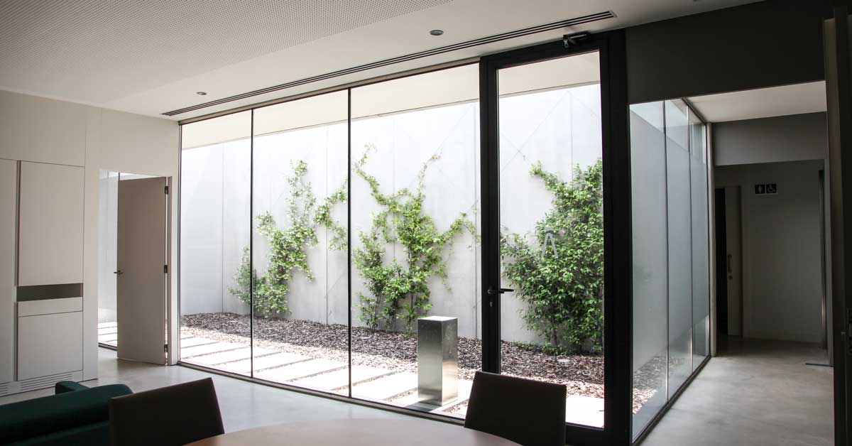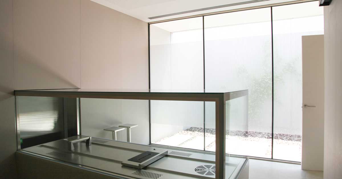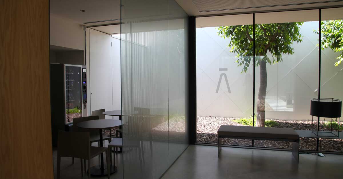 Per donar compliment a aquesta necessitat de màxima lluminositat interior, els treballs efectuats per GARCIA FAURA es van centrar en el desenvolupament, fabricació i instal·lació de diverses zones de façana de vidre càmera a testa, instal·lats amb guies ocultes a terra i al sostre. Els treballs es van completar amb la instal·lació del conjunt de portes d’alumini amb acabat anoditzat color negre mat.