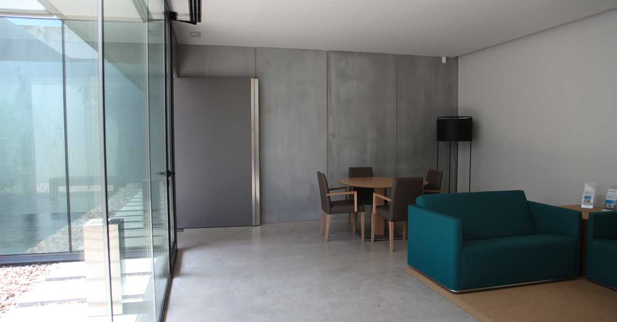 Situat en un terreny de 800 metres quadrats, el nou Tanatori de Sant Vicenç de Castellet es caracteritza per ser un edifici funcional i amb grans dosis de privacitat, donat l’ús que representa. En aquest sentit, les sales de vetlla compten amb patis interiors privats, a banda d’un gran pati central d’ús compartit. Aquest màxim aprofitament de la llum natural es tradueix en grans finestrals i obertures de vidre que permeten oferir aquesta sensació de privacitat sense perdre connexió amb l’exterior.