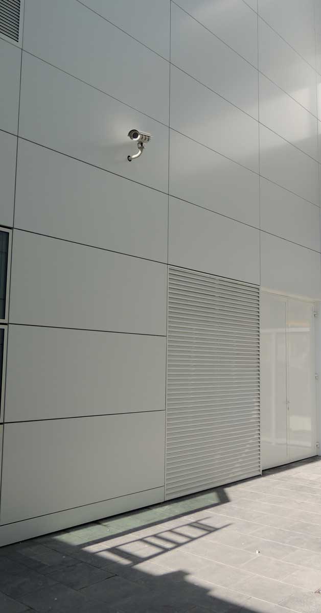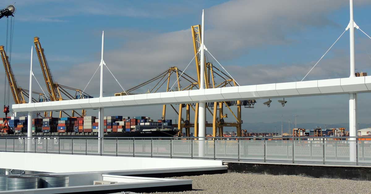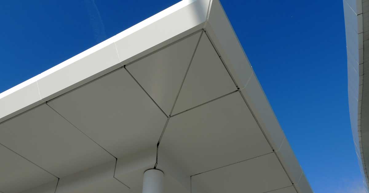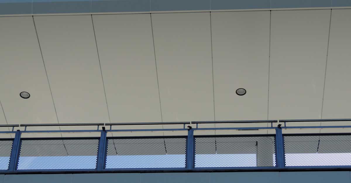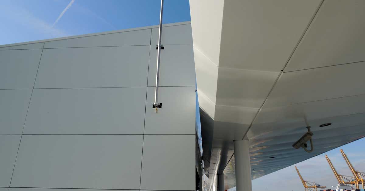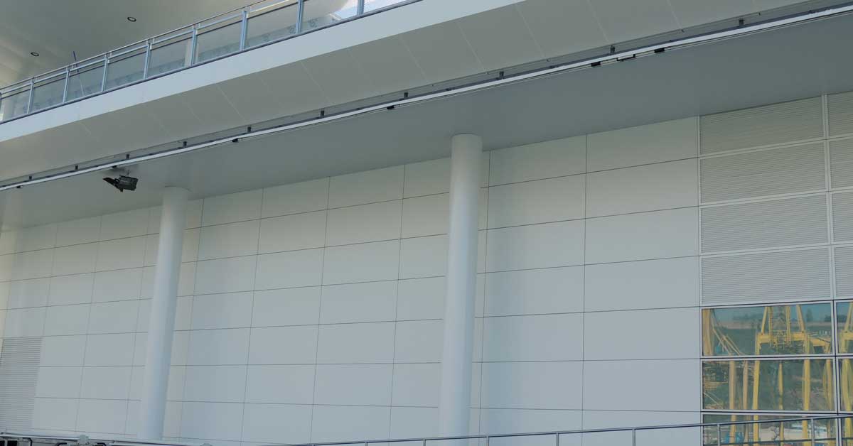 GARCIA FAURA ha fabricat i instal·lat per a aquesta obra més de 2.000 metres quadrats de panell composite, tant en folrats de murs com en marquesines i passarel·les. El sistema de revestiment de façana, d’especial complexitat, ha requerit d’unes exigències en instal·lació a l’abast de pocs industrials. Una de les principals característiques d’aquest panell són els seus acabats ignífugs i d’alta resistència a la salinitat, donada la proximitat al mar. El sistema de revestiment de façana ventilada, a més, ha obtingut el DIT (Document d’Idoneïtat Tècnica) que garanteix els materials, sistemes i procediments no tradicionals de construcció emprats en edificació i obres públiques. Aquest certificat verifica el disseny de la instal·lació del producte, complint l’estricte procediment d’ancoratge i nivell d’omegues requerit.